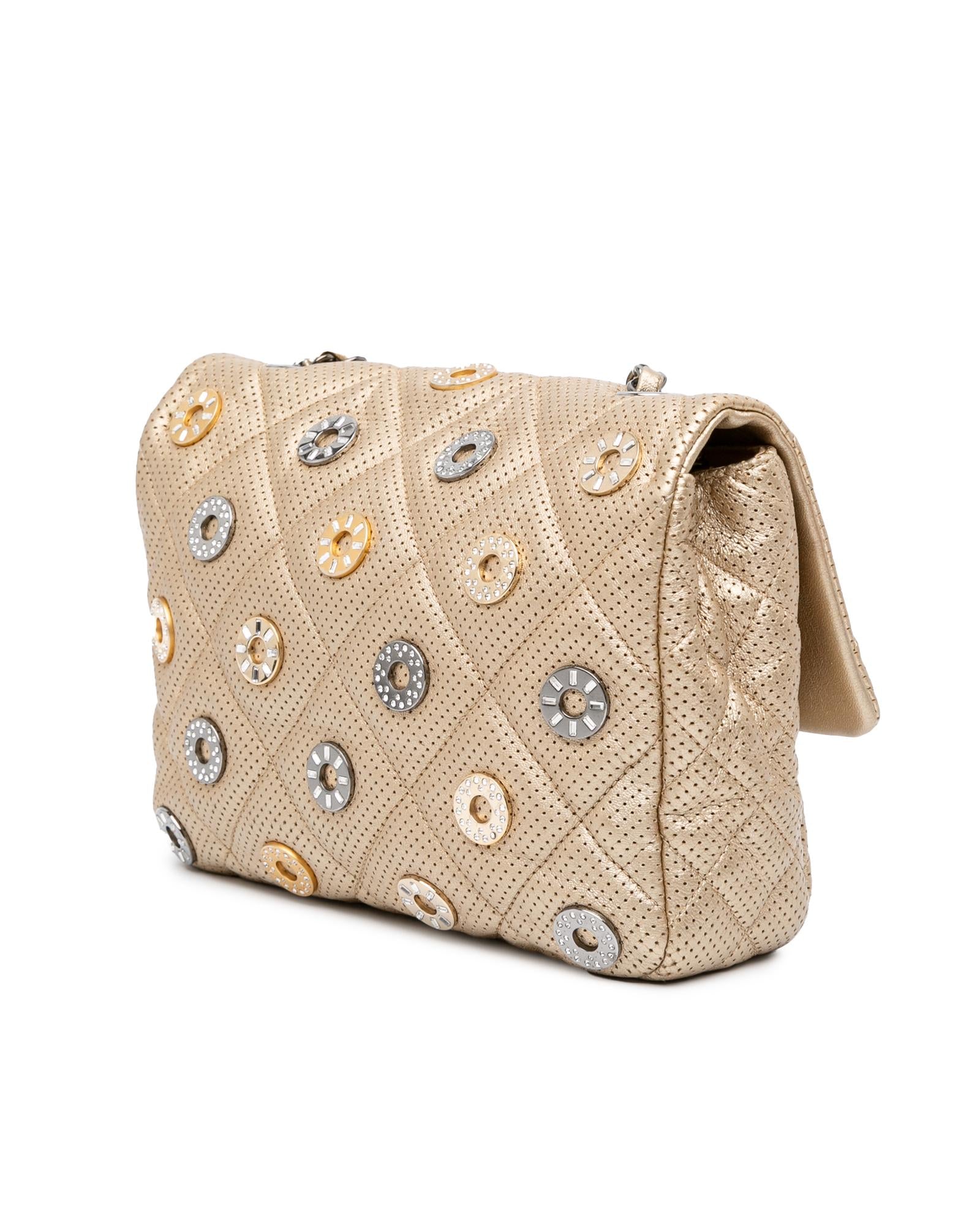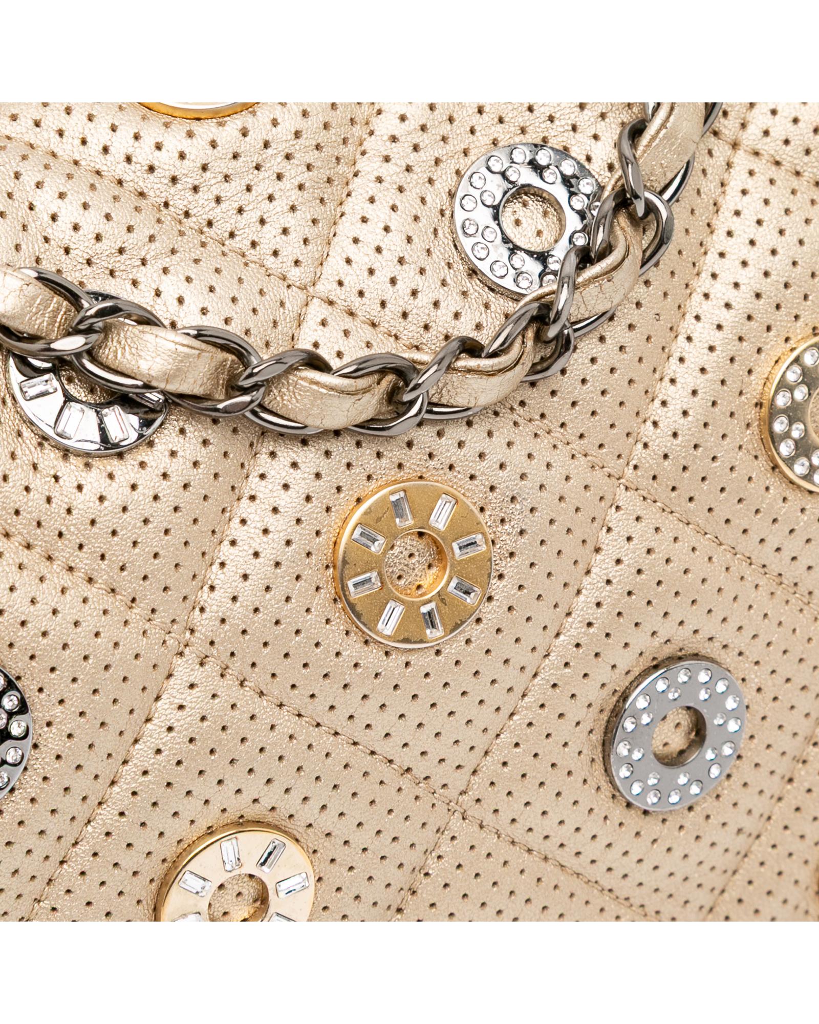Perforated Metallic Lambskin Shoulder Bag with Eyelet Embellishments