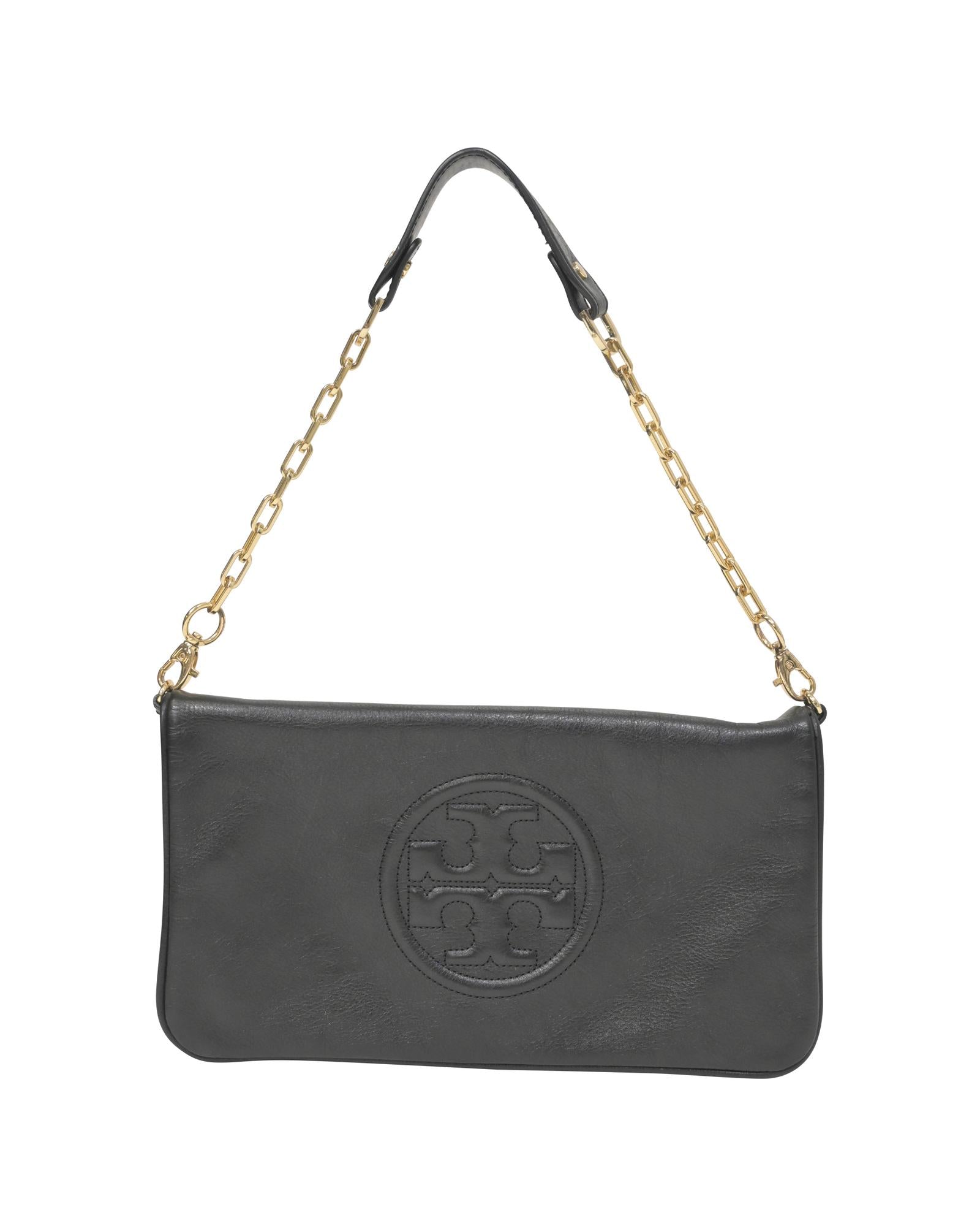 Chain Linked Shoulder Bag in Black Leather by Tory Burch