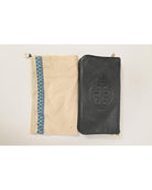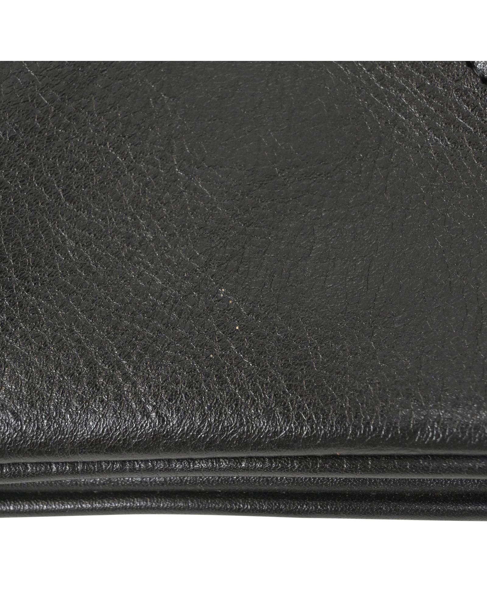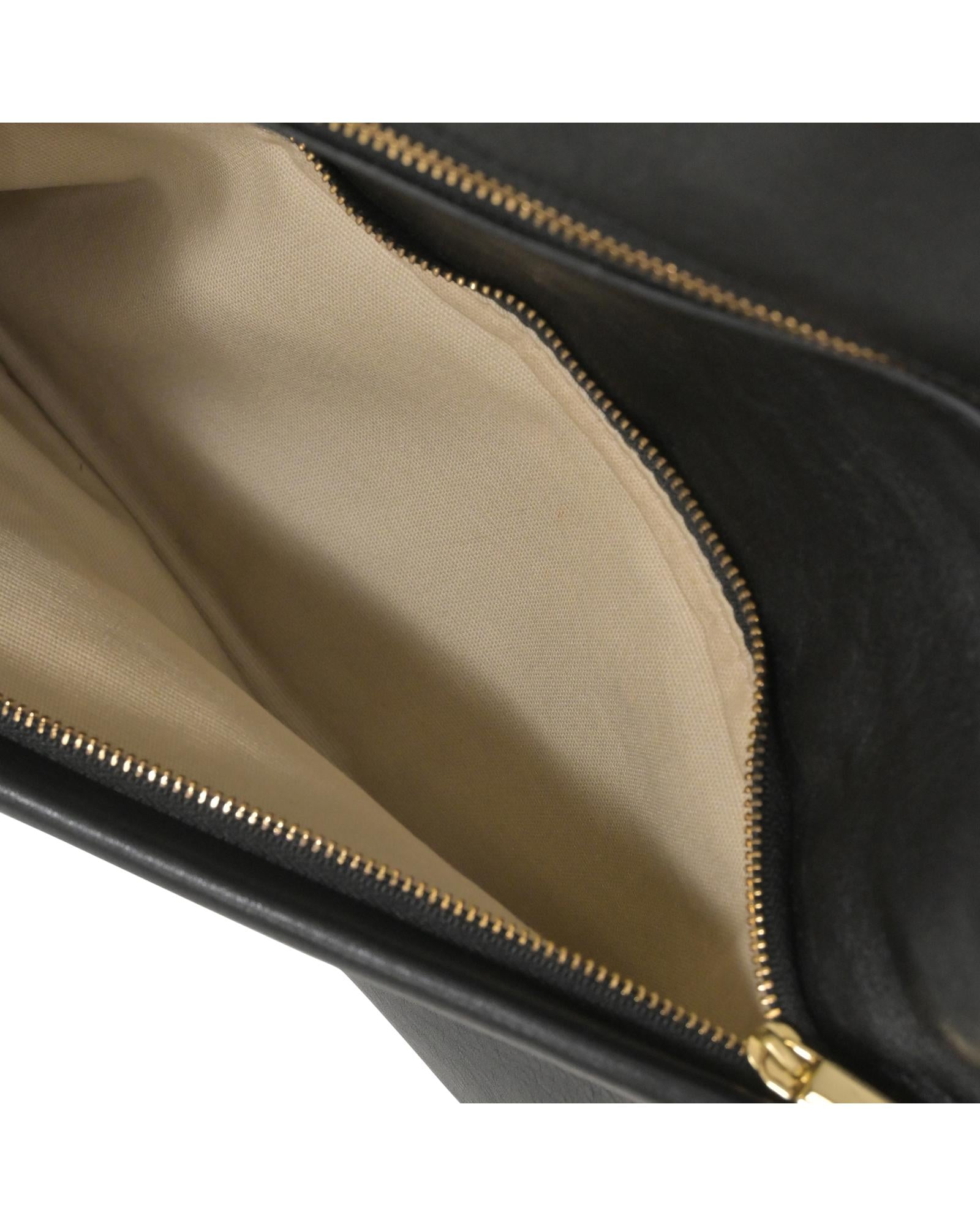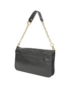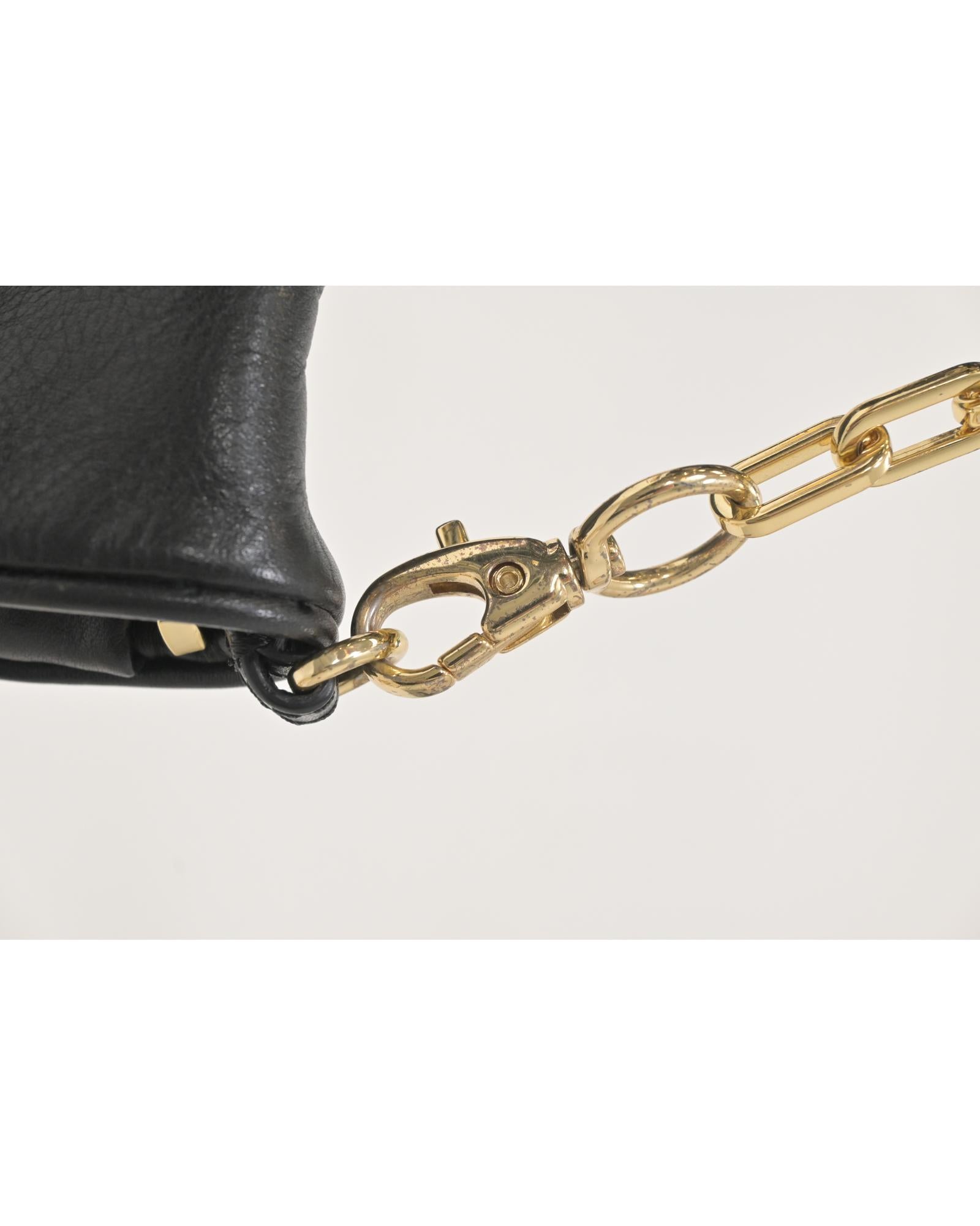 - Crafted from black leather with gold-tone hardware and chain-link accents