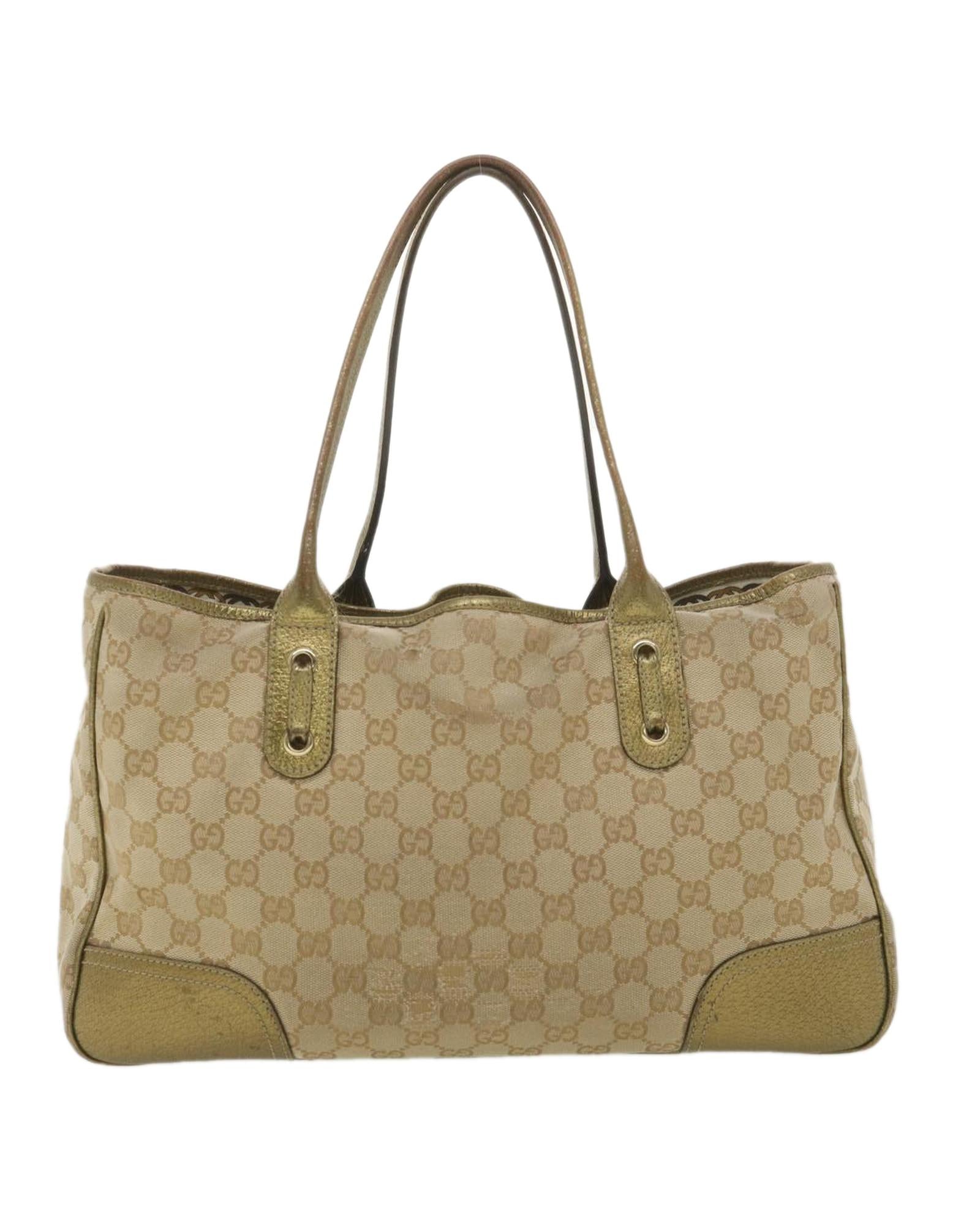 GG Canvas Shoulder Bag Beige Gold 163805 Auth 38395