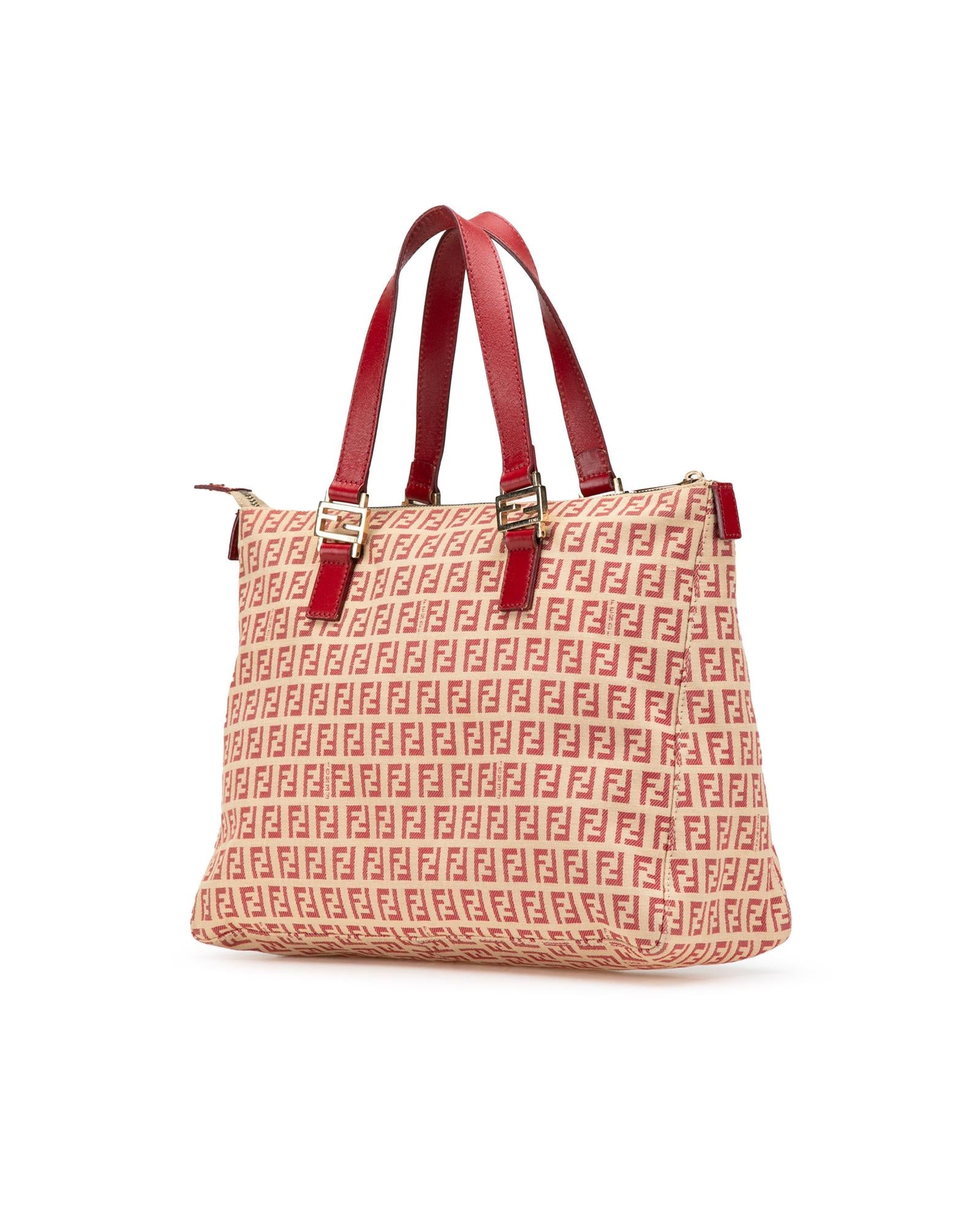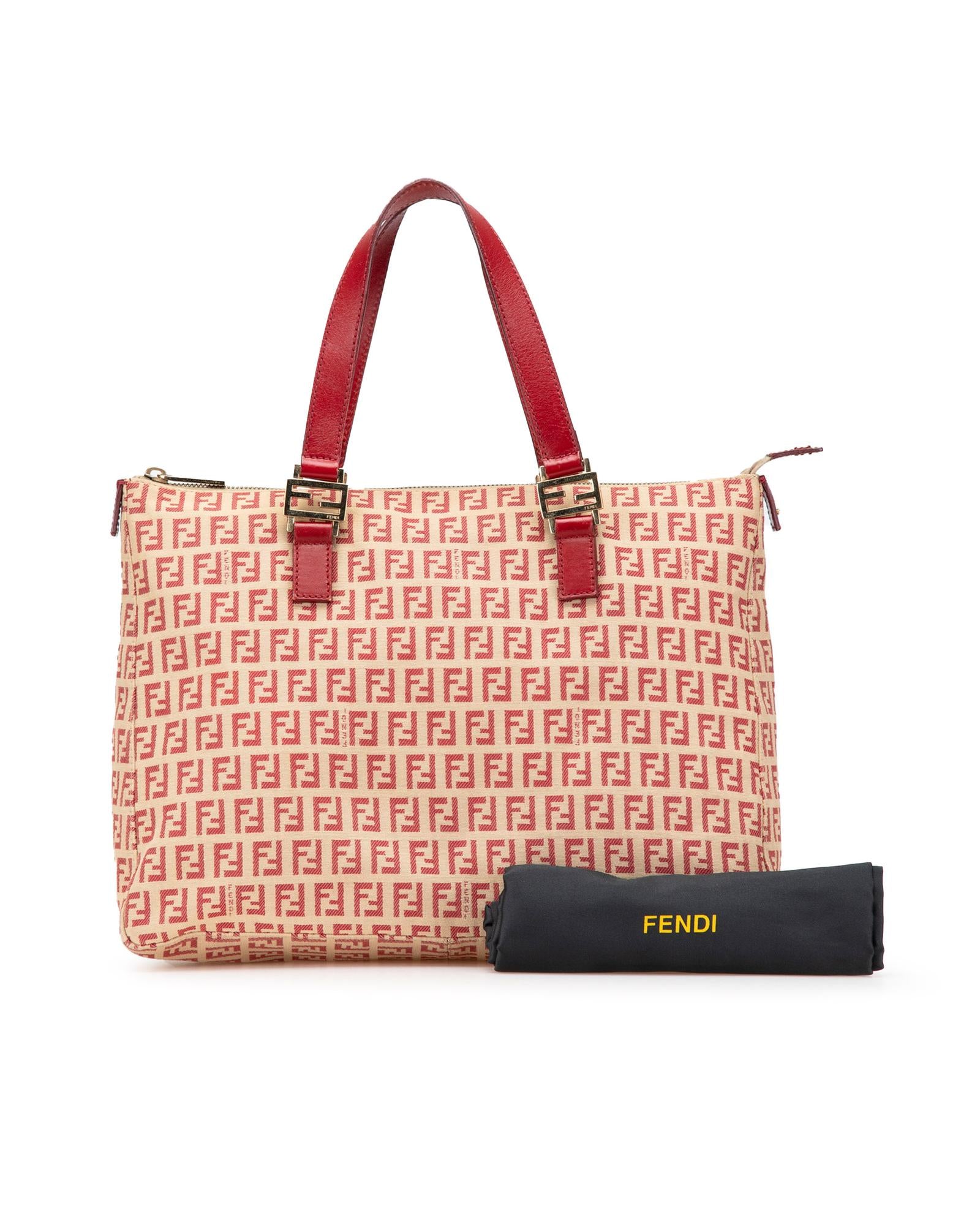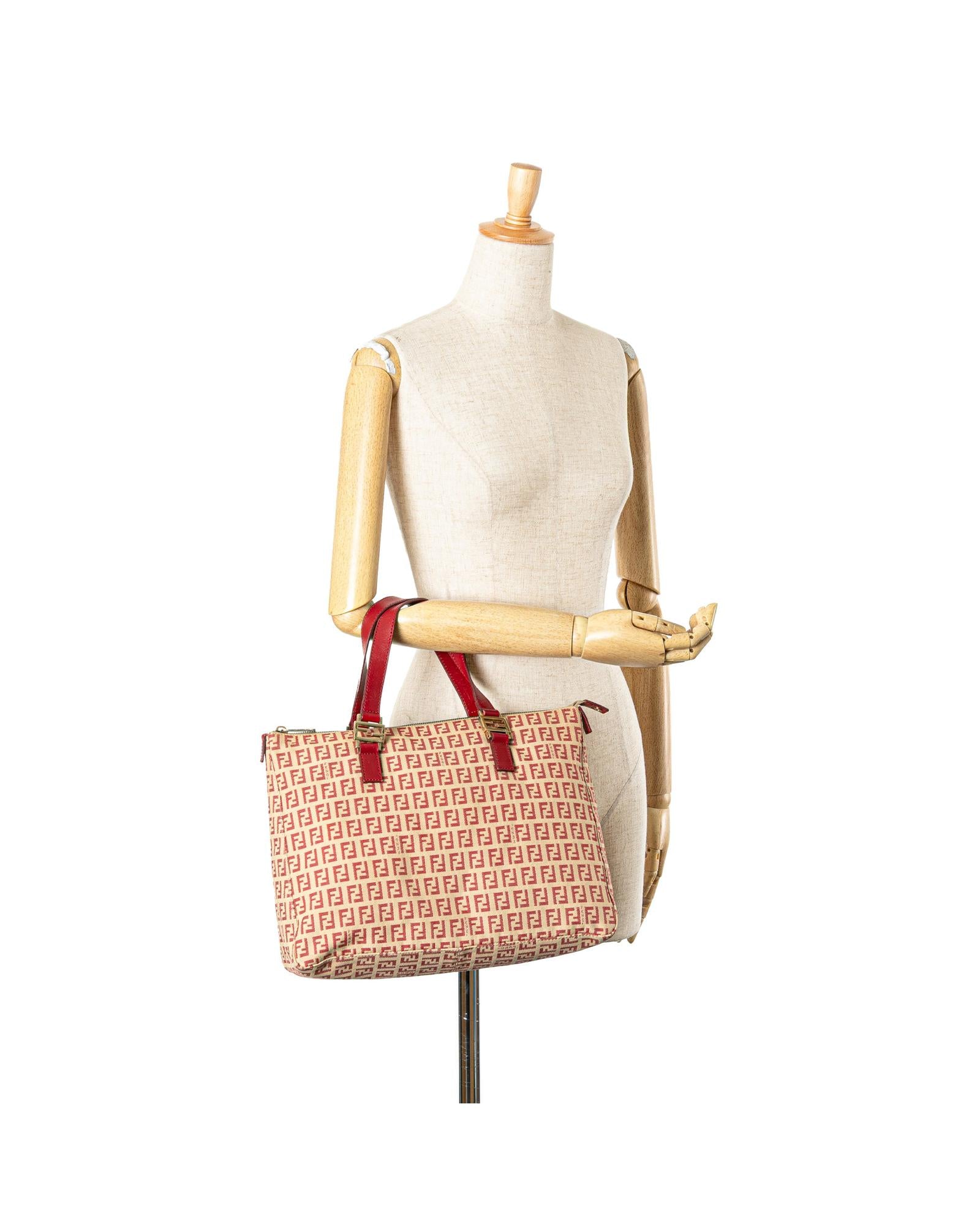 This tote bag features a canvas body flat leather straps a top zip closure and an interior slip pocket.Brand: Fendi