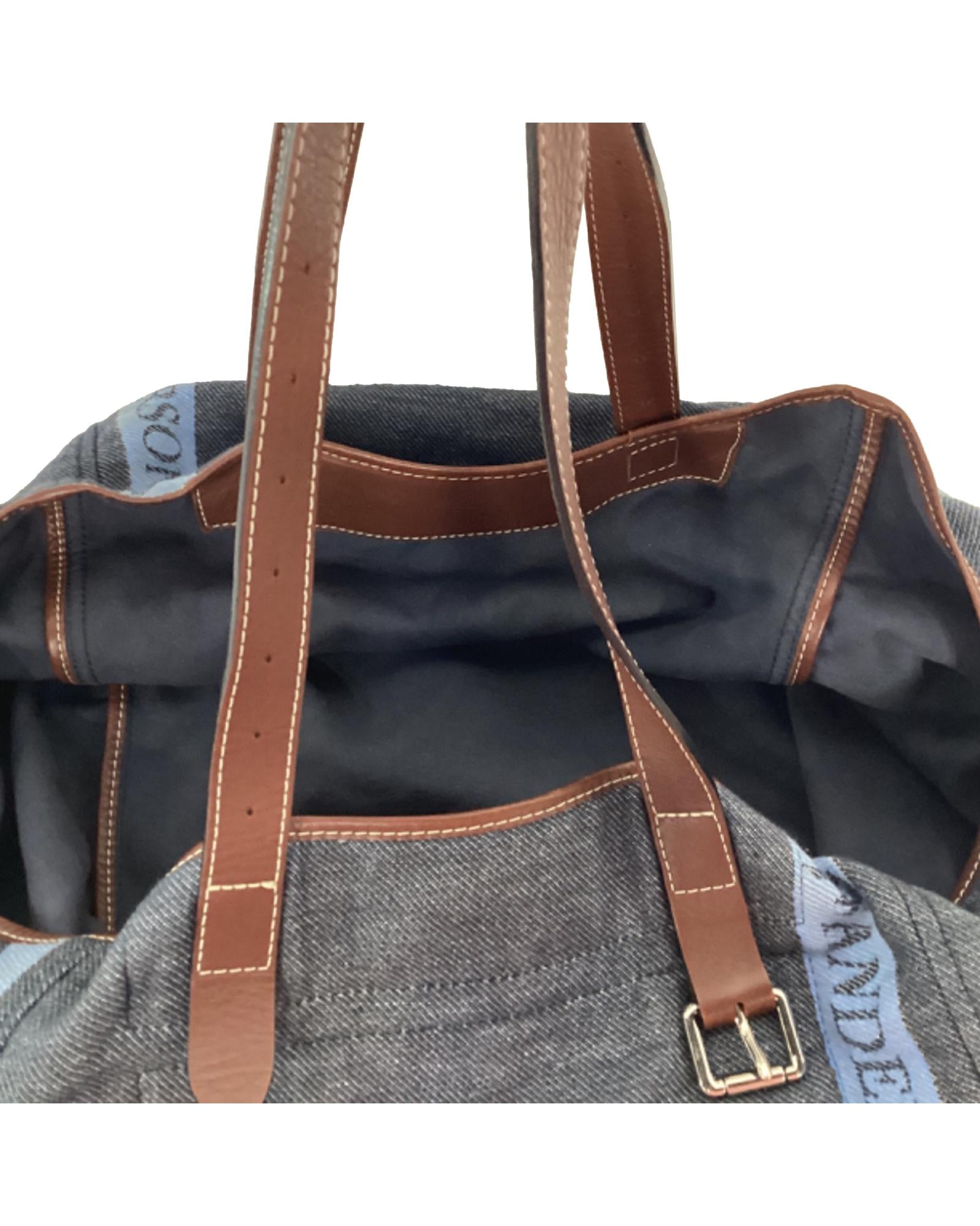 • Printed Tote in Blue Canvas