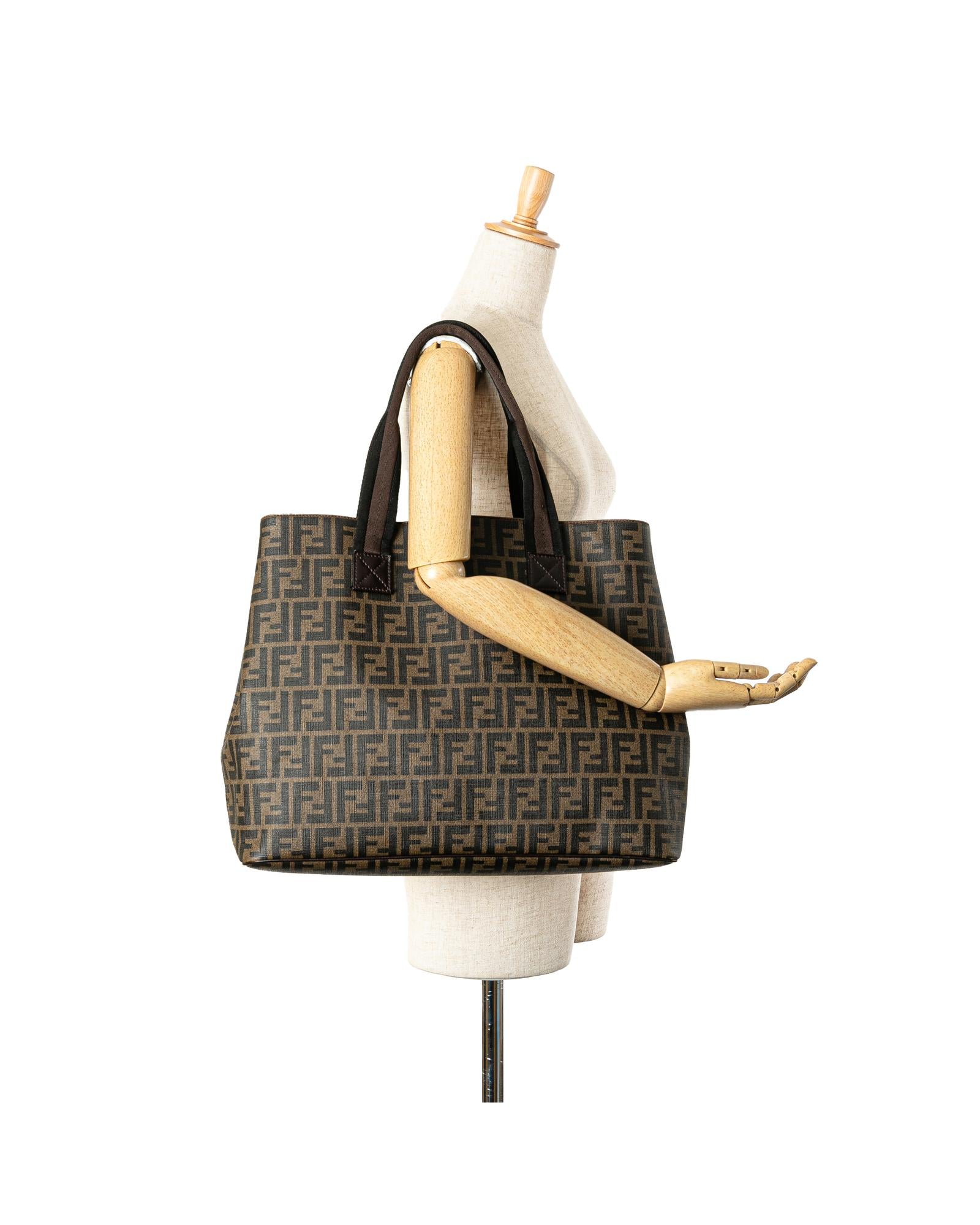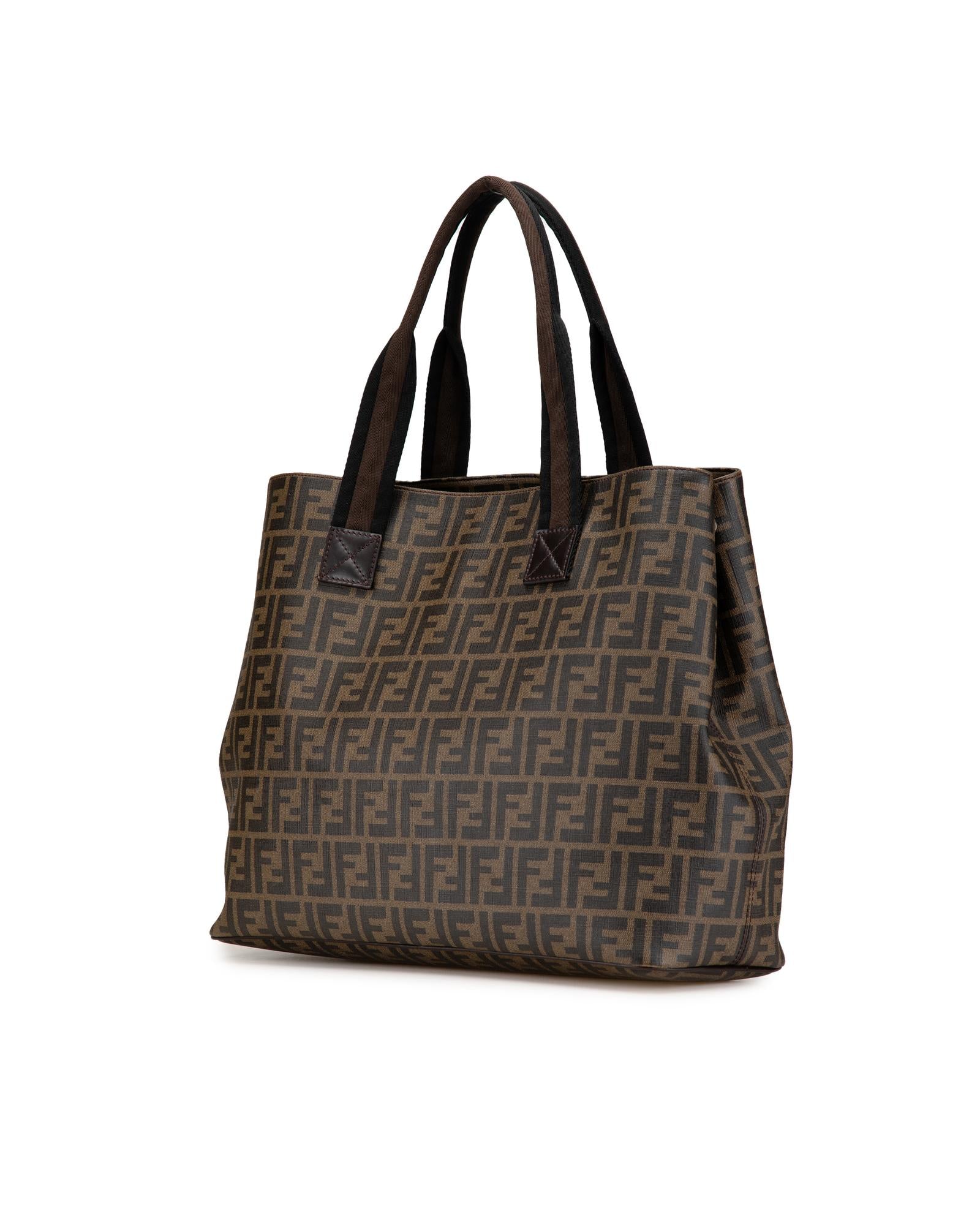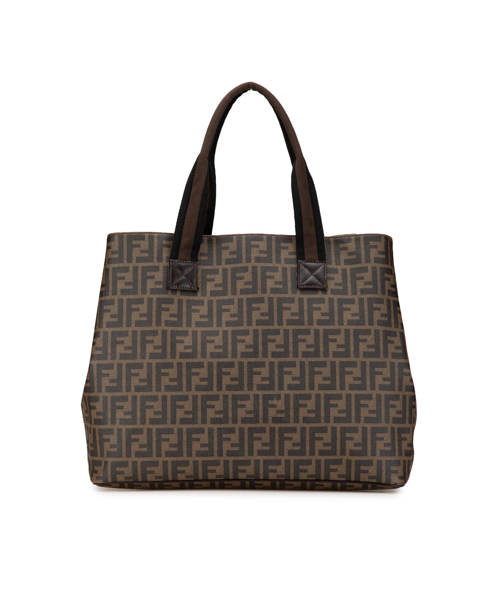 This tote bag features a coated canvas body flat leather straps an open top and an interior zip pocket.Brand: Fendi