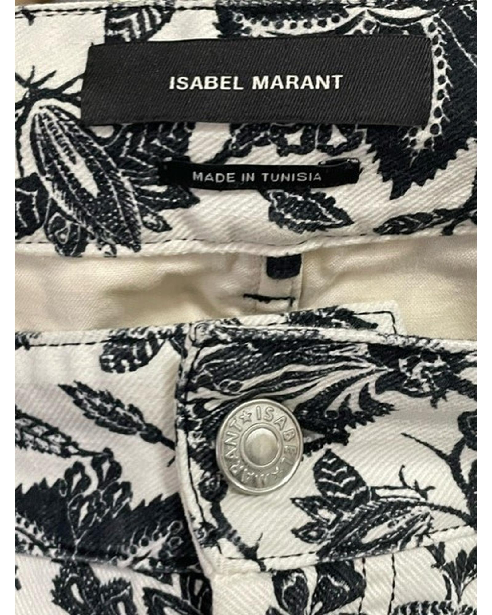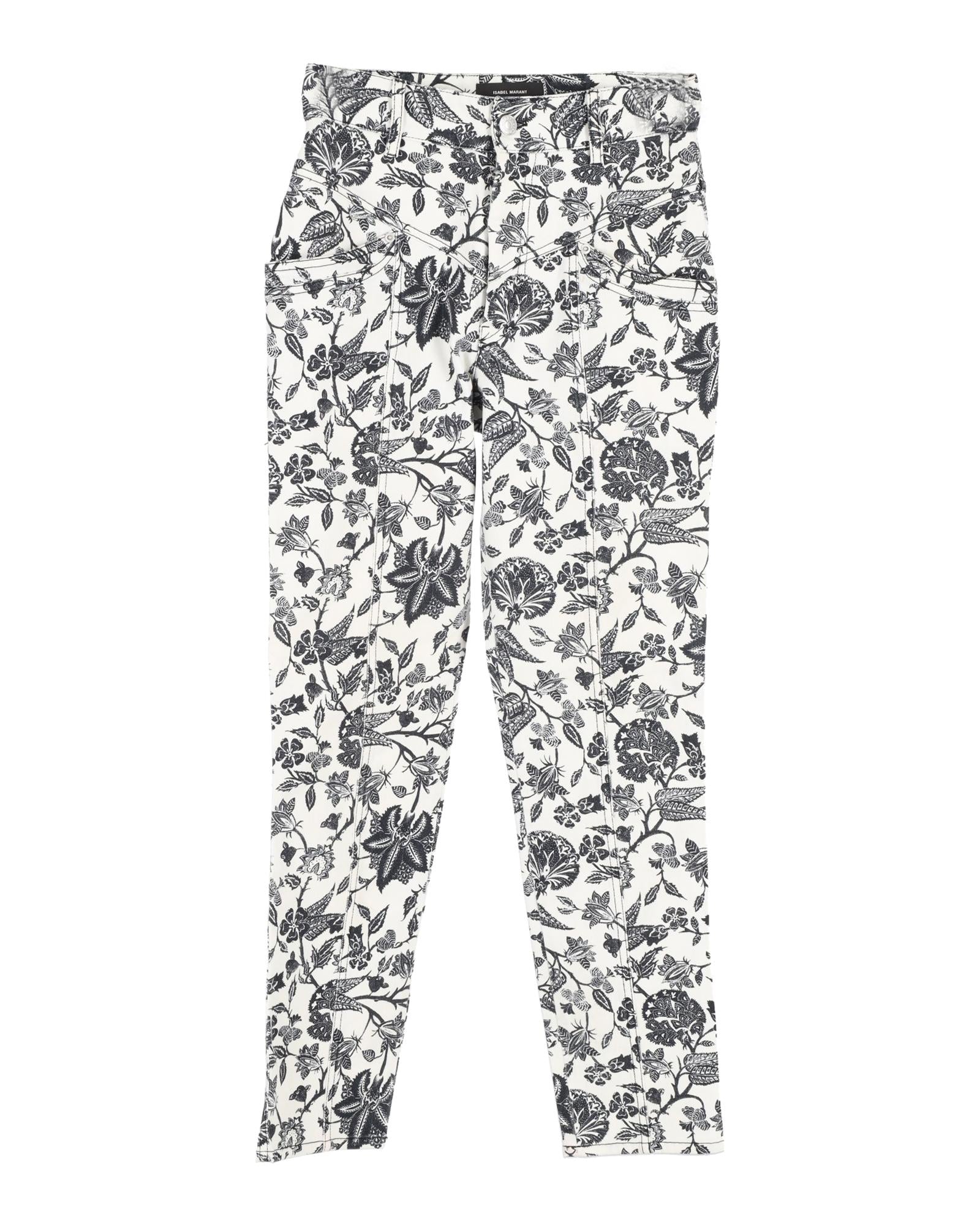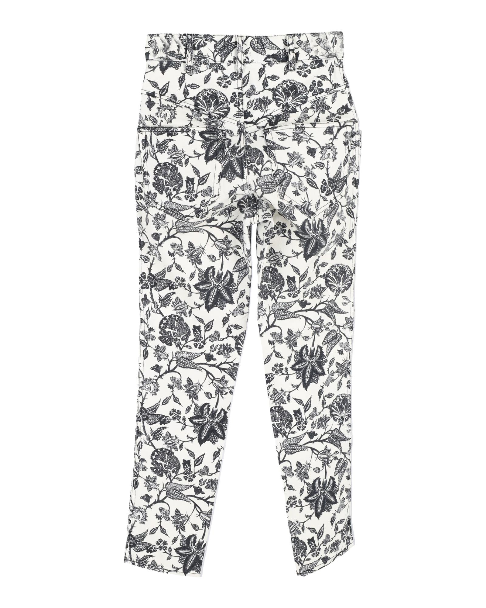 - Made from durable cotton denim in white with black floral print