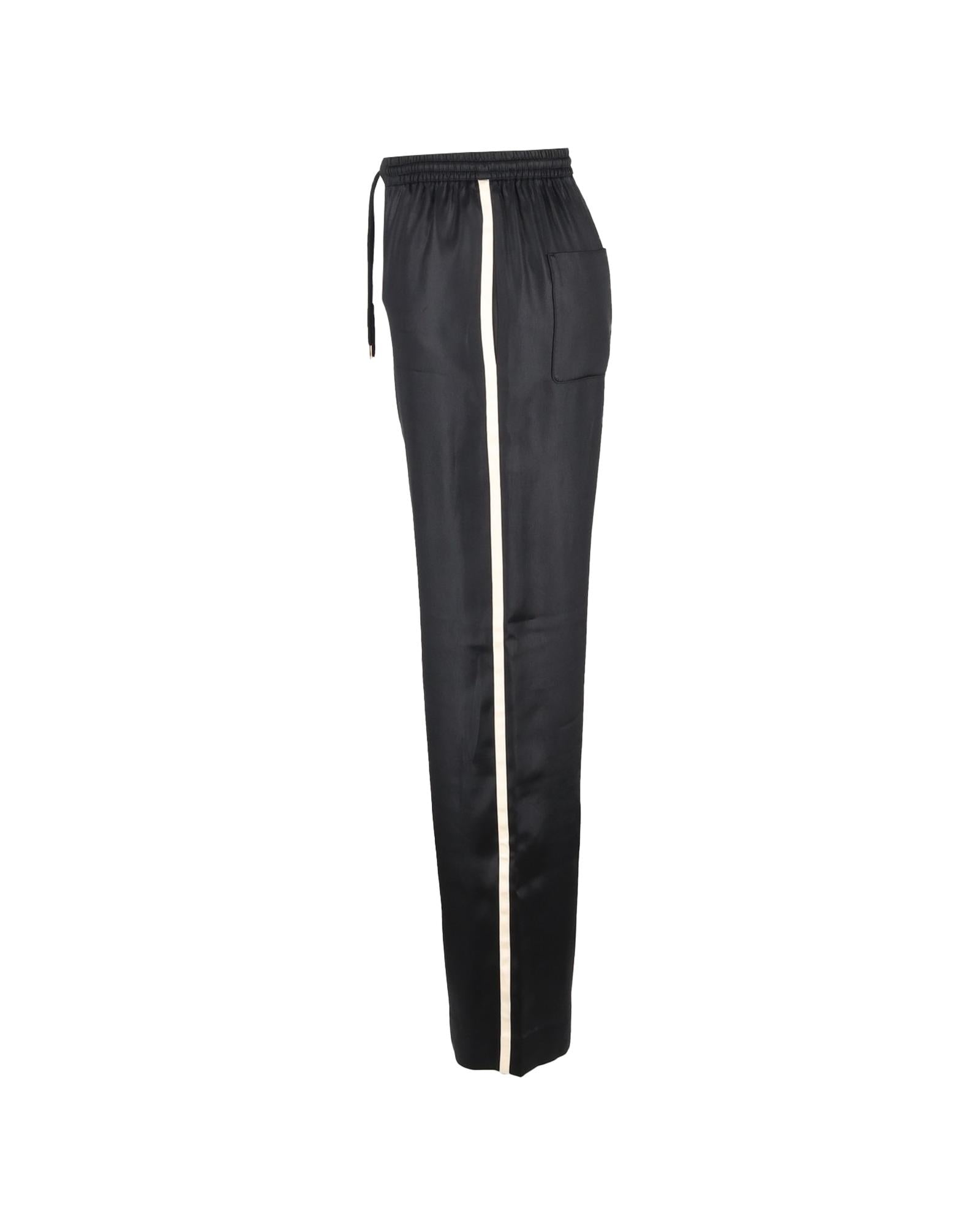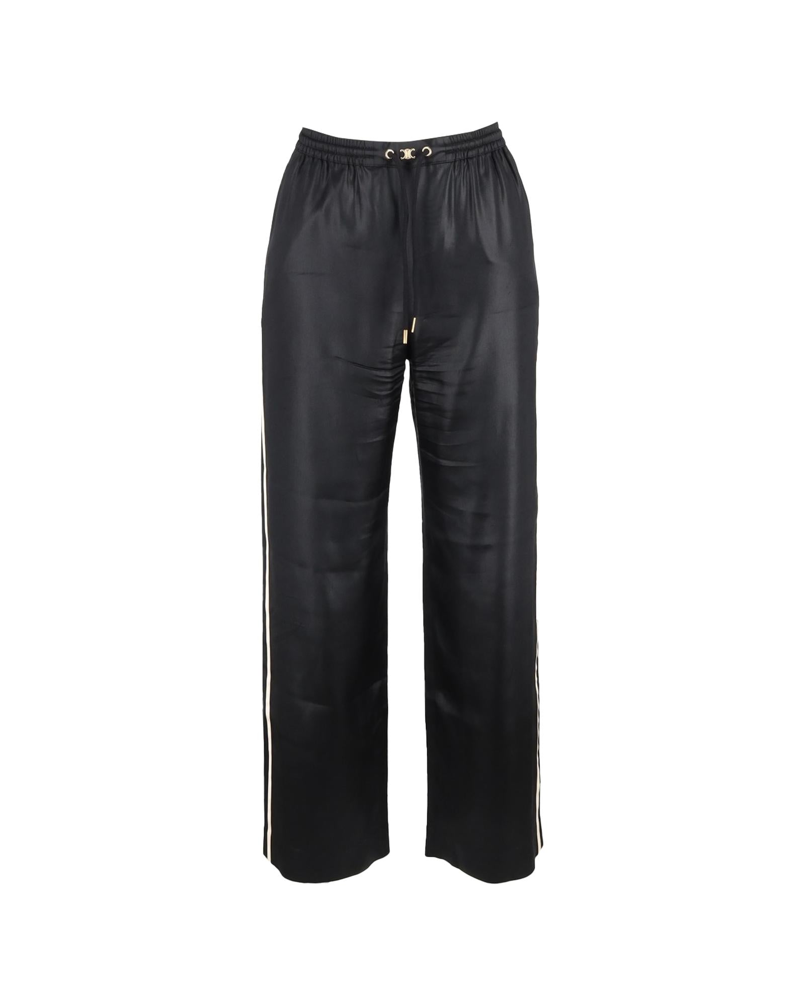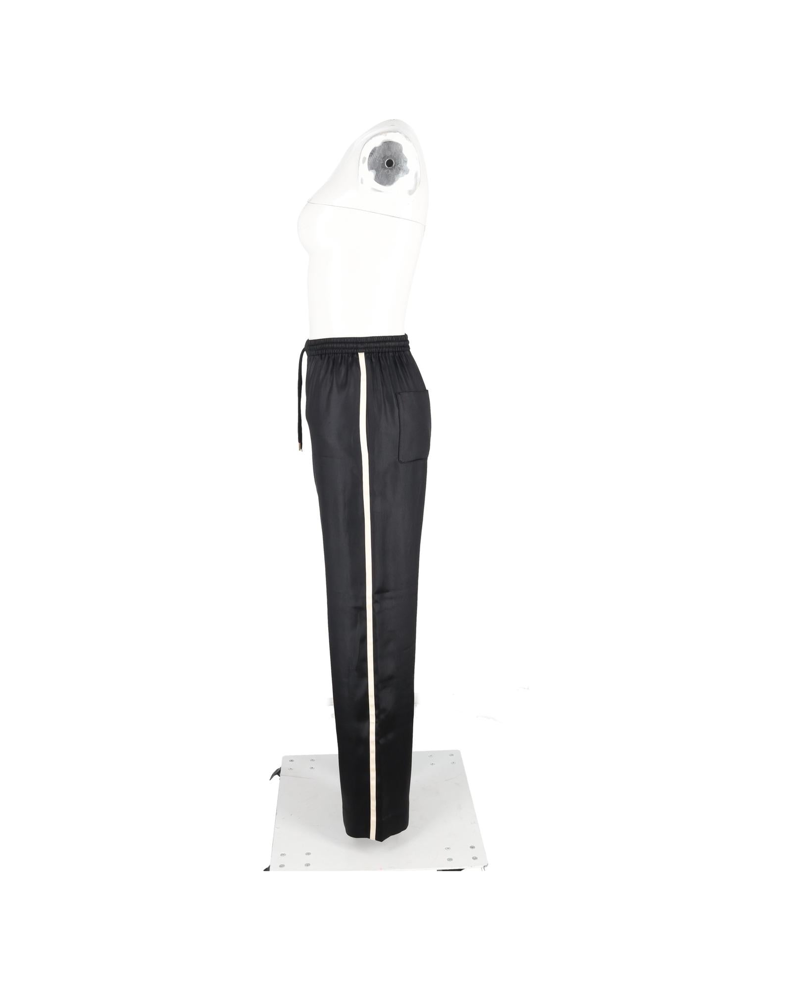 Pre-owned Elegant High-Waisted Side Stripe Casual Pants with Drawstring