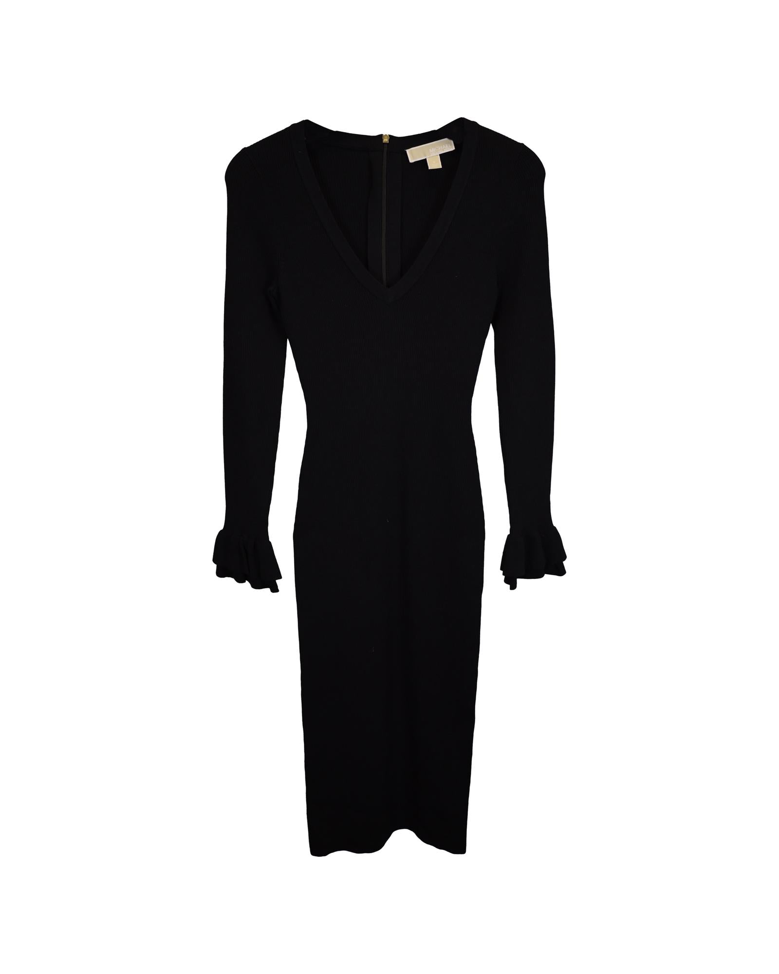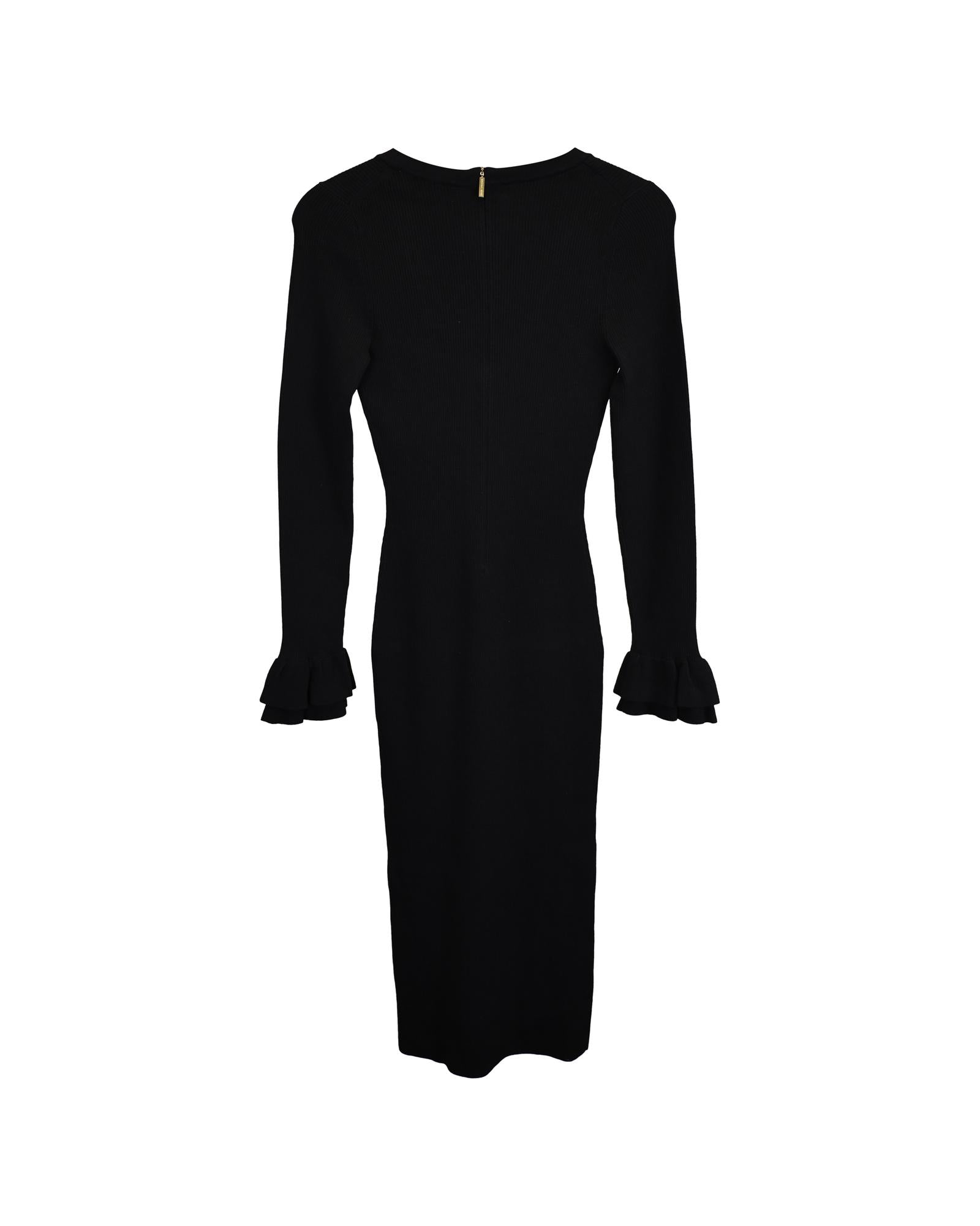 Pre-owned Ribbed Knit Midi Dress Ruffle Cuffs