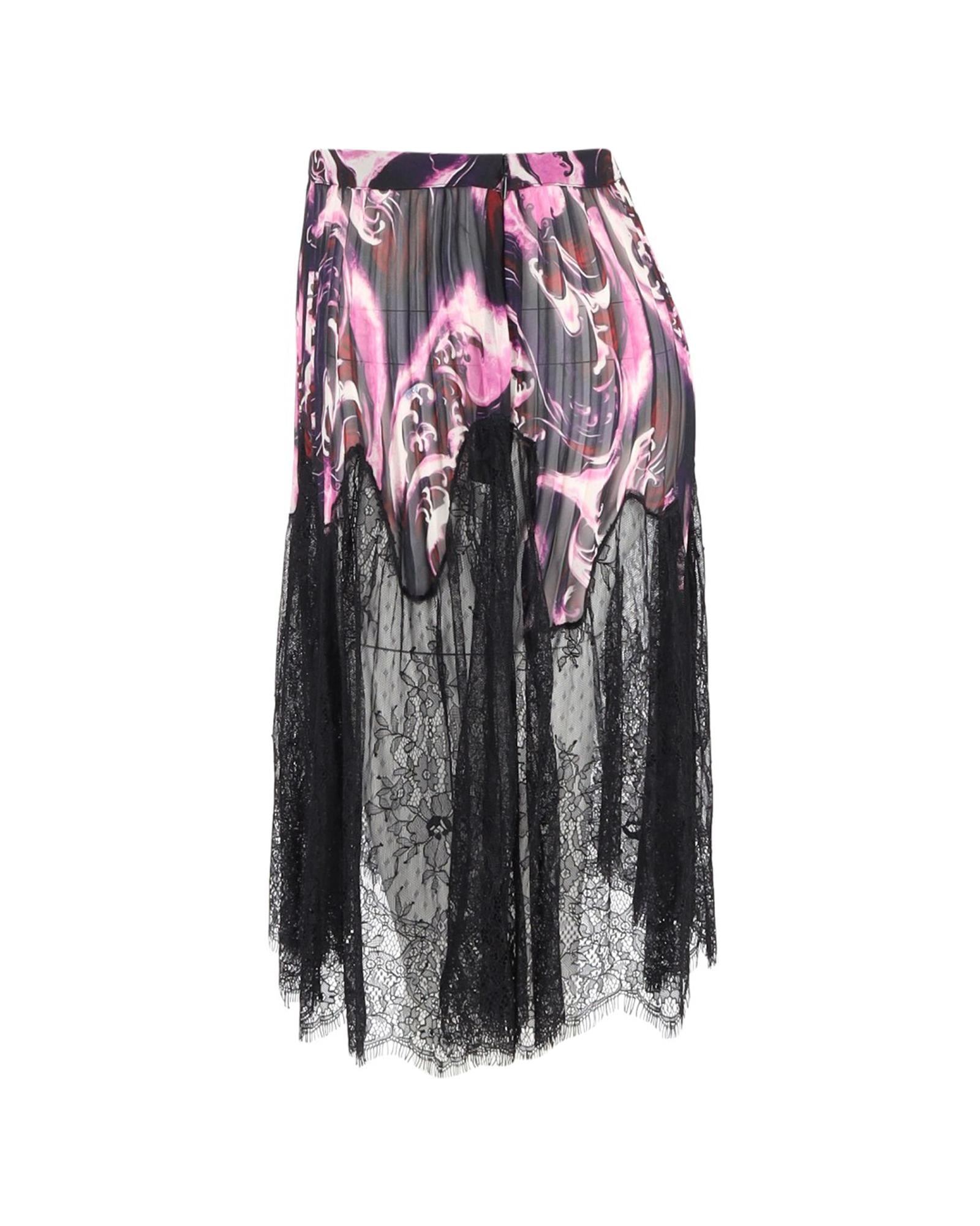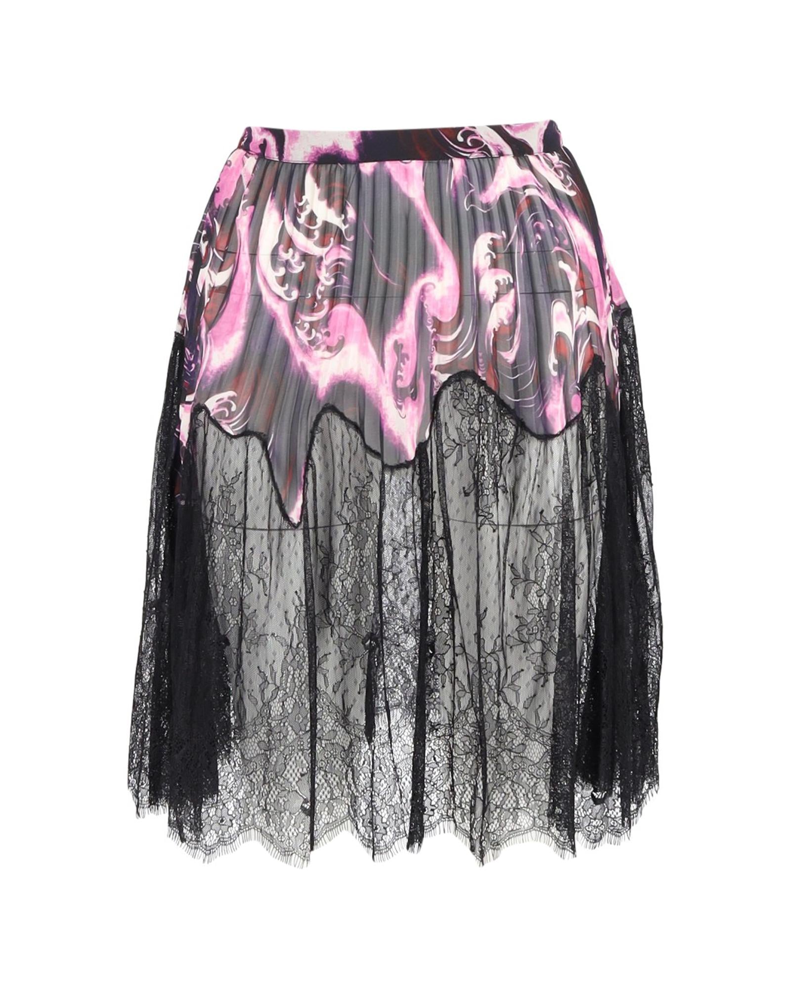 Pre-owned Elegant Pleated Midi Skirt with Lace Trim and Floral Print