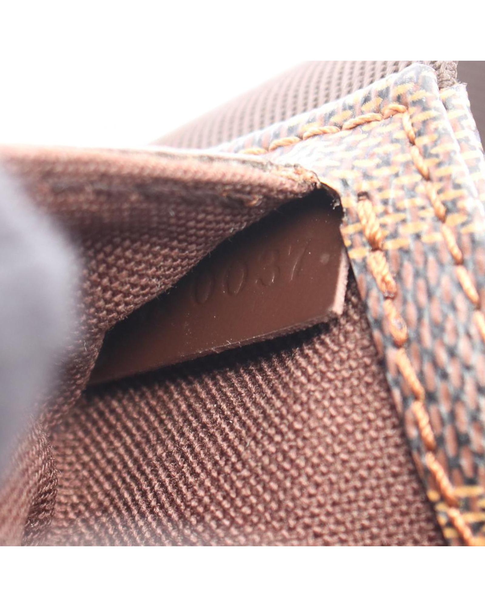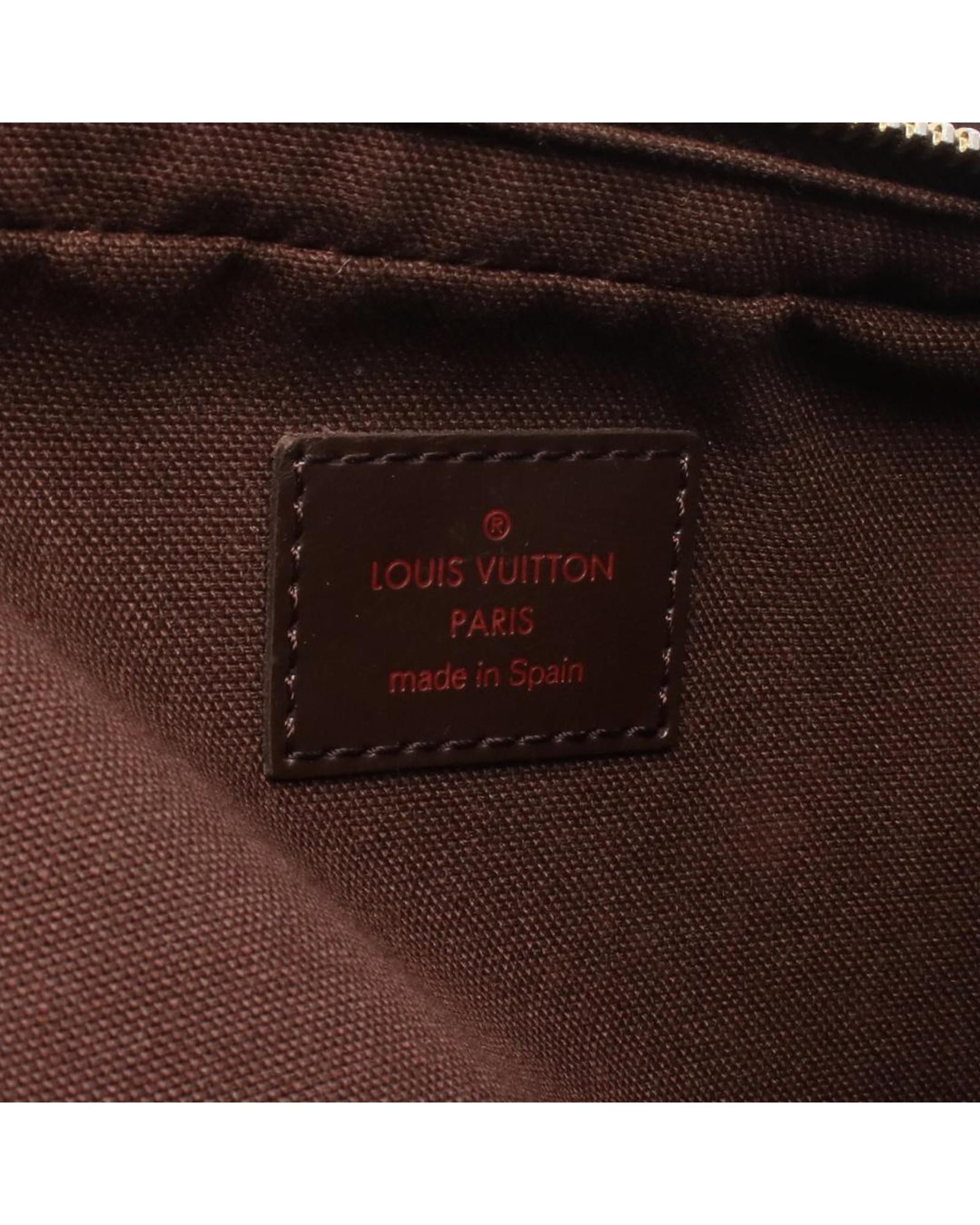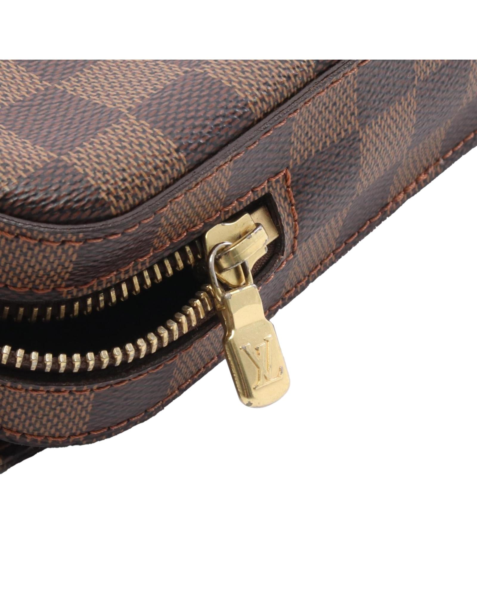 The Geronimos features a damier ebene canvas body an adjustable flat canvas strap a top zip closure and an exterior front slip pocket.Brand: Louis Vuitton Vintage