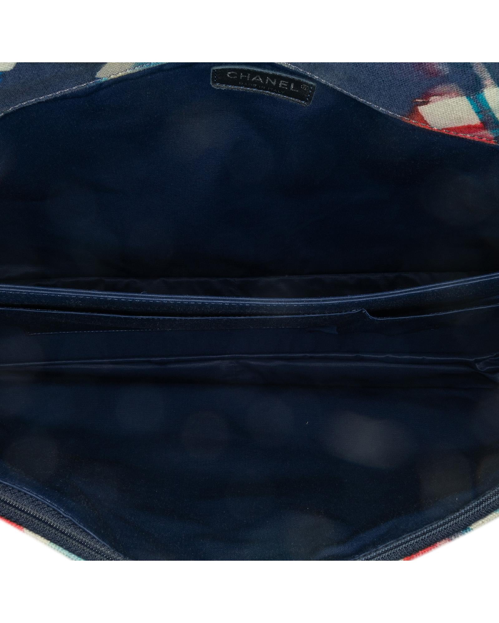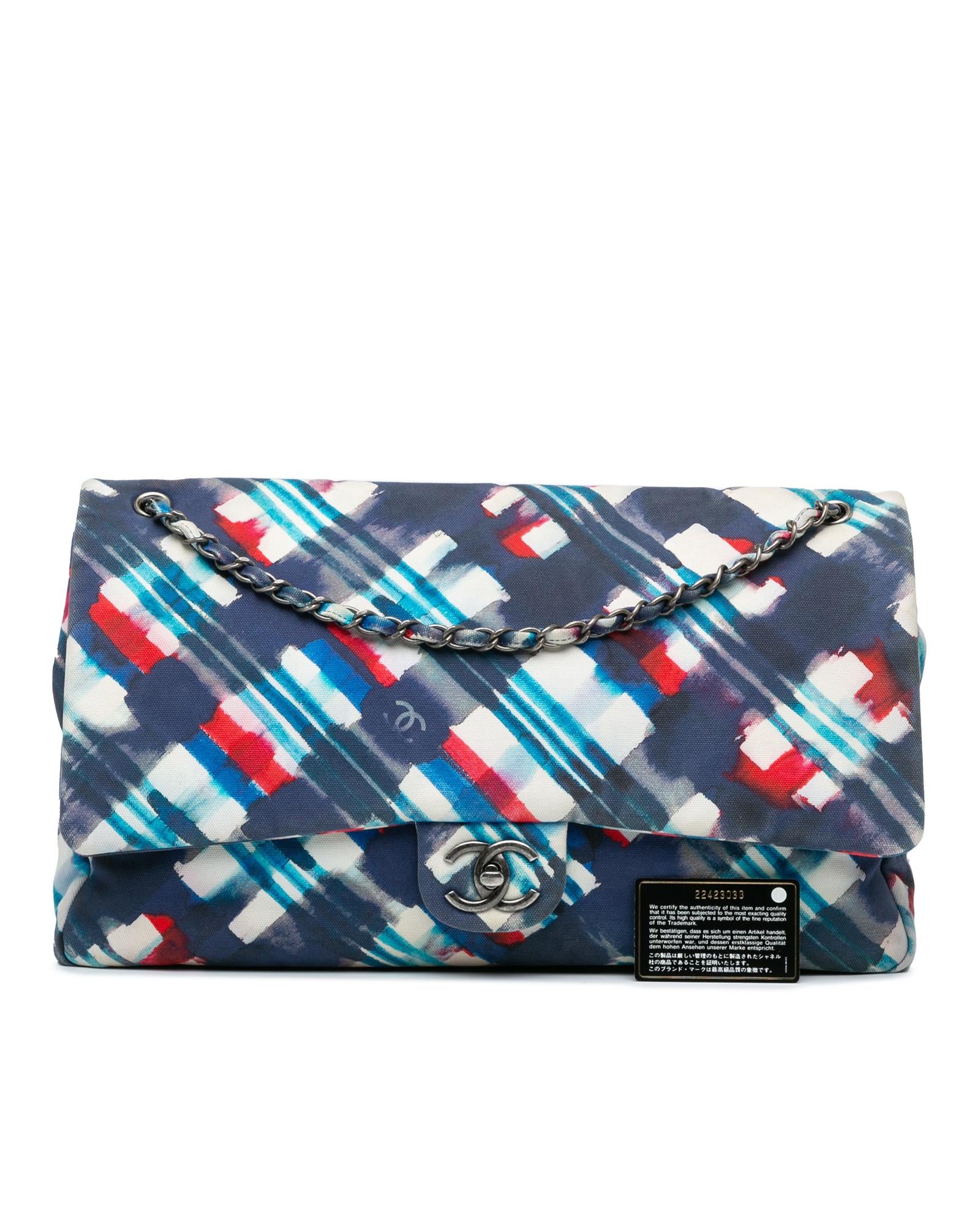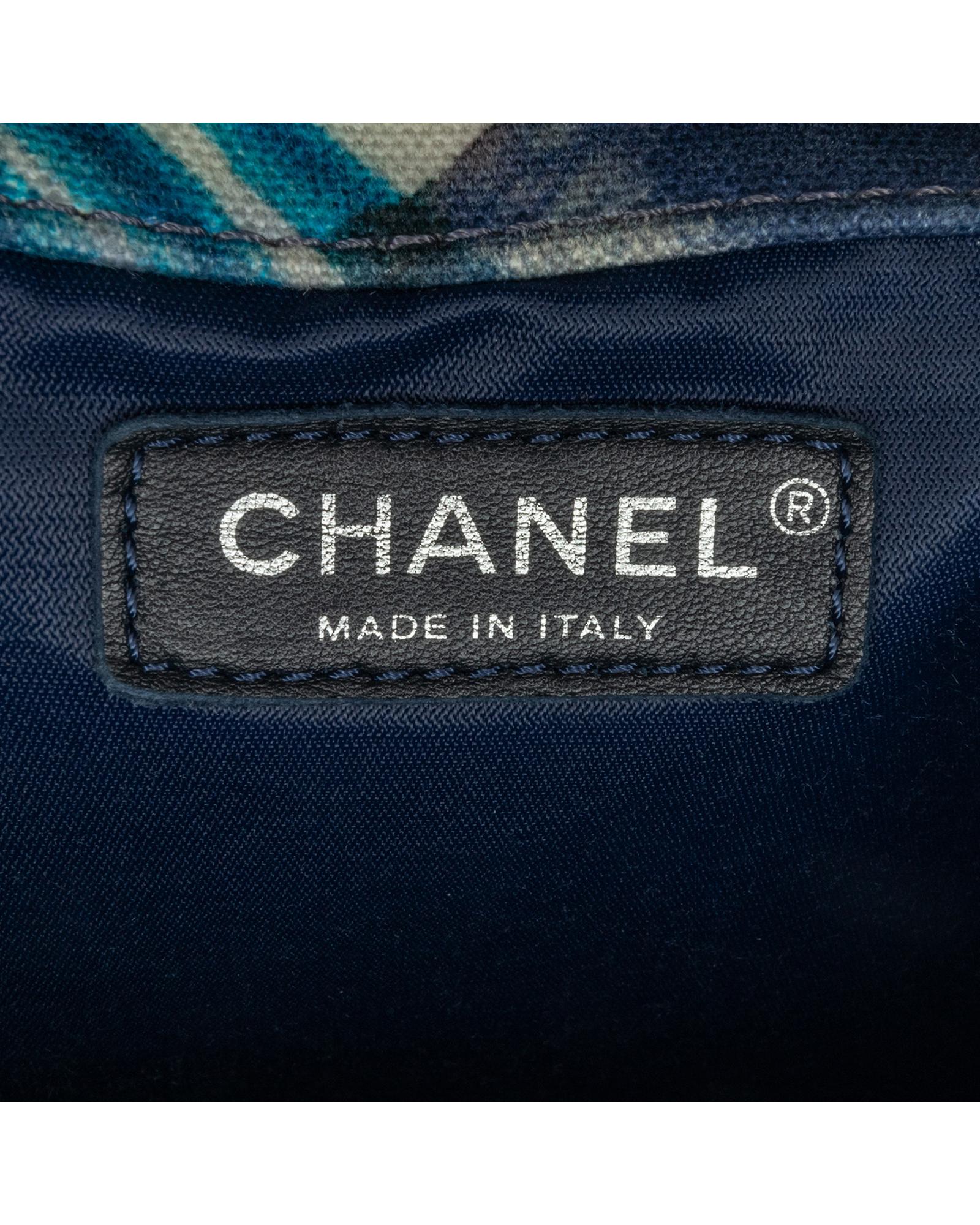 This shoulder bag features a printed canvas body leather-woven chain straps a front flap with CC turn-lock closure and interior zip and slip pockets.Brand: Chanel Vintage
