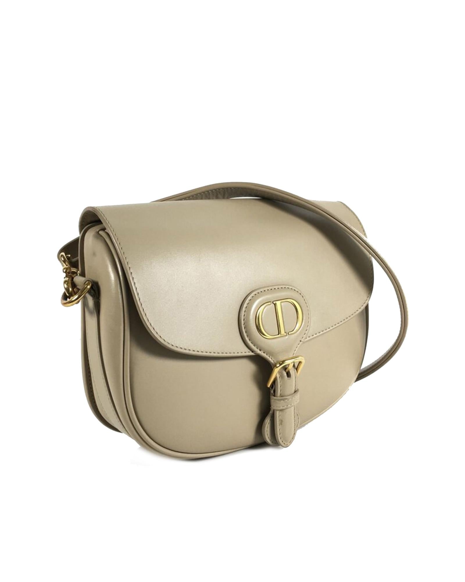 The Bobby crossbody bag features a leather body a flat and adjustable leather shoulder strap a front flap with buckle closure an exterior slip pocket and an interior slip pocket.