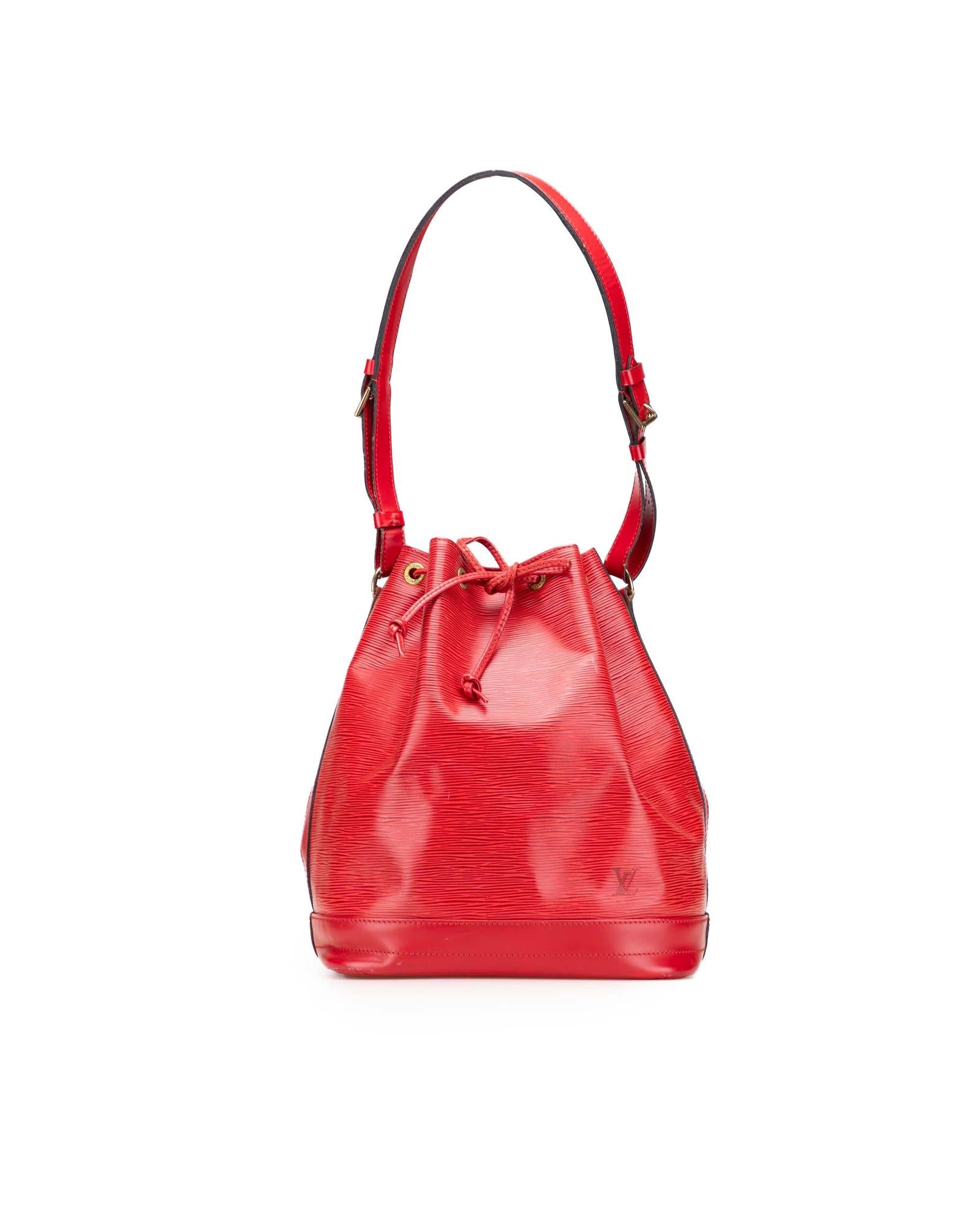 The Noe features an epi leather an adjustable shoulder strap a drawstring closure Alcantara lining and an interior zip pocket.Brand: Louis Vuitton Vintage
