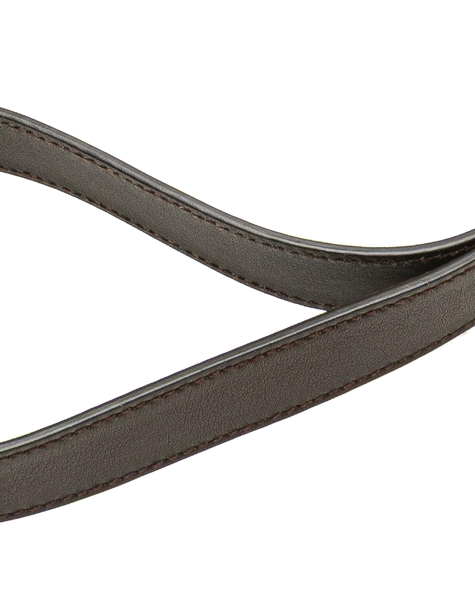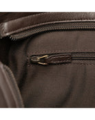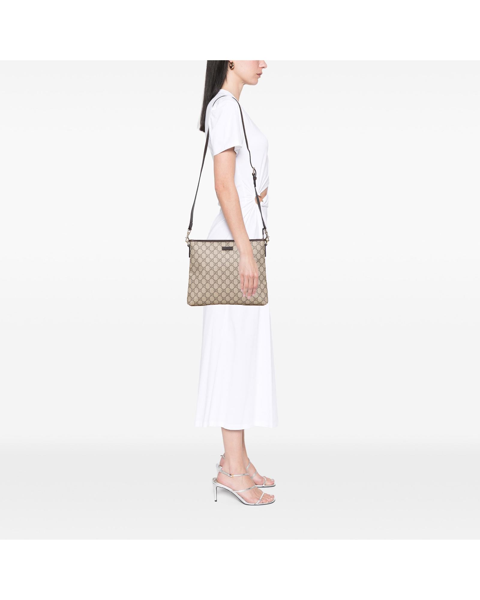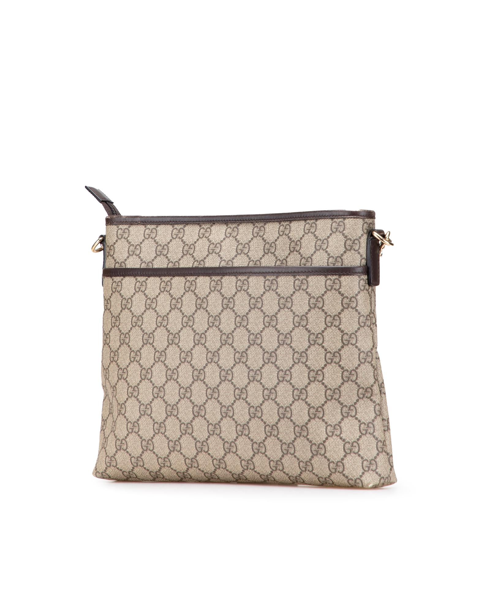 This crossbody bag features coated canvas body a detachable flat leather strap a top zip closure an exterior back slip pocket and interior zip and slip pockets.