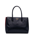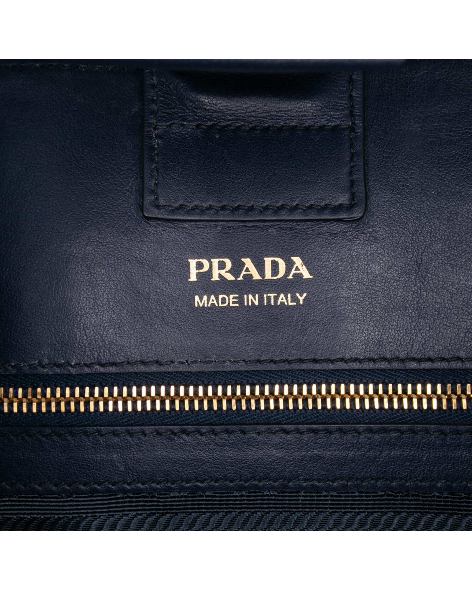 This satchel features a leather body rolled leather handles a detachable flat leather strap an open top with magnetic closure and interior zip and slip pockets.Brand: Prada Vintage