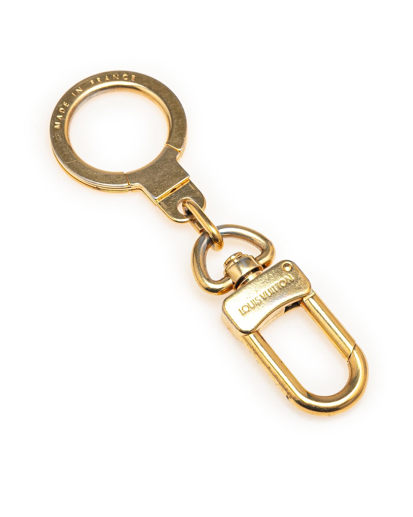This key chain features a gold-tone metal body.