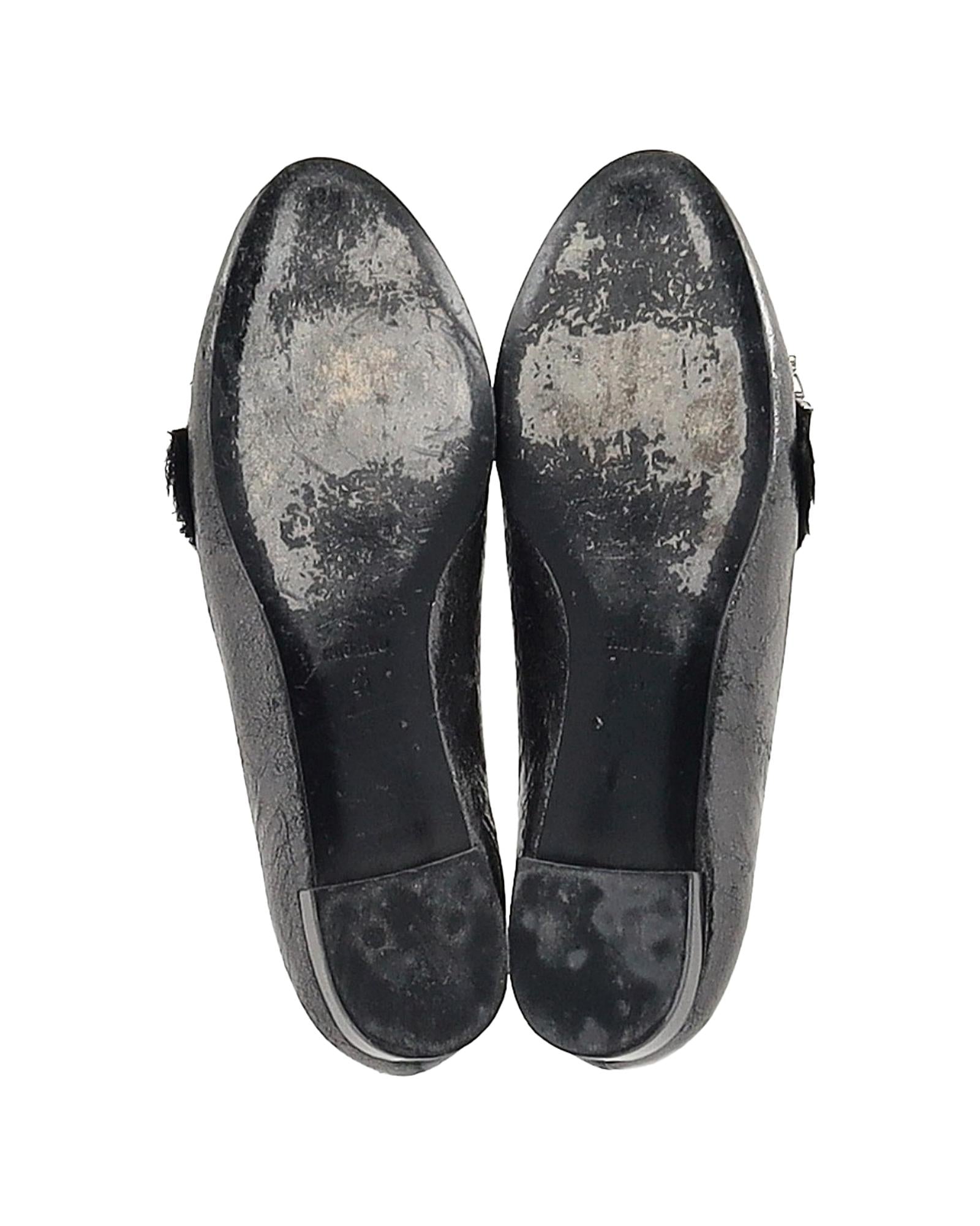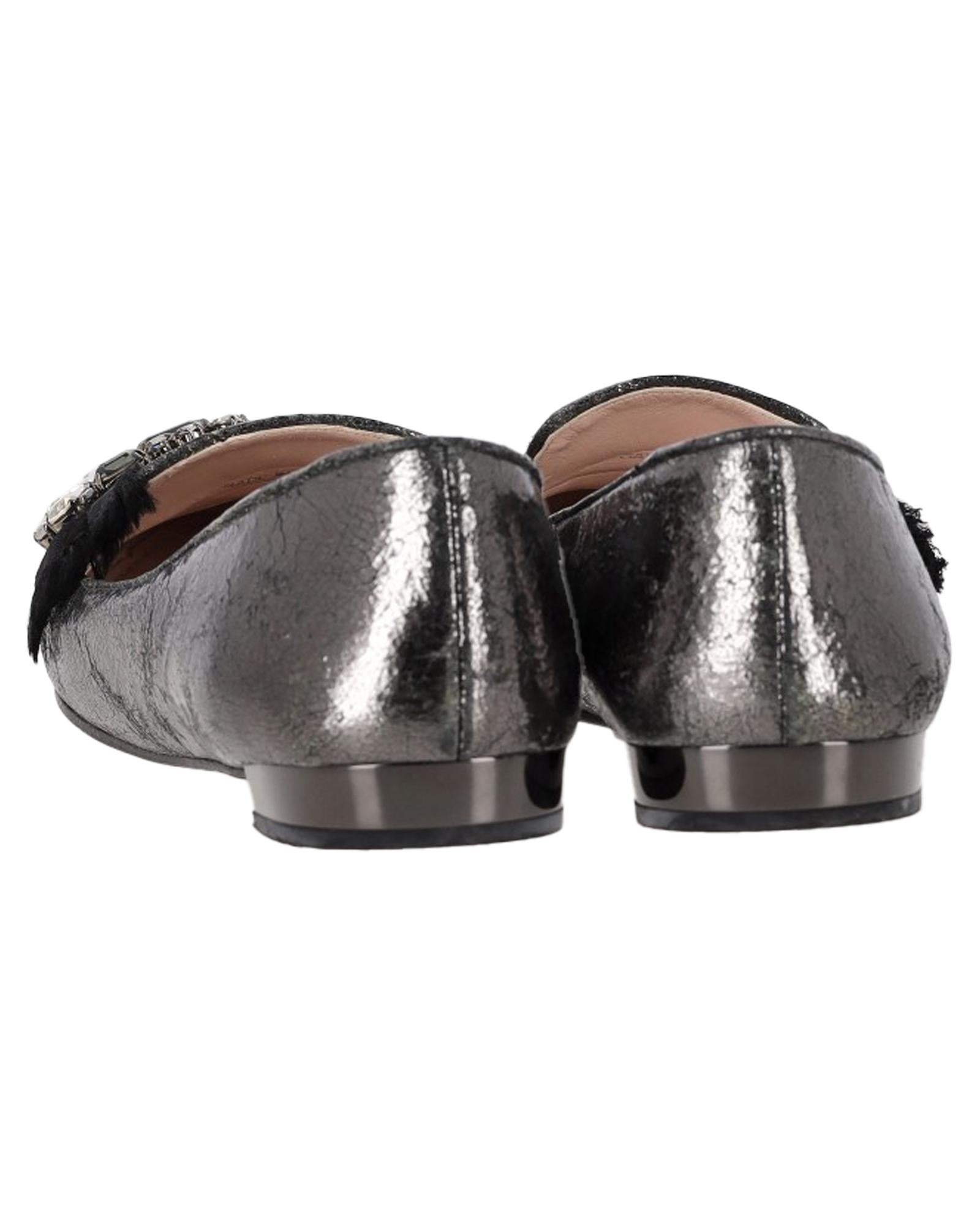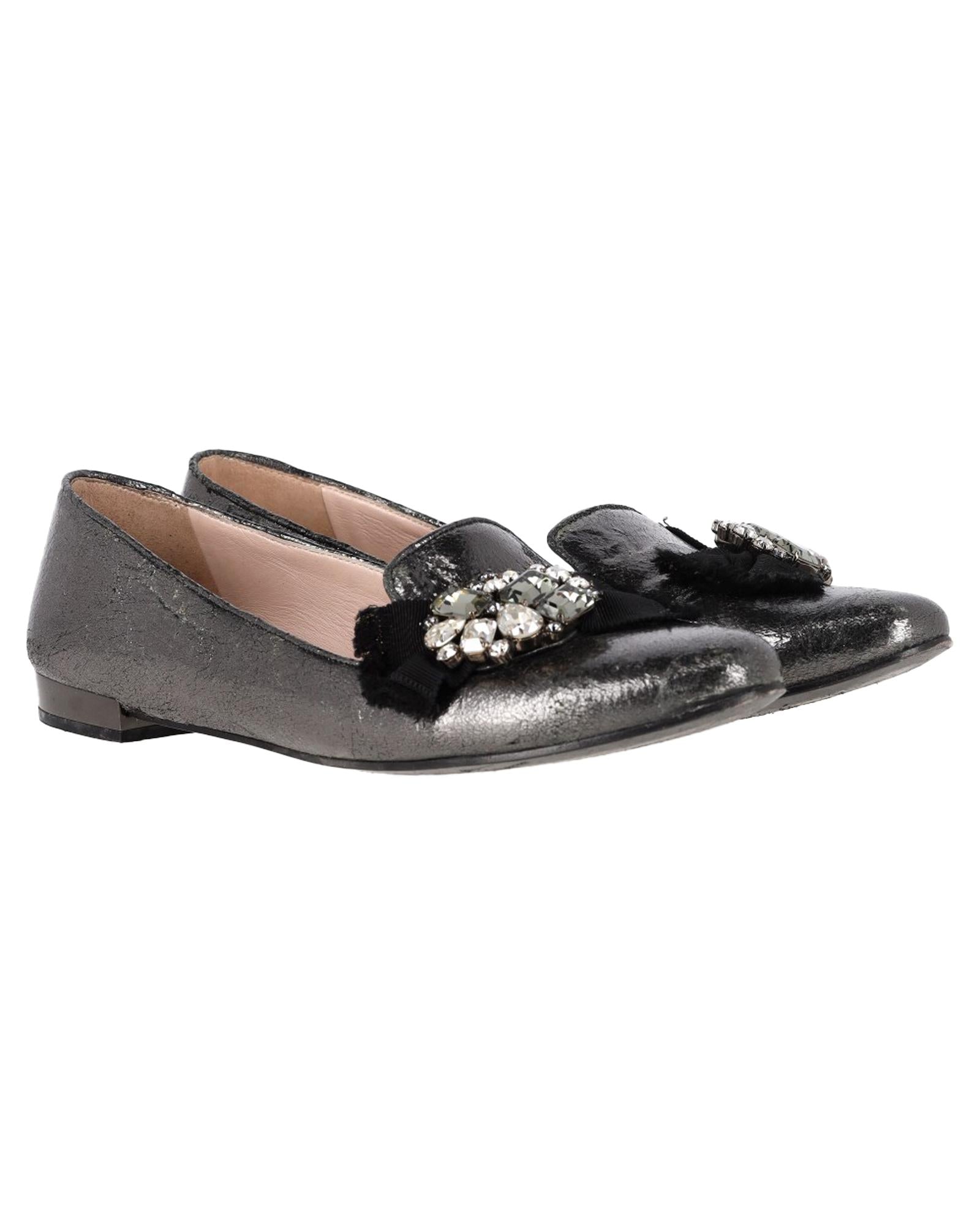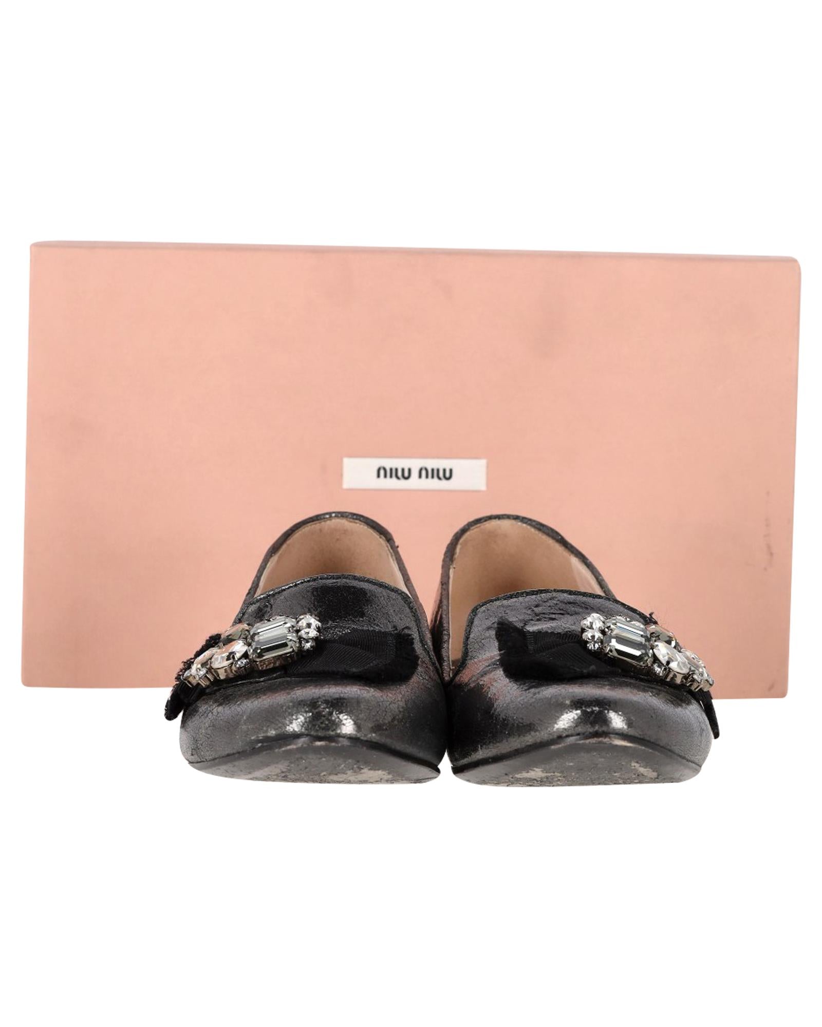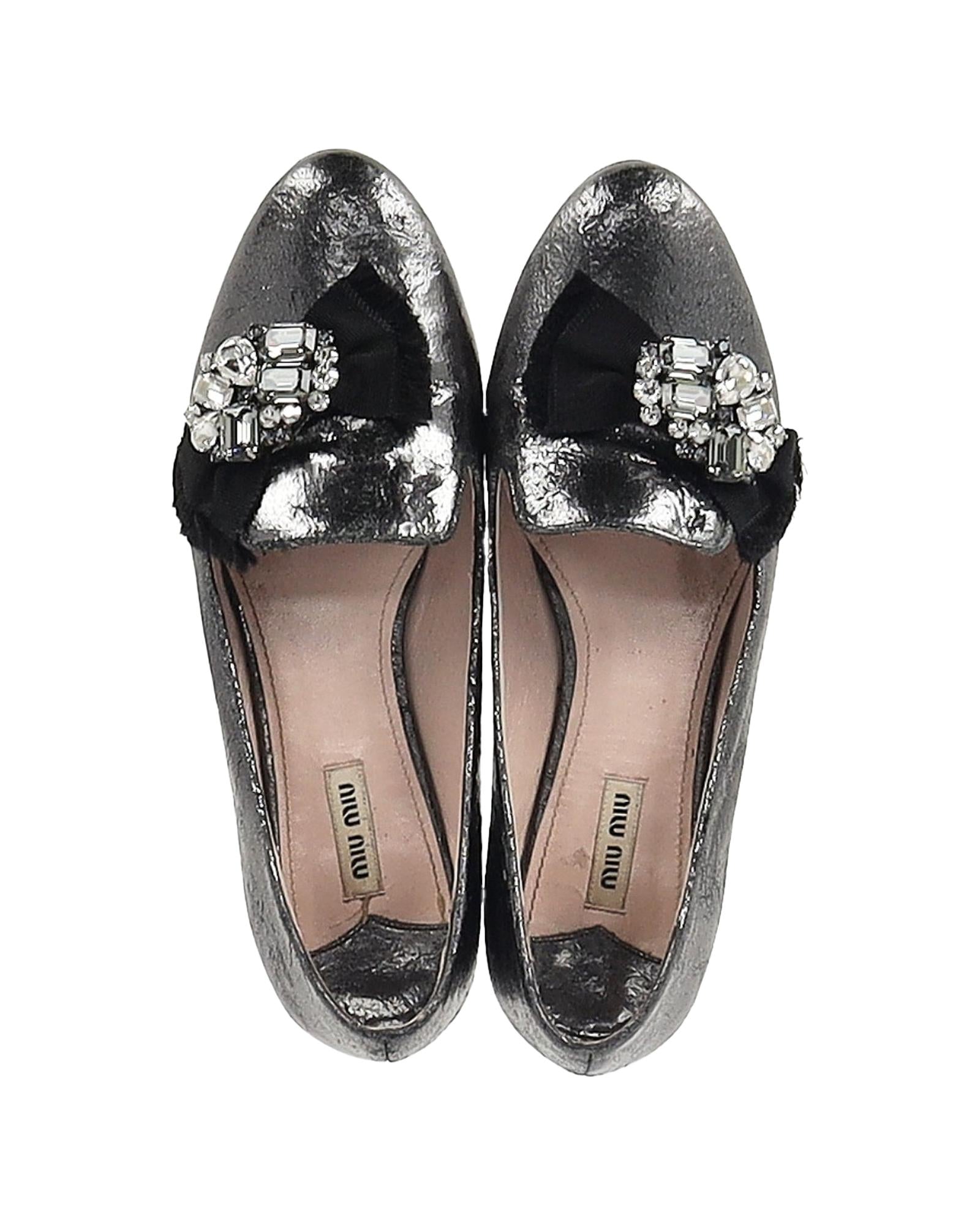 • Miu Miu by Prada Jeweled Ballet Flats in Metallic Grey Leather