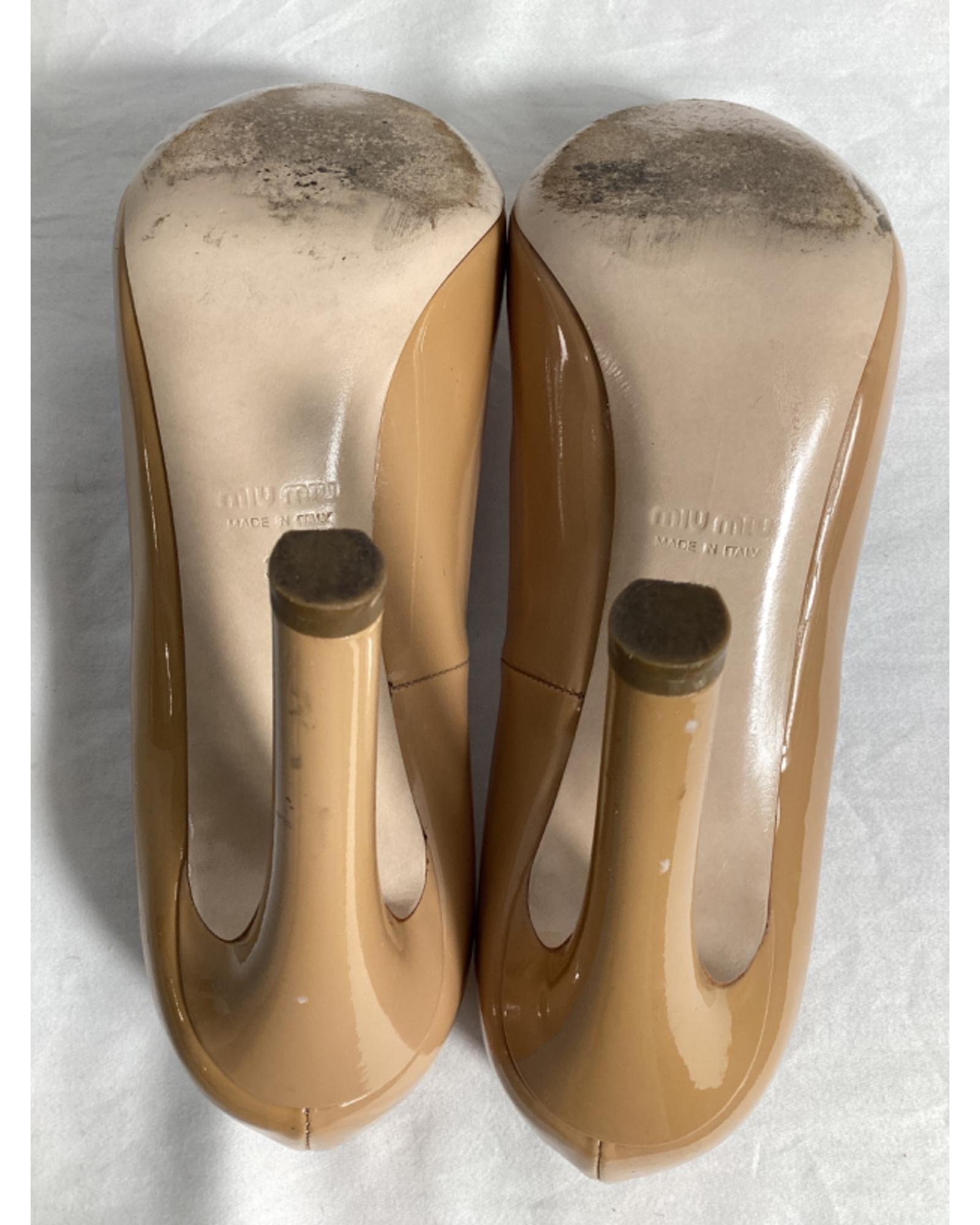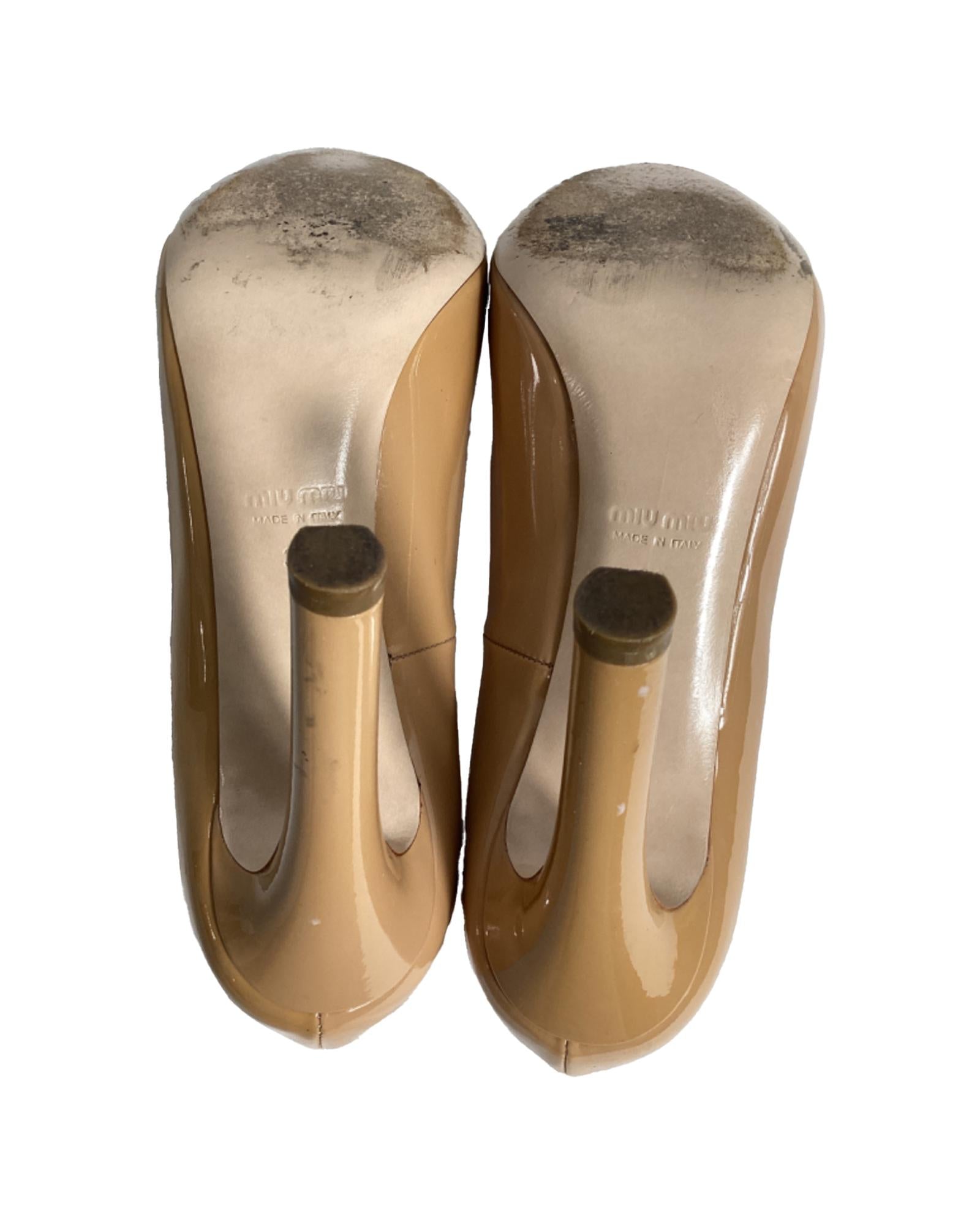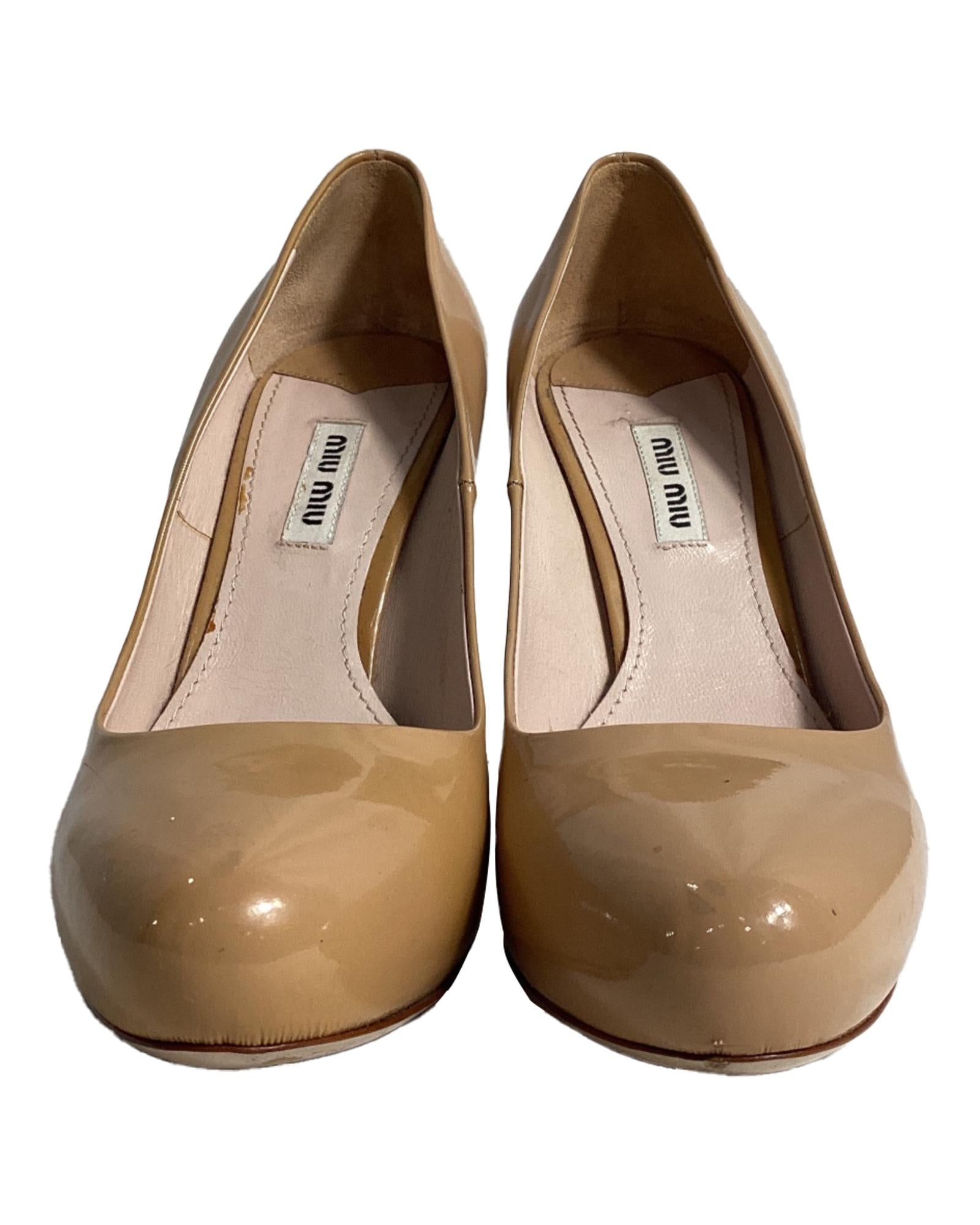 - Beige patent leather