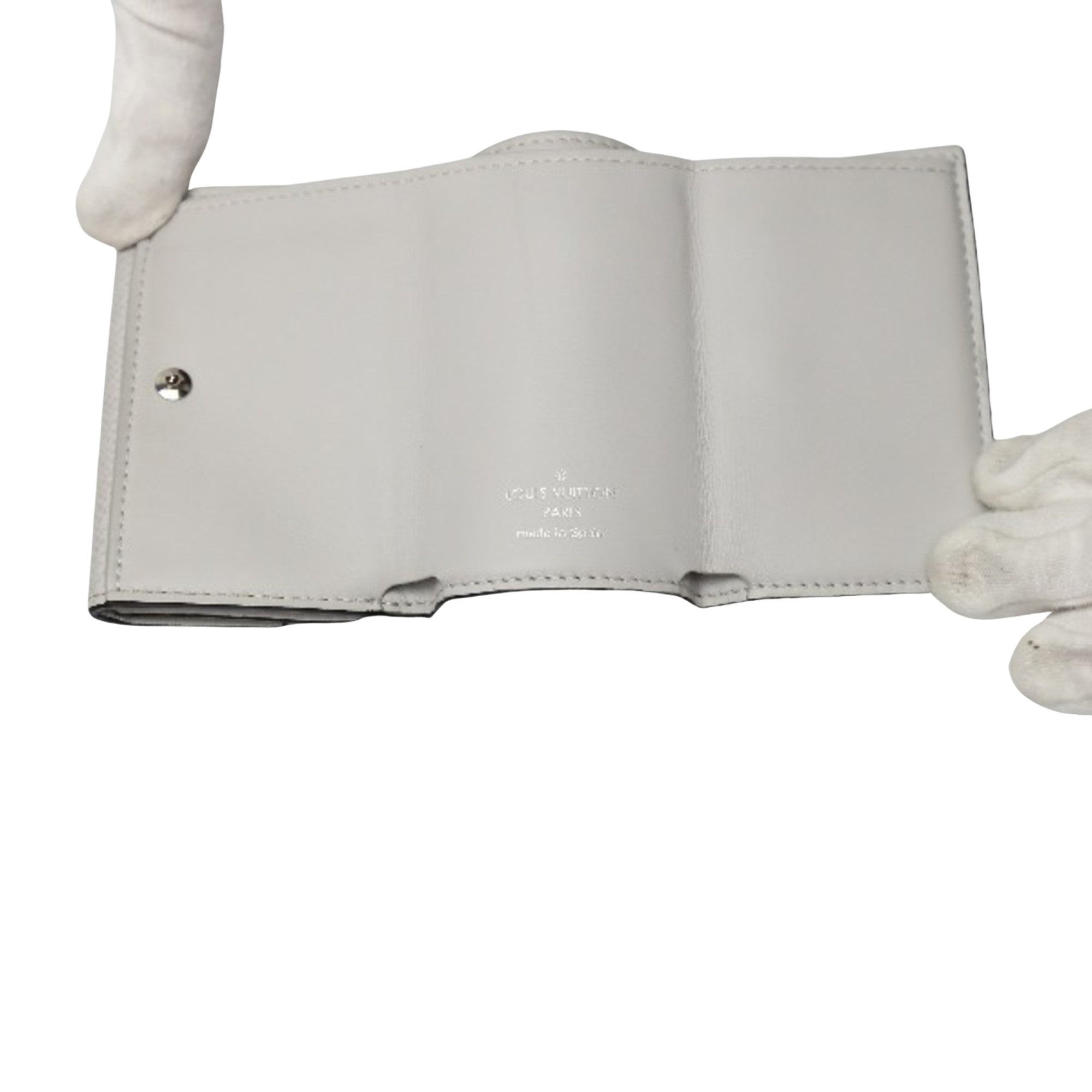 Introducing the Louis Vuitton Discovery Tri-Fold Wallet a harmonious blend of style functionality designed for the modern woman. This elegant wallet in the pristine Blanc color is a testament to Louis Vuittons commitment to quality sophistication. Crafted with meticulous attention to detail the overall condition reveals slight scratches dirt traces of use highlighting its well-maintained appearance. The wallet features a convenient tri-fold design for efficient organization. While showcasing minor wear in the form of slight creases on the coin card cases it only adds character to this timeless accessory. Elevate your everyday style with the Louis Vuitton Discovery Wallet a perfect fusion of luxury practicality showcasing the brands dedication to enduring craftsmanship.