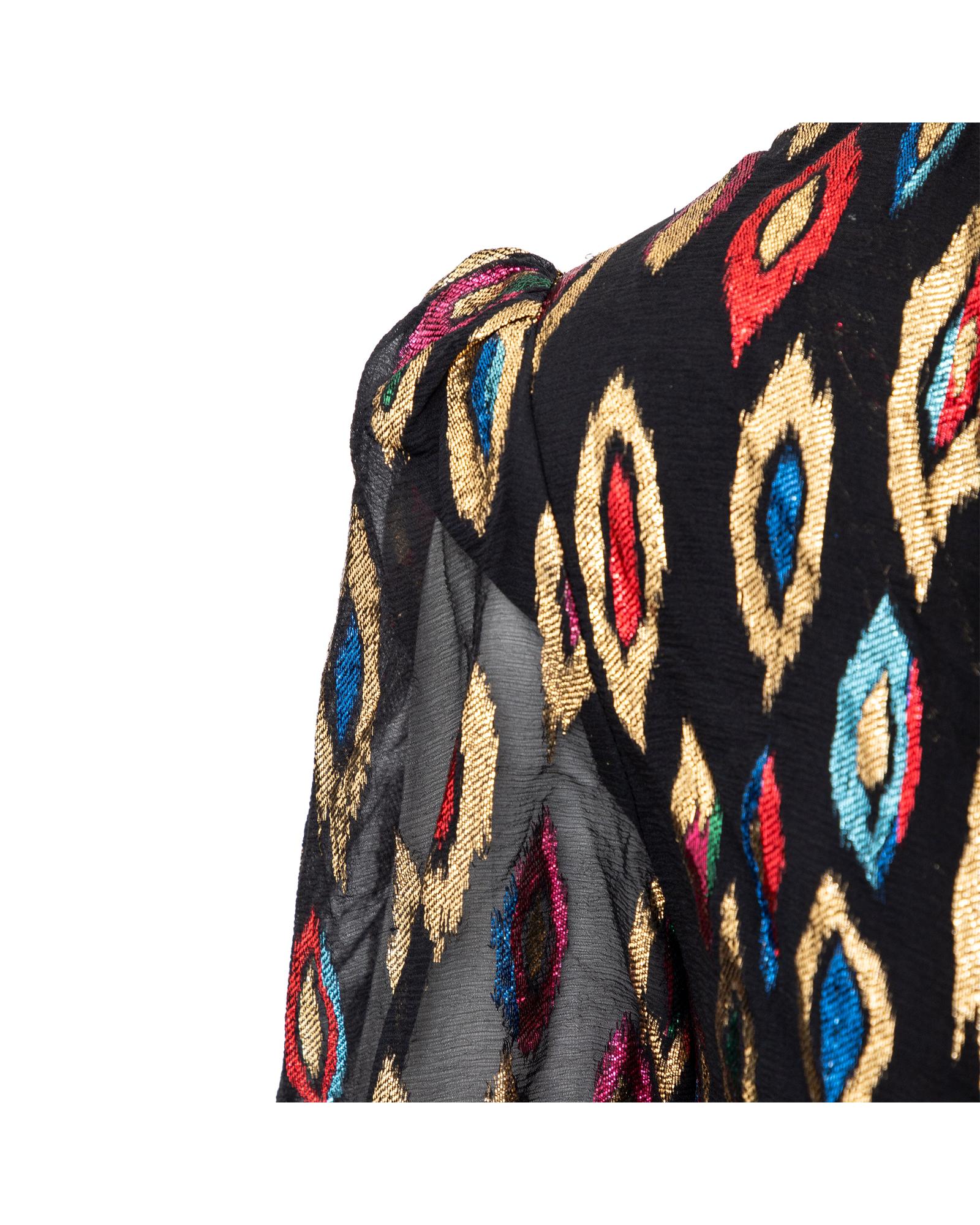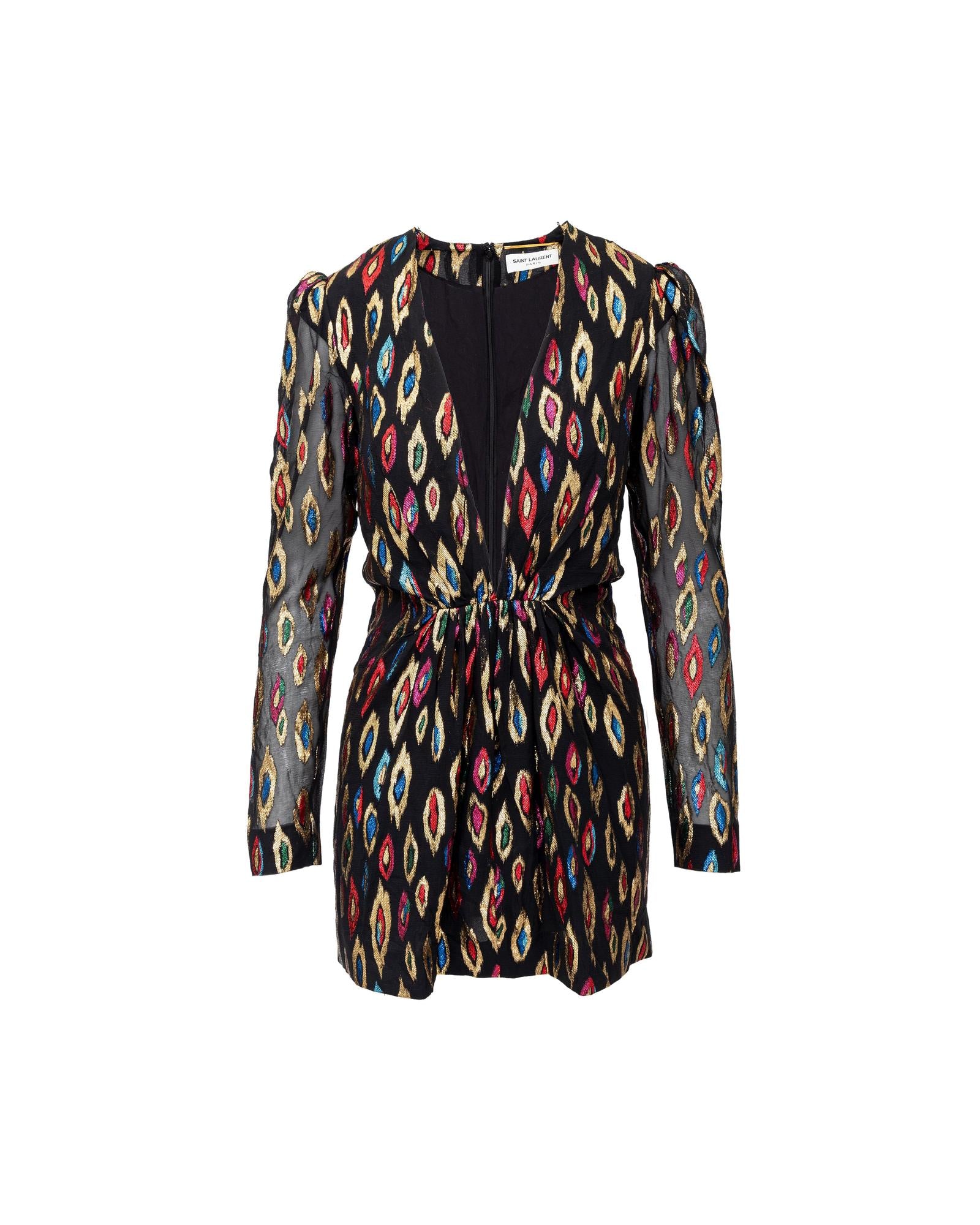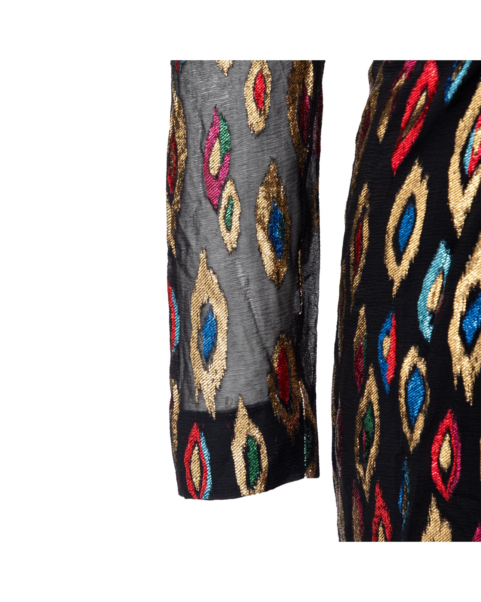 Peacock Jacquard Cocktail Dress with Gold Embroidery