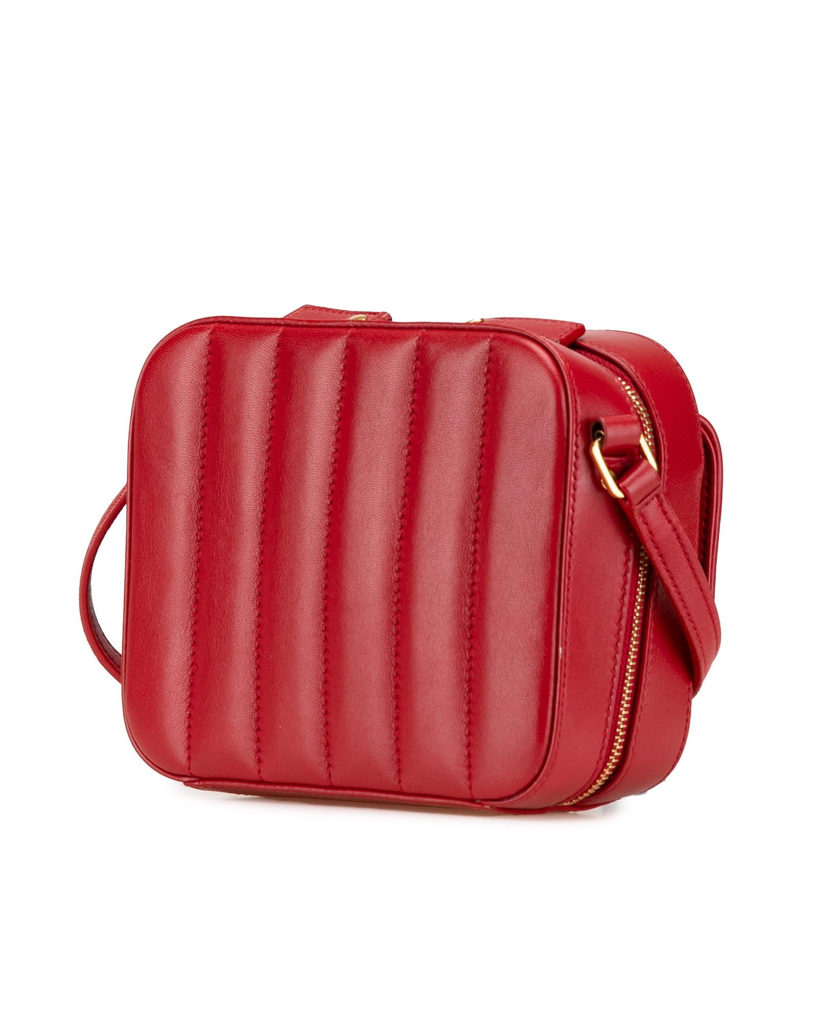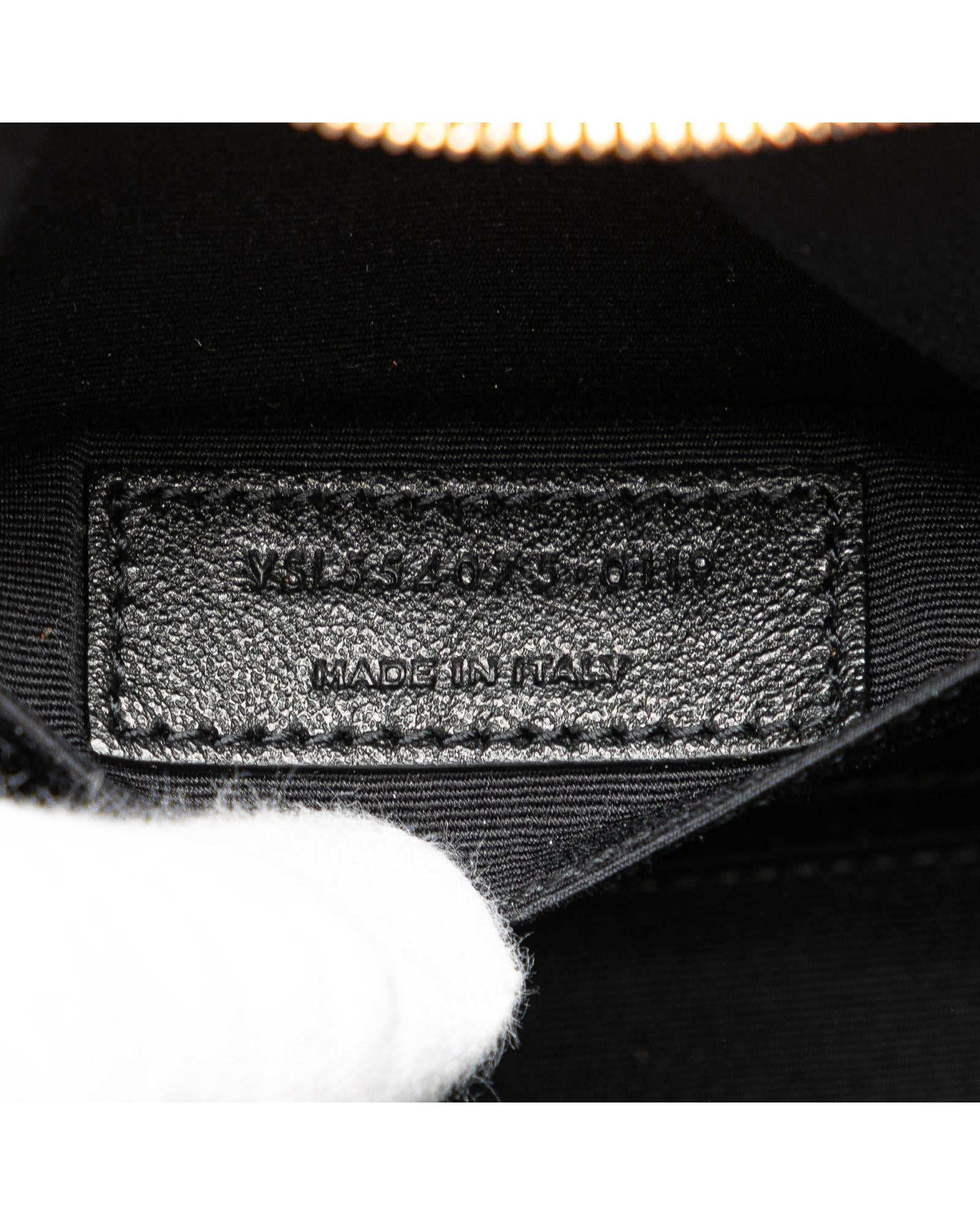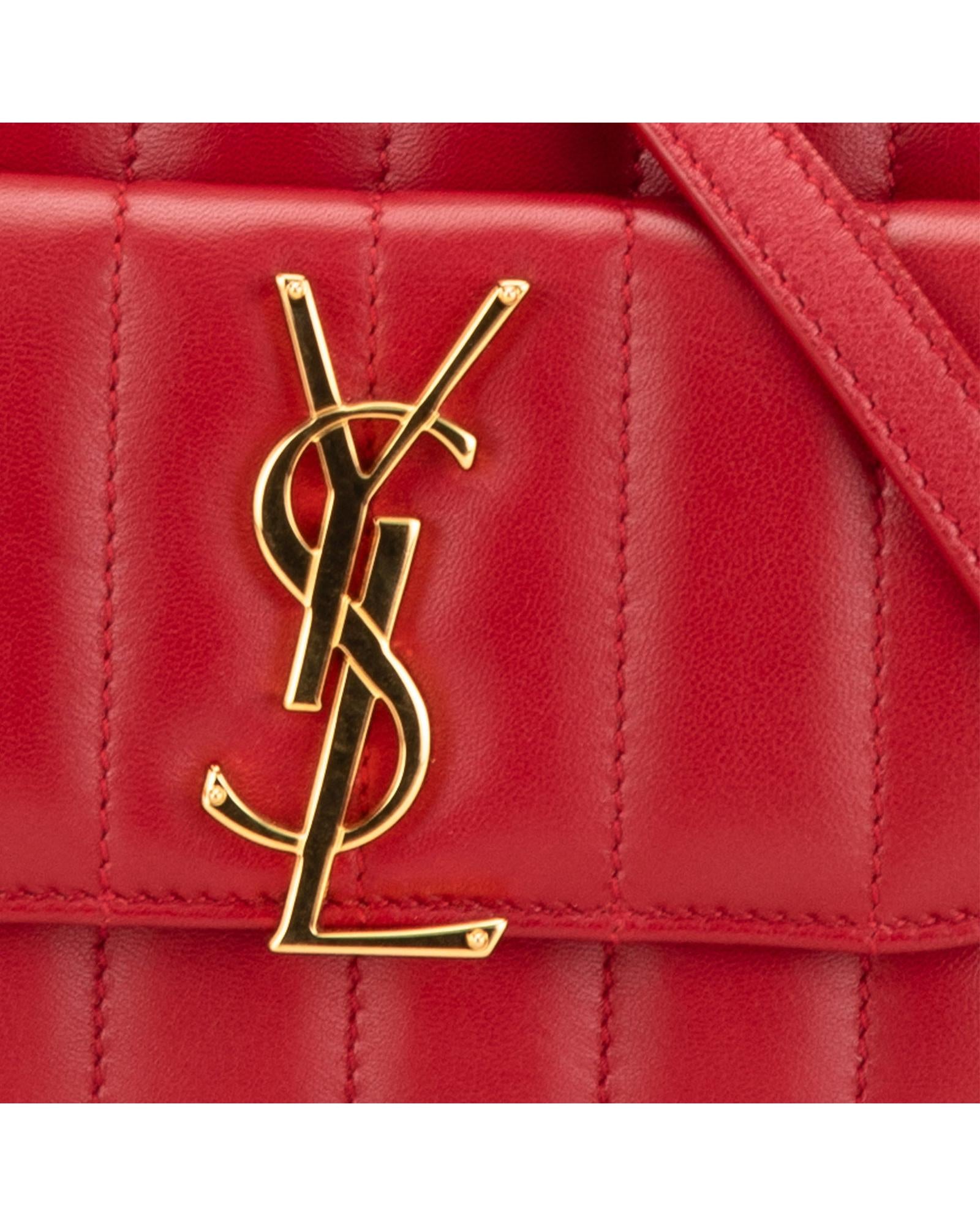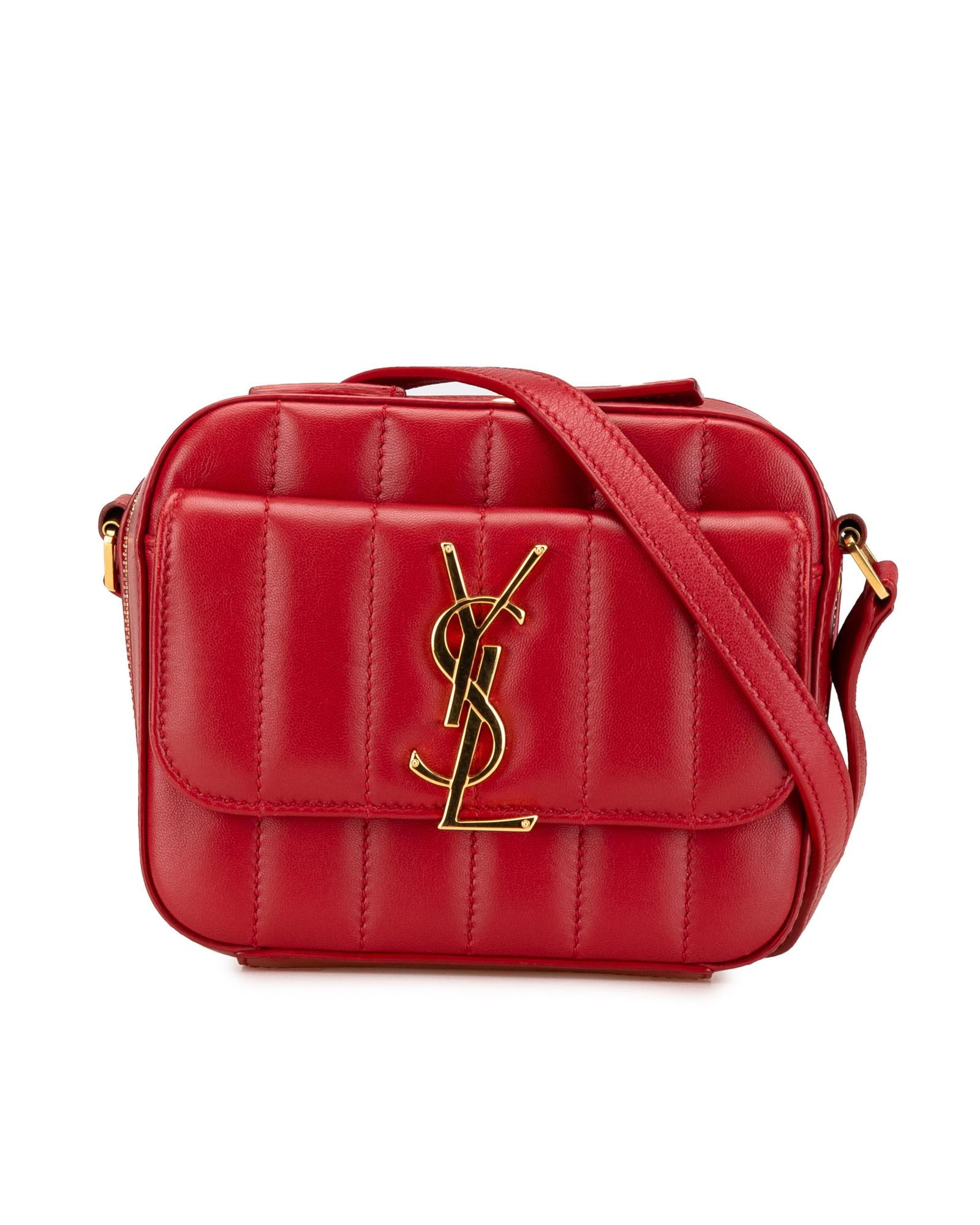 The Toy Vicky crossbody features a quilted lambskin leather body an adjustable flat strap a zip around closure an exterior front flap pocket with snap button closure and interior slip pockets.Brand: Saint Laurent
