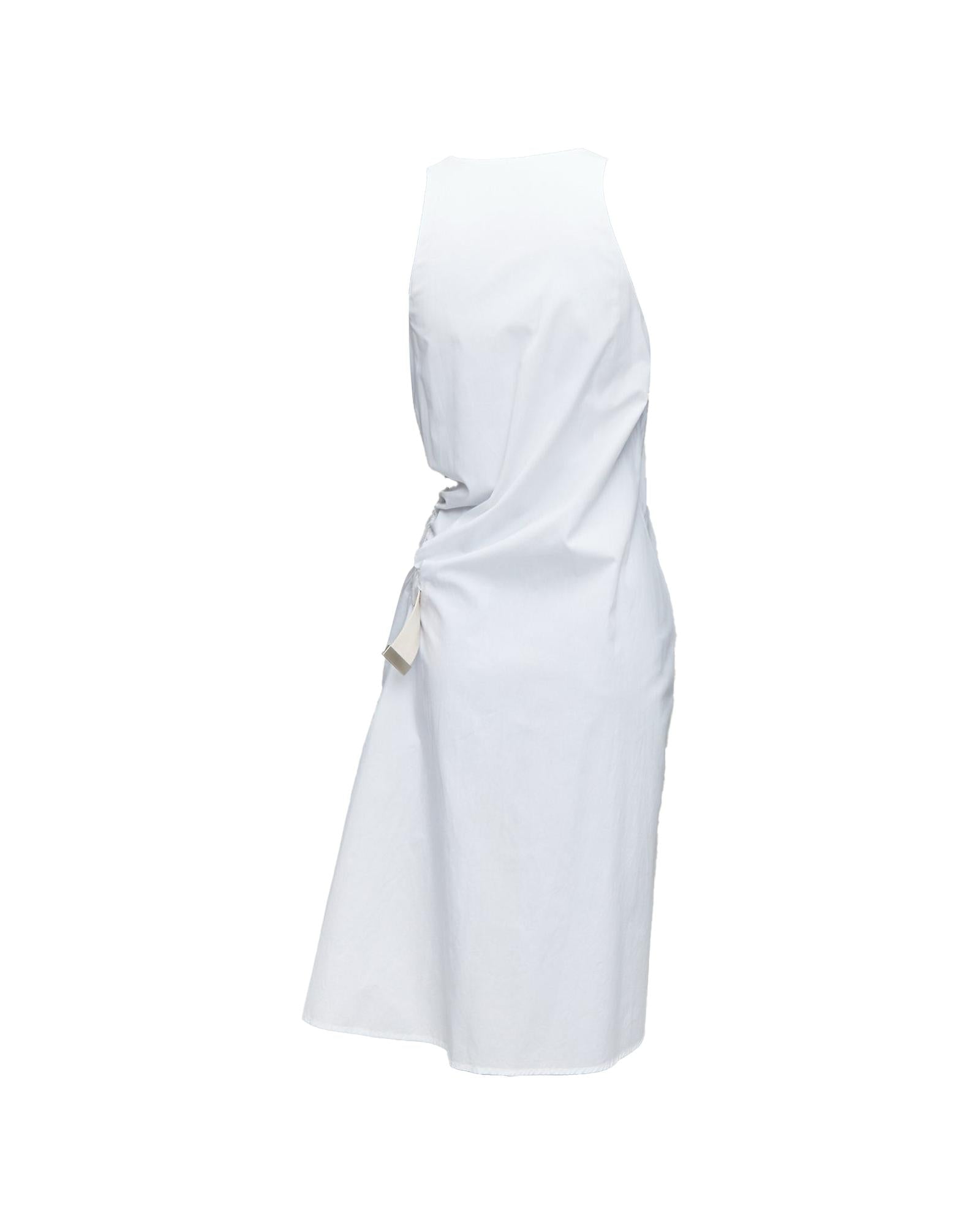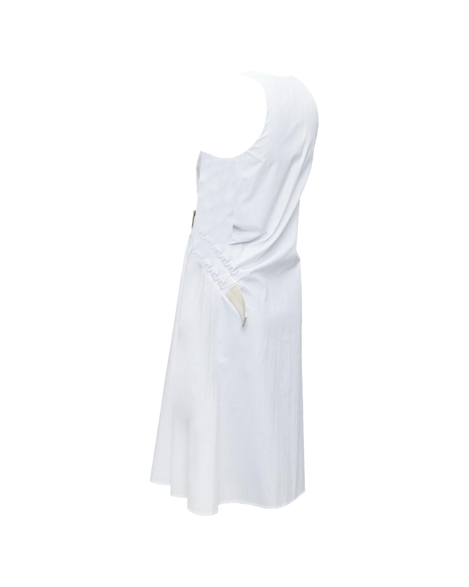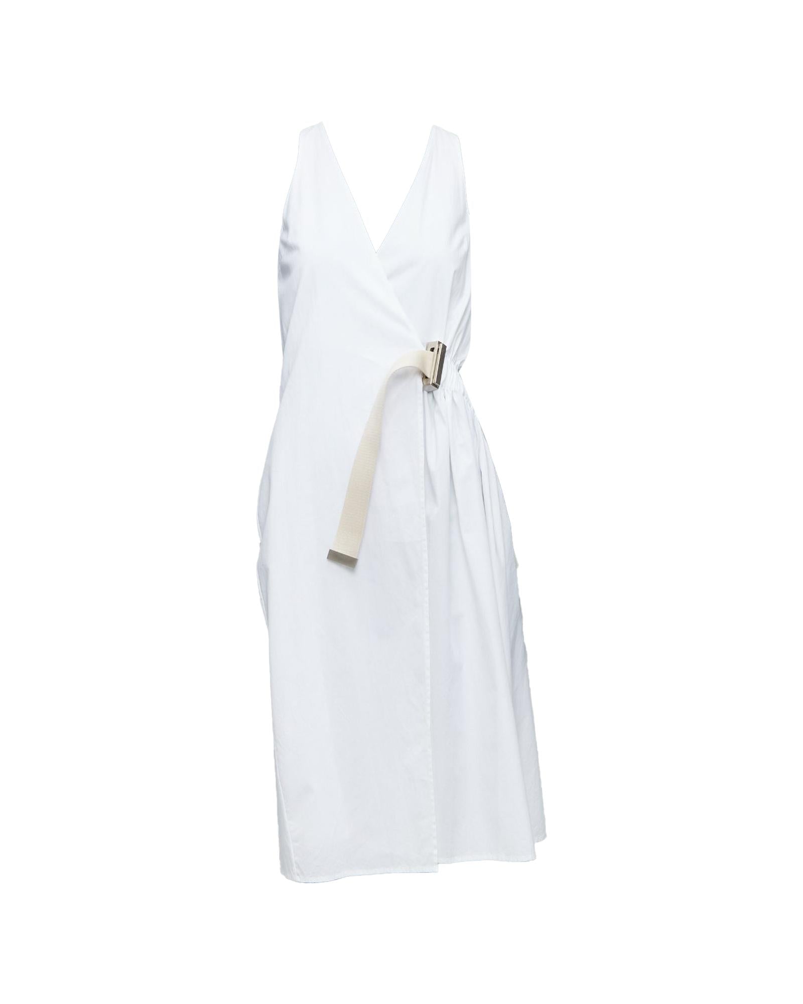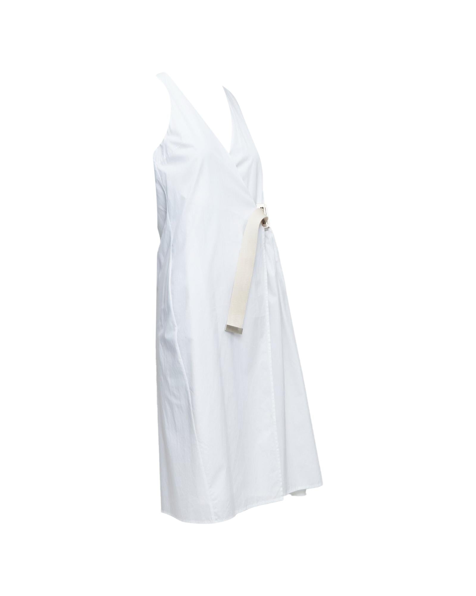 Pre-owned Sleeveless V-Neck Wrap Dress with Buckle Closure and Adjustable Belt