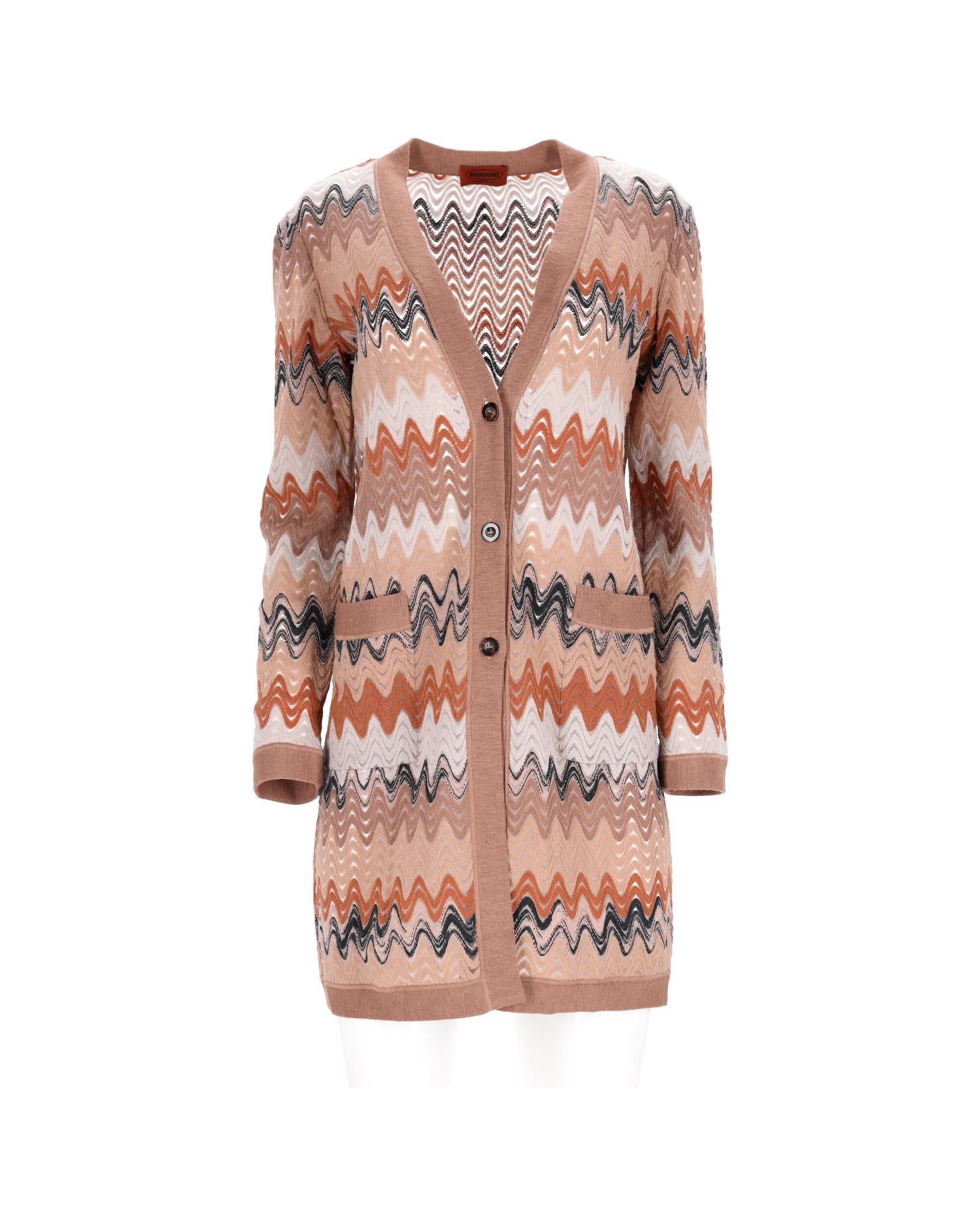 - Missoni Zigzag Buttoned Long Cardigan in Multicolor Viscose