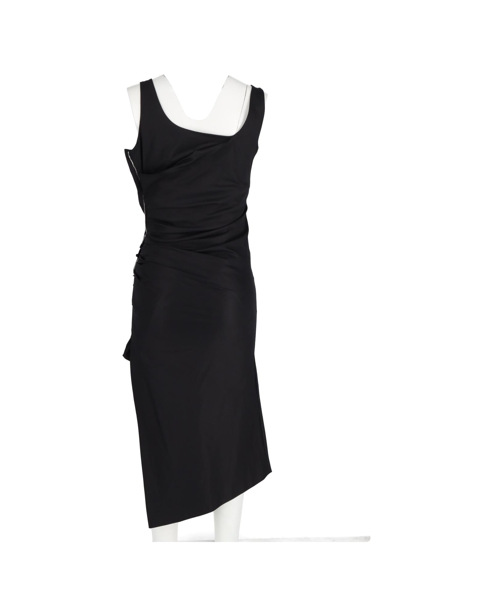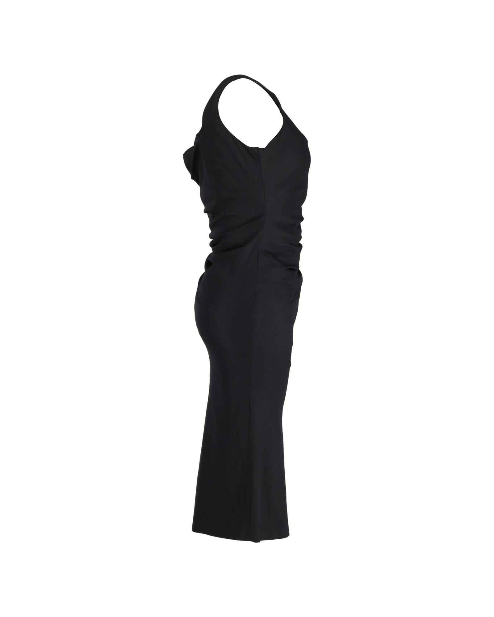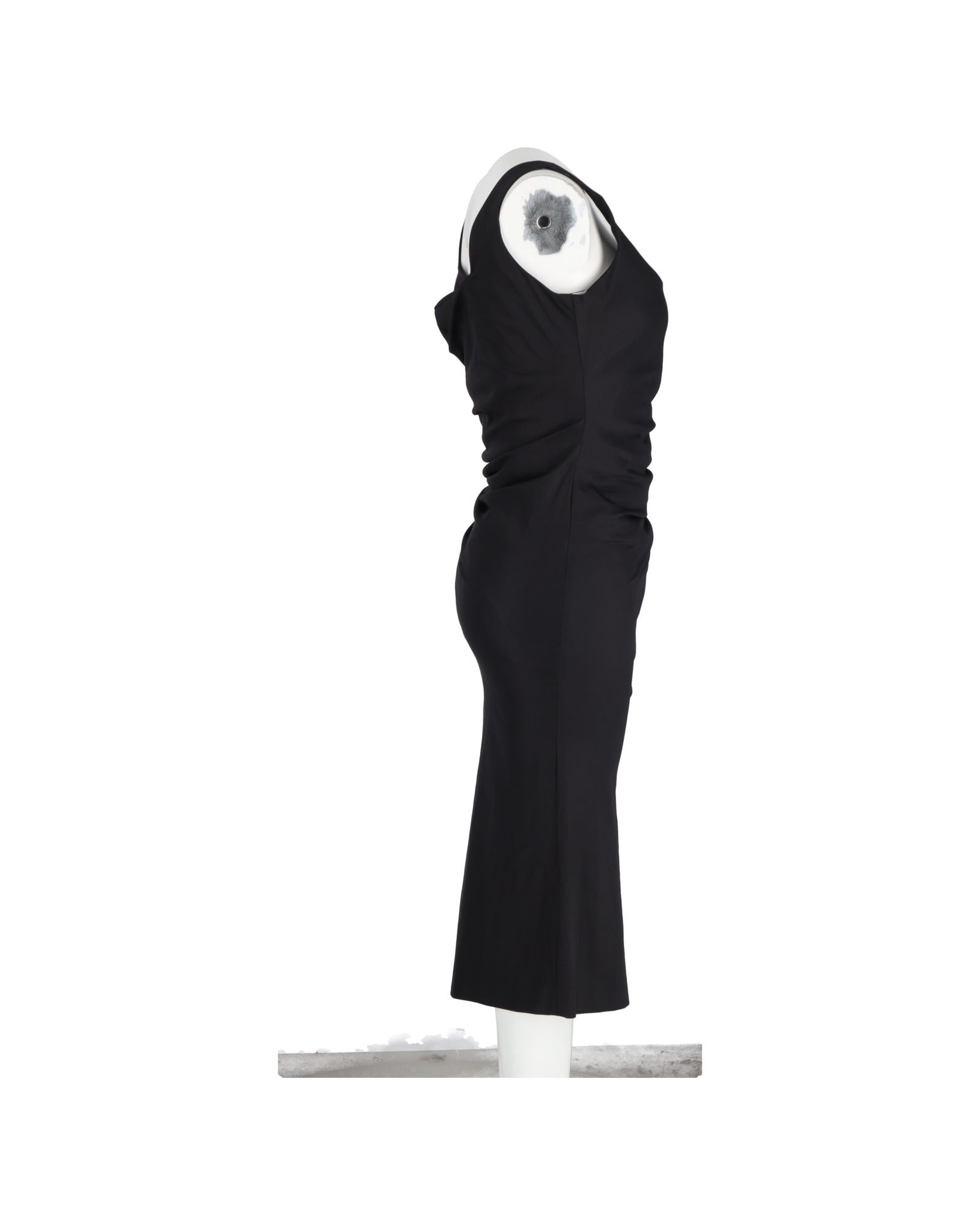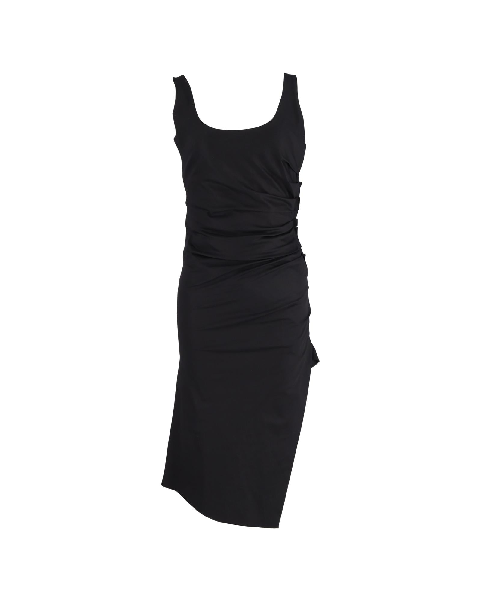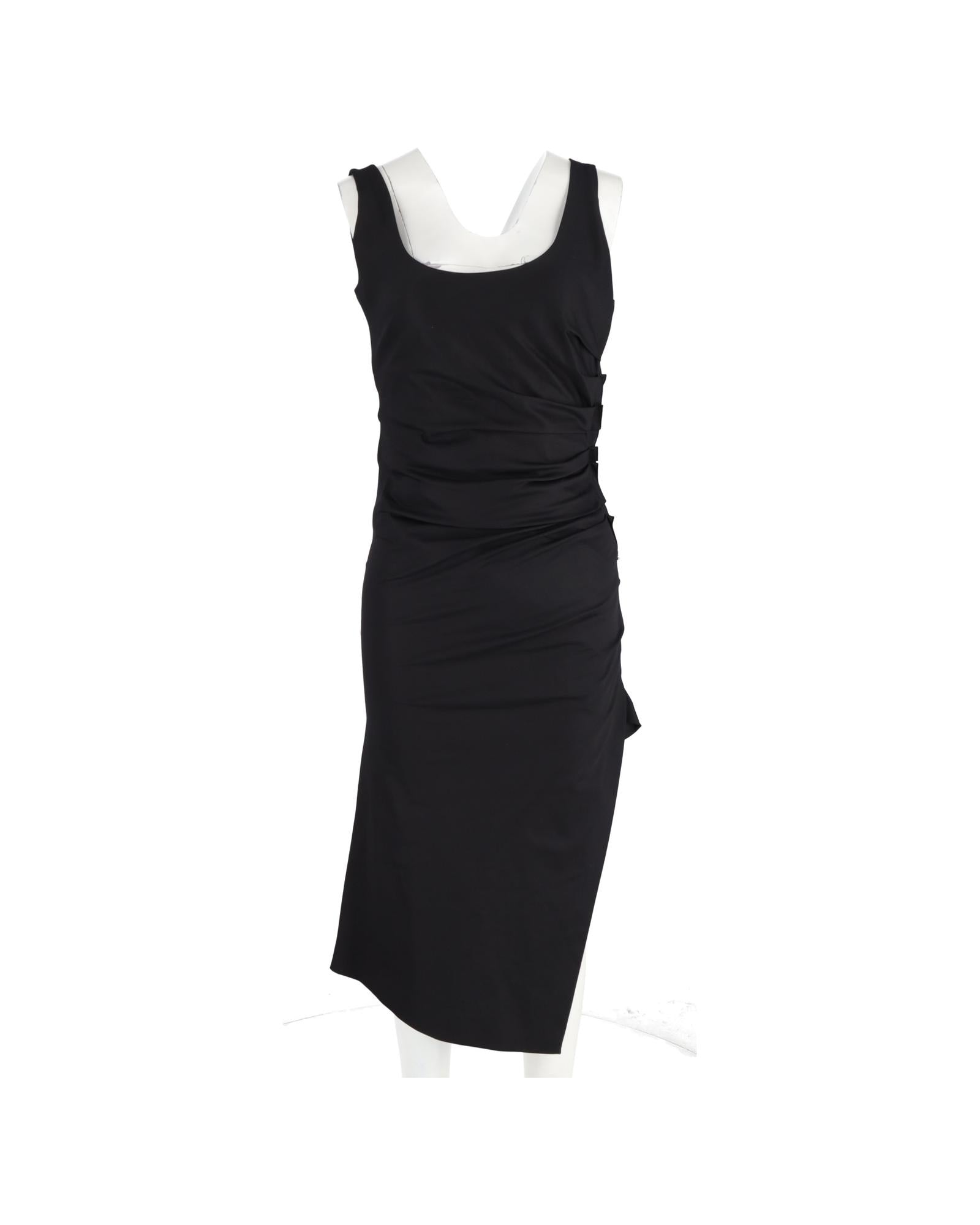 - Max Mara Gathered Side Detail Midi Dress in Black Polyester