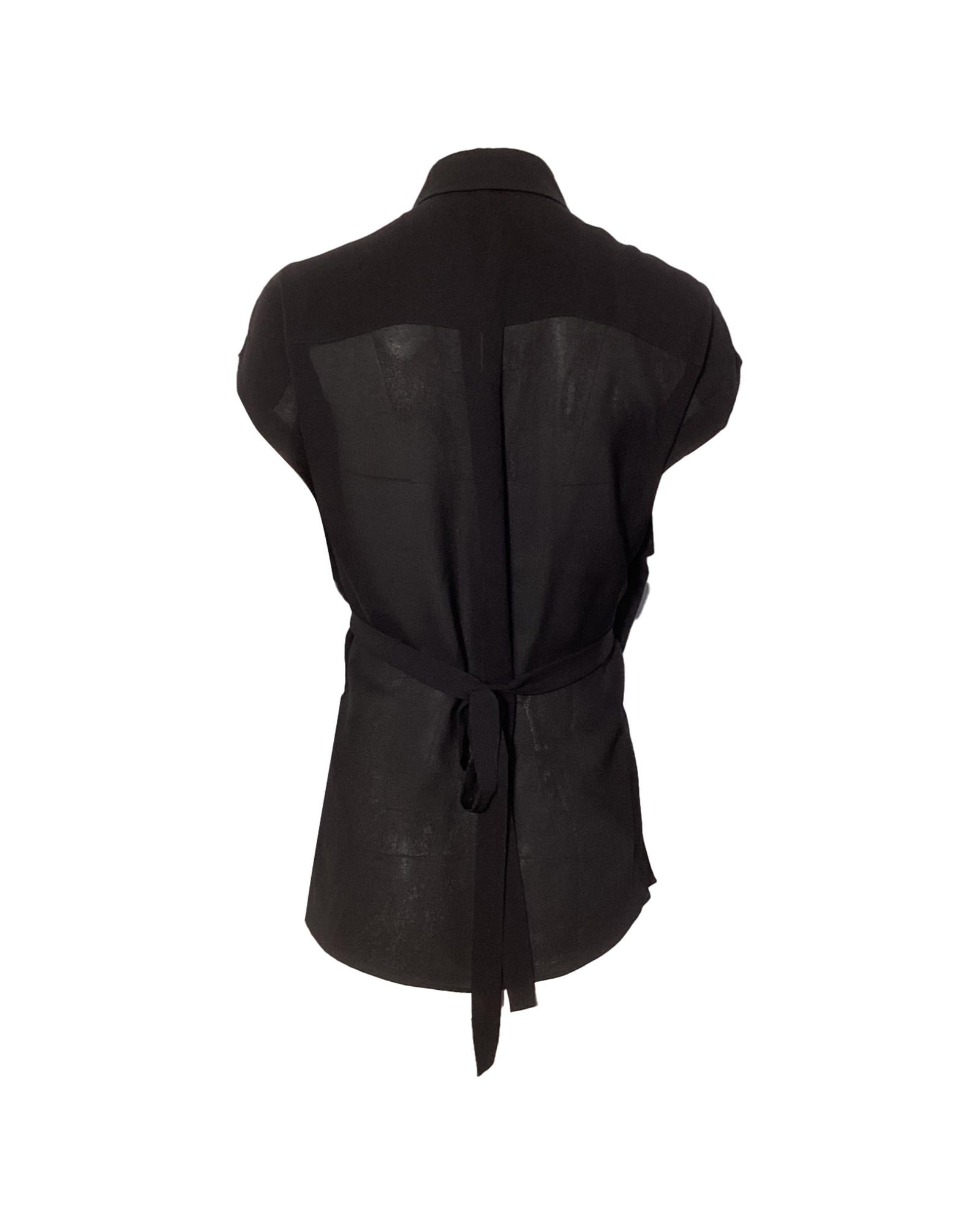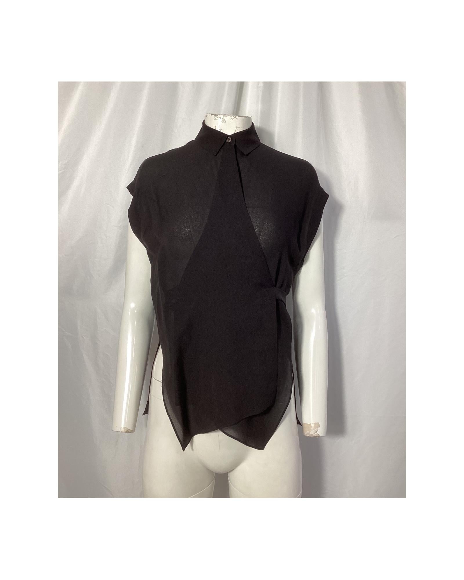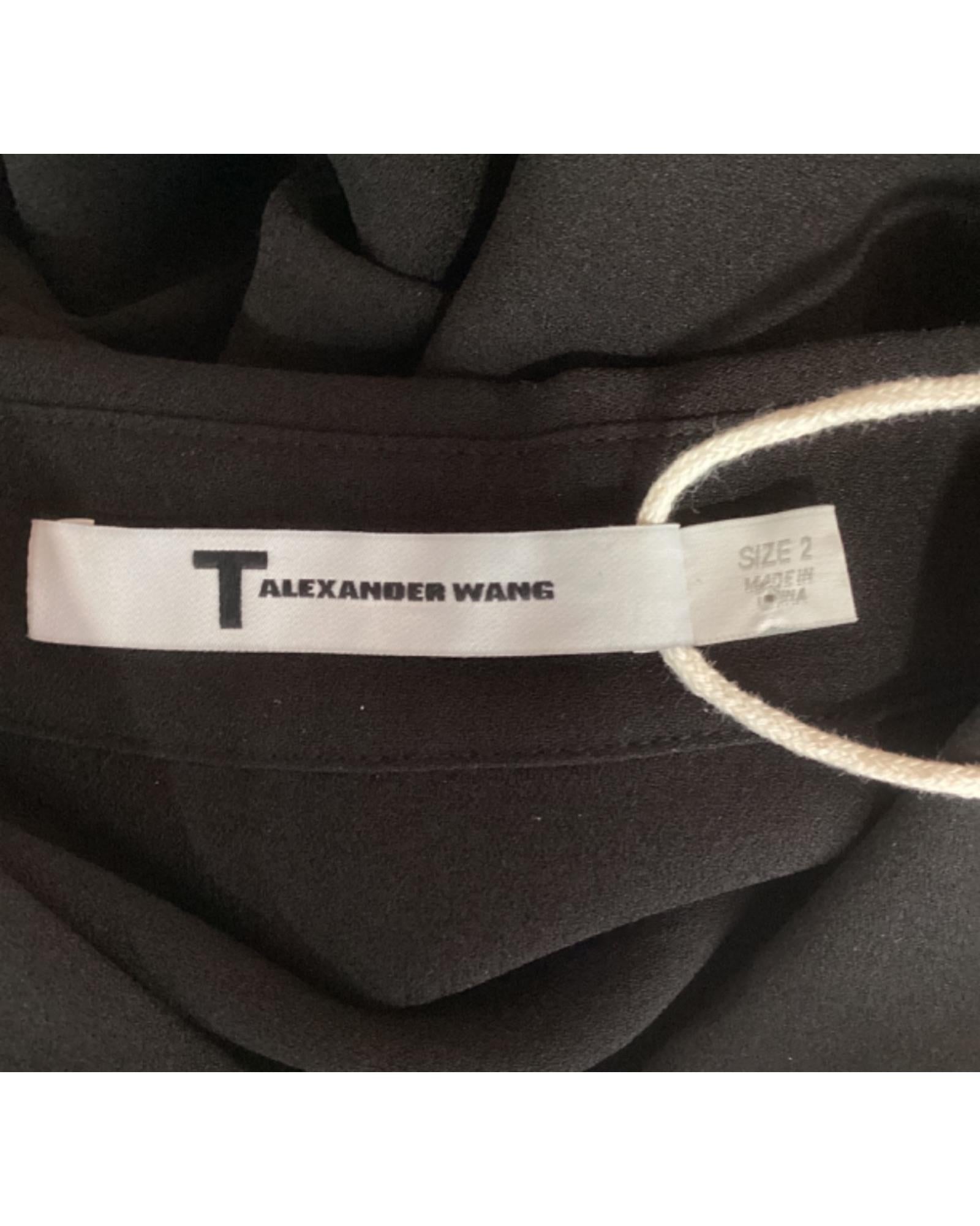 - T by Alexander Wang Wrap Blouse in Black Silk