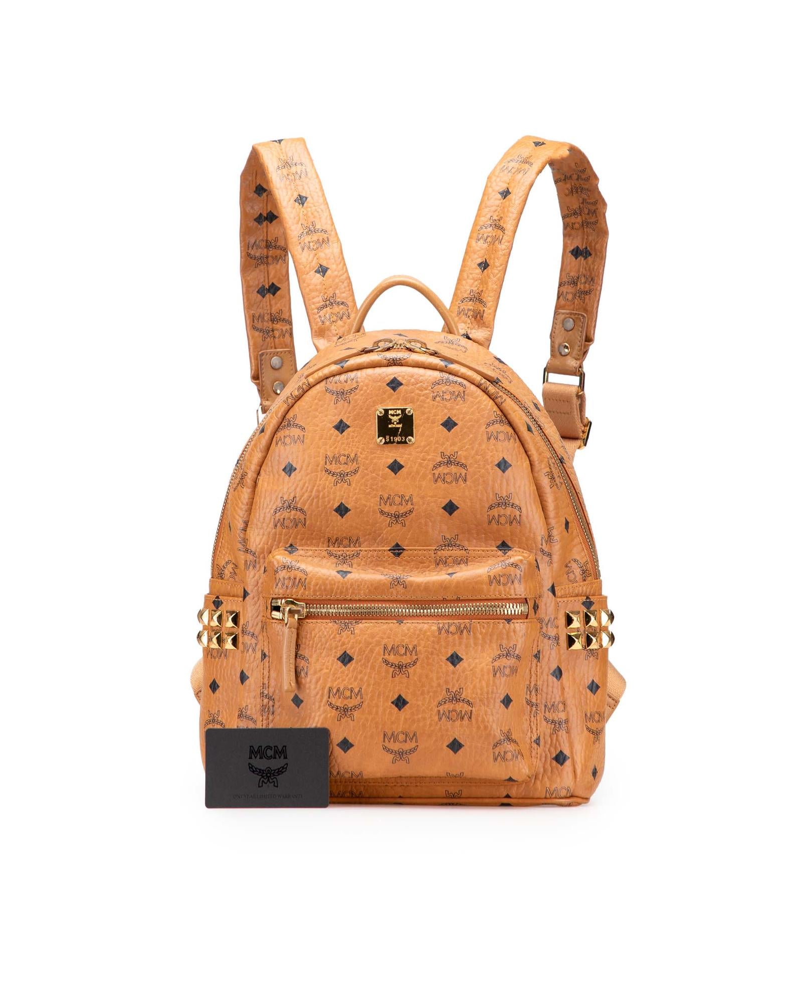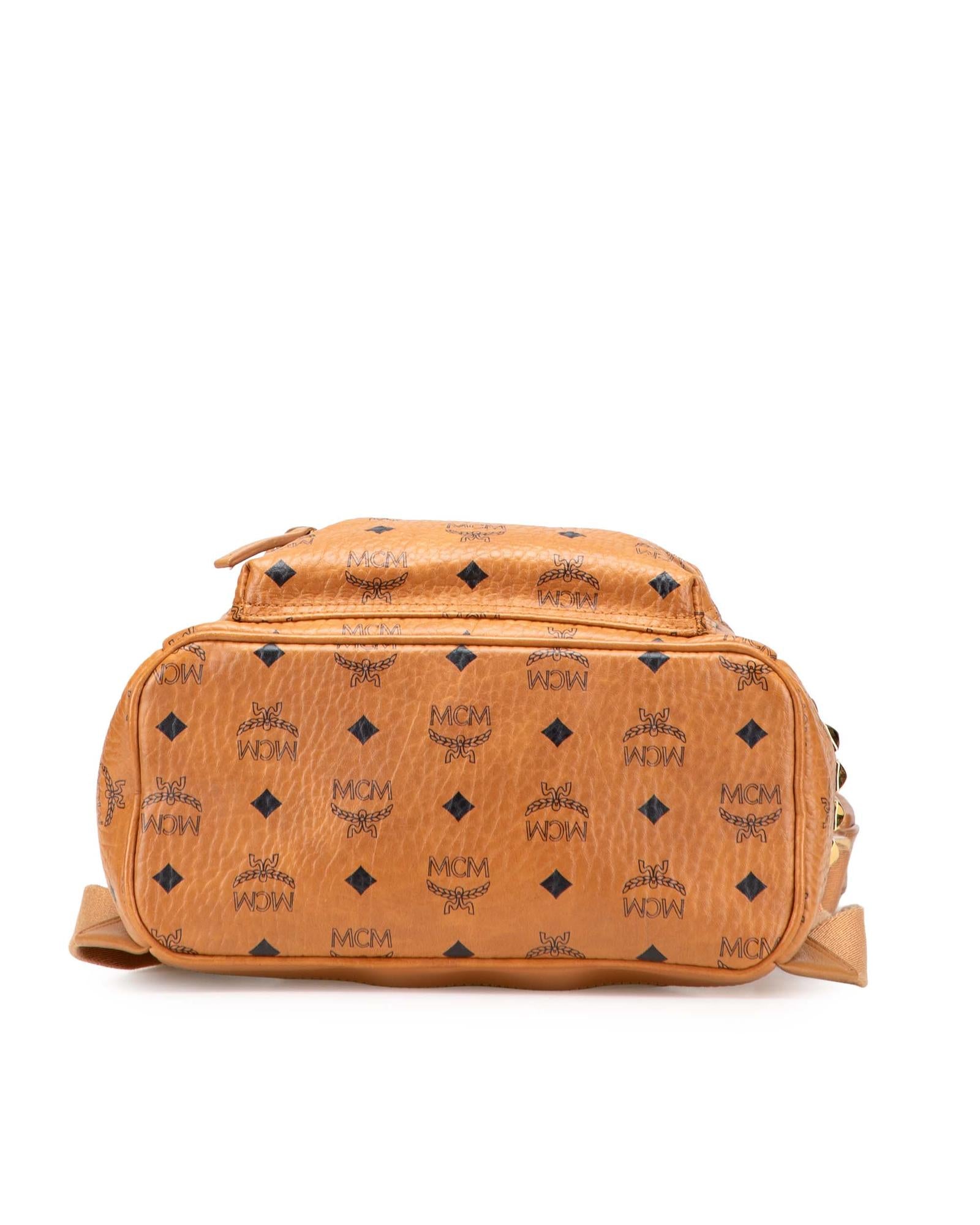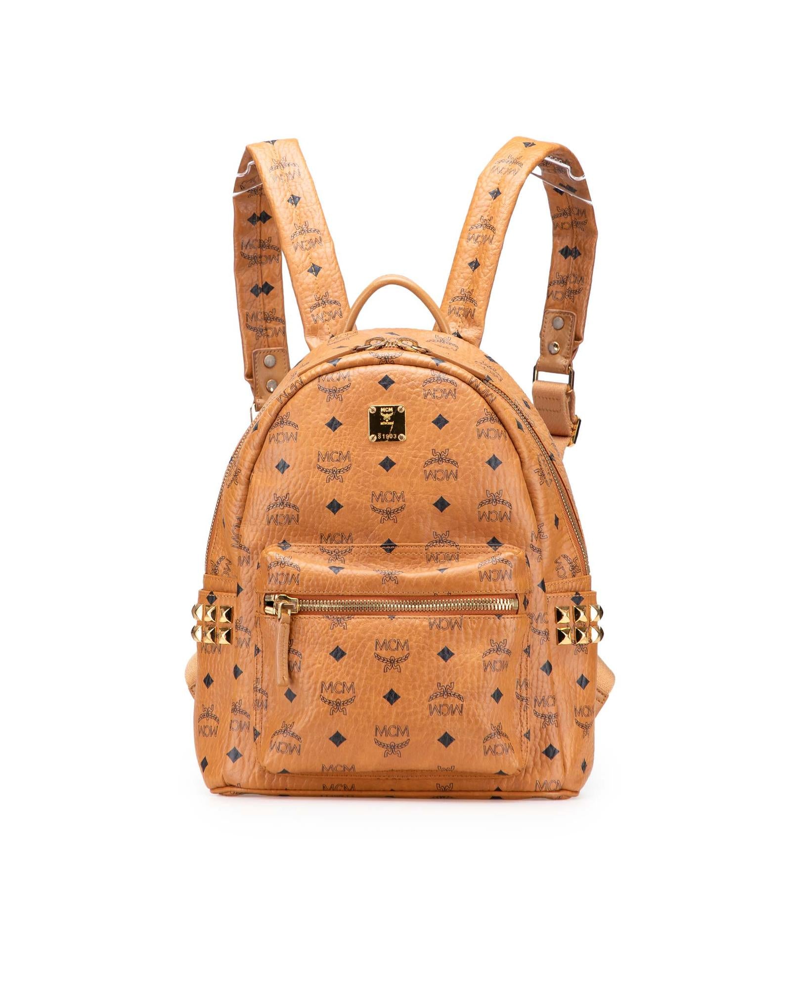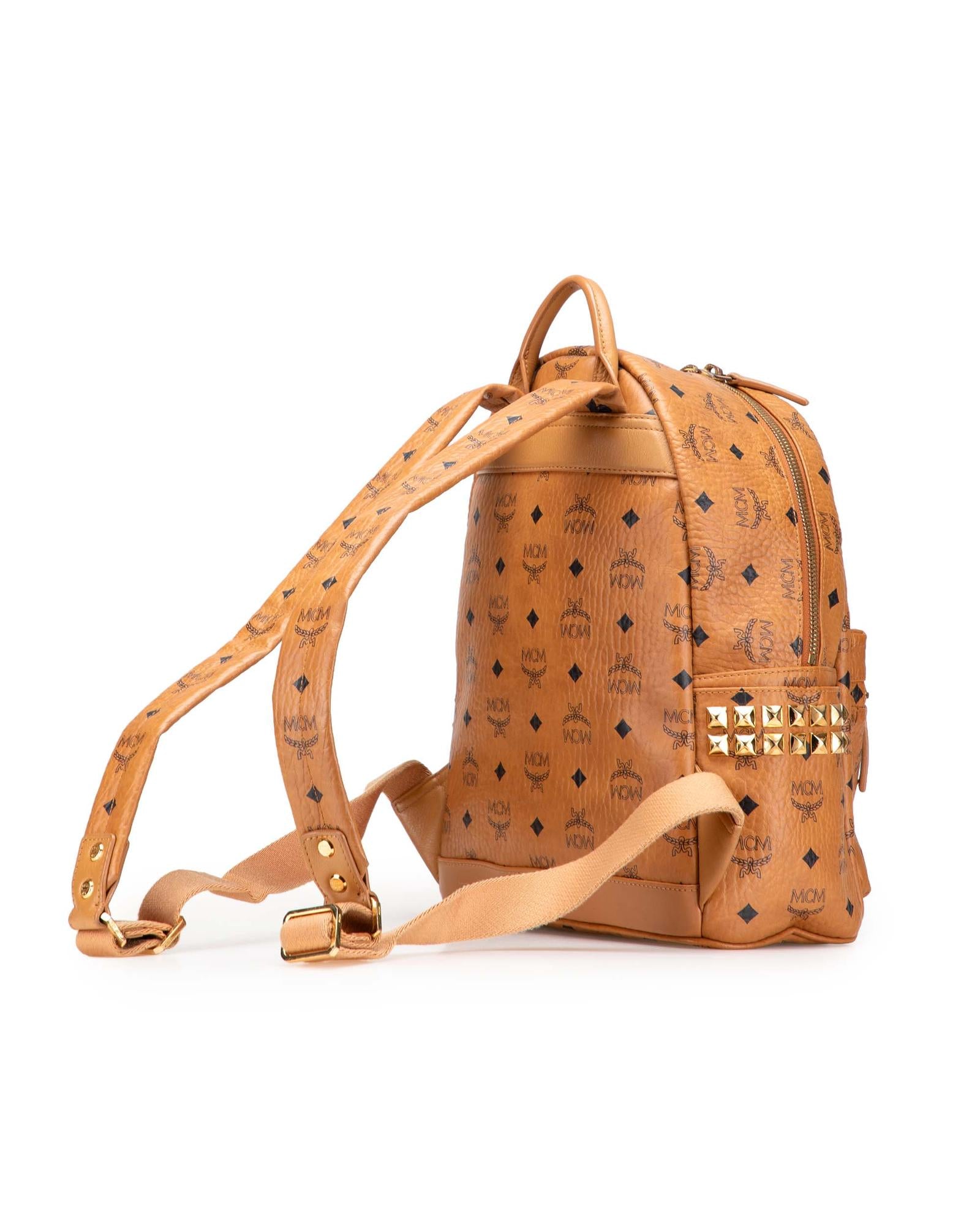 The Stark backpack features a coated canvas body a flat leather top handle adjustable flat back straps a top zip closure an exterior front zip pocket exterior side slip pockets and interior zip and slip pockets.Brand: MCM Vintage