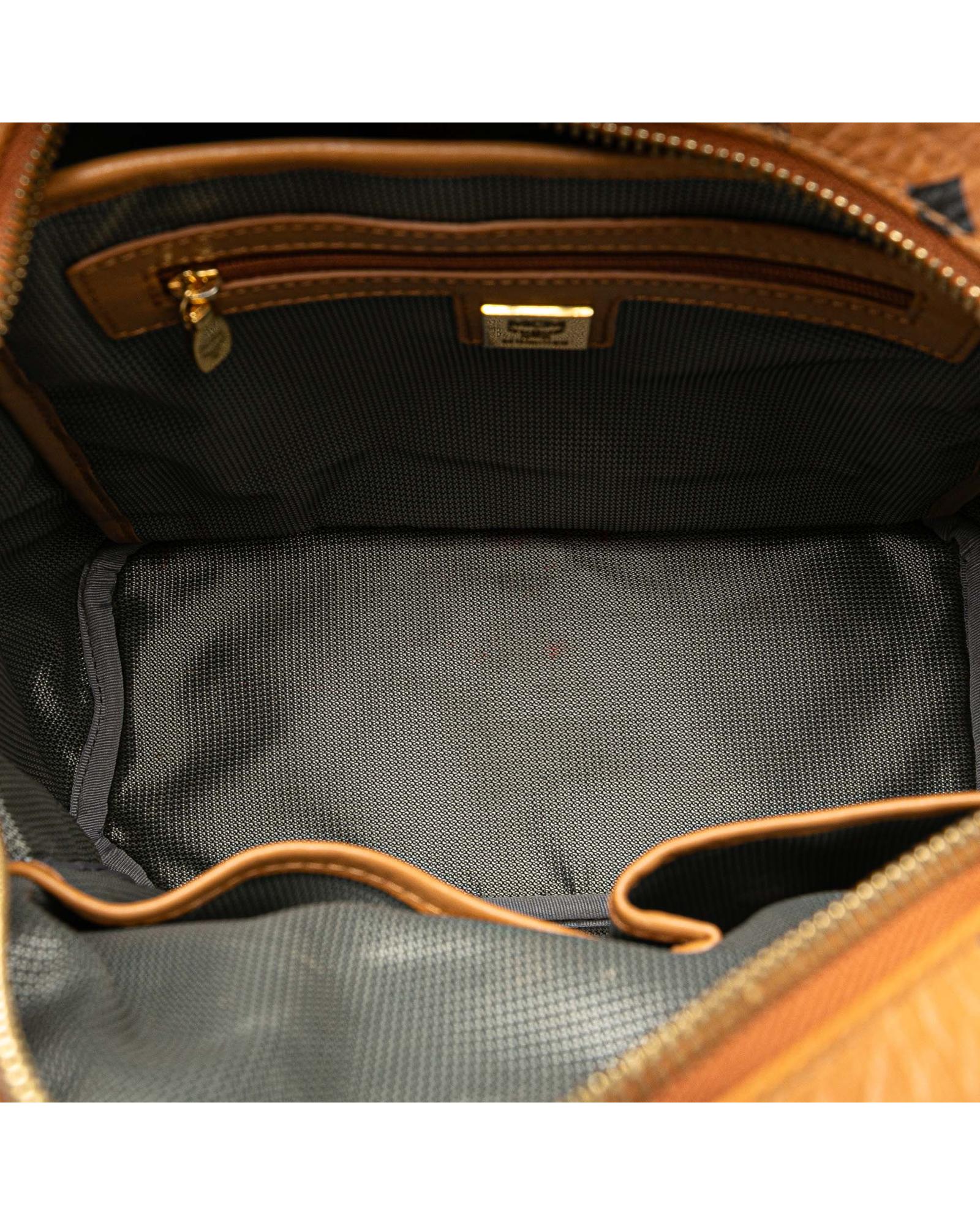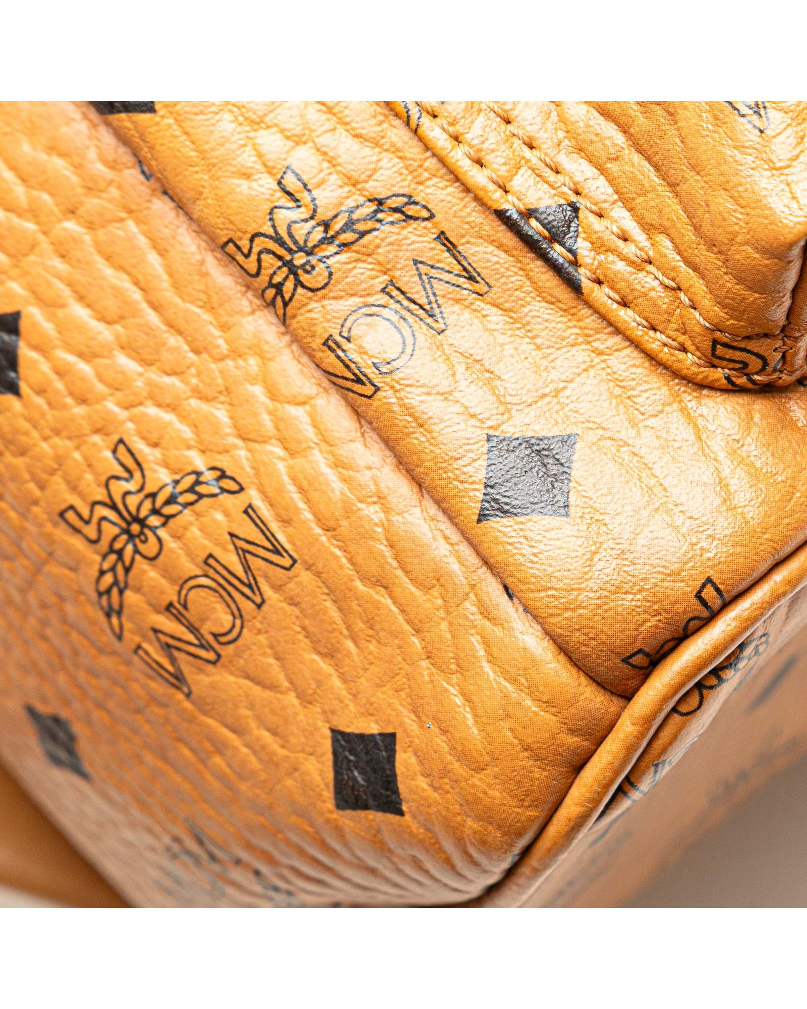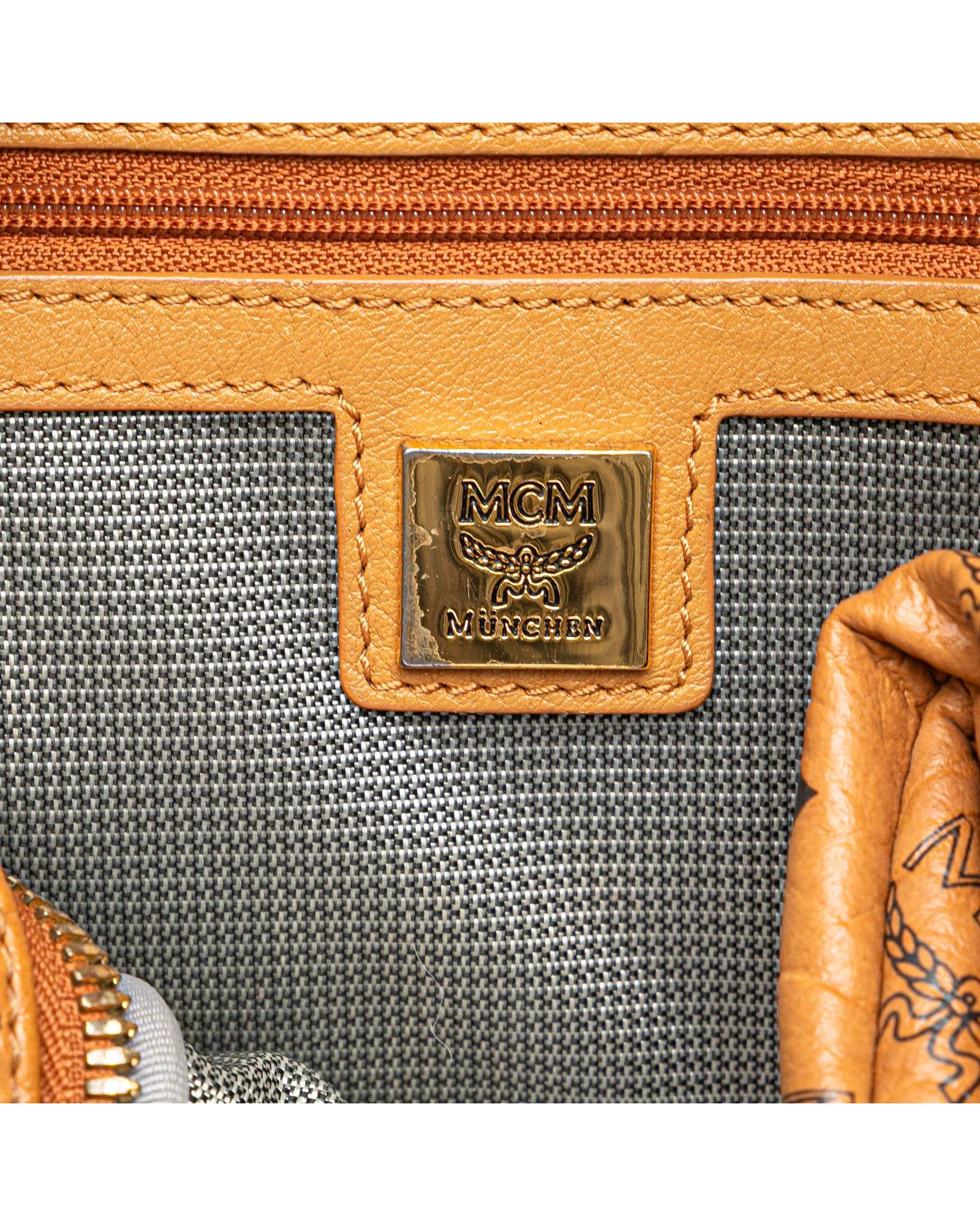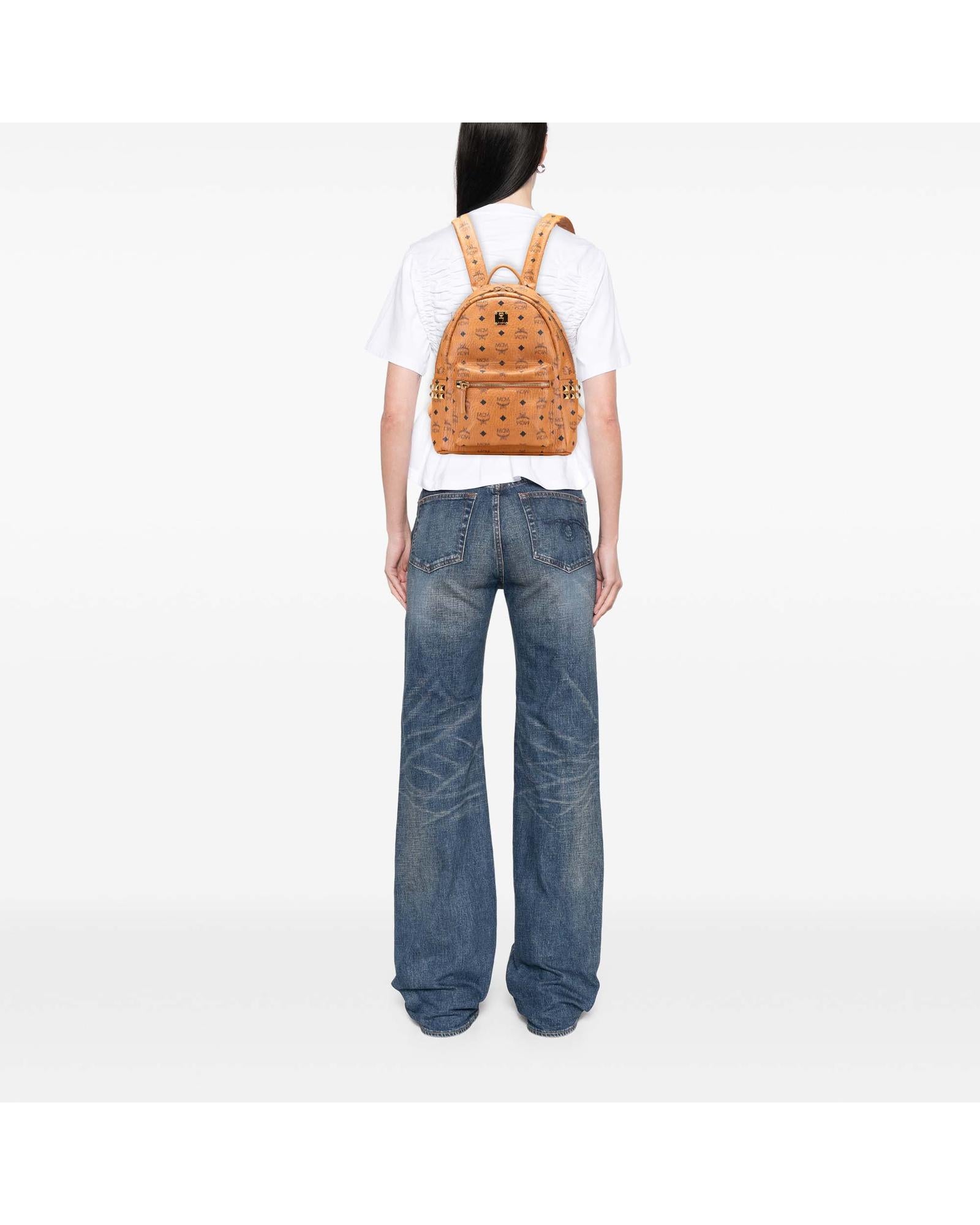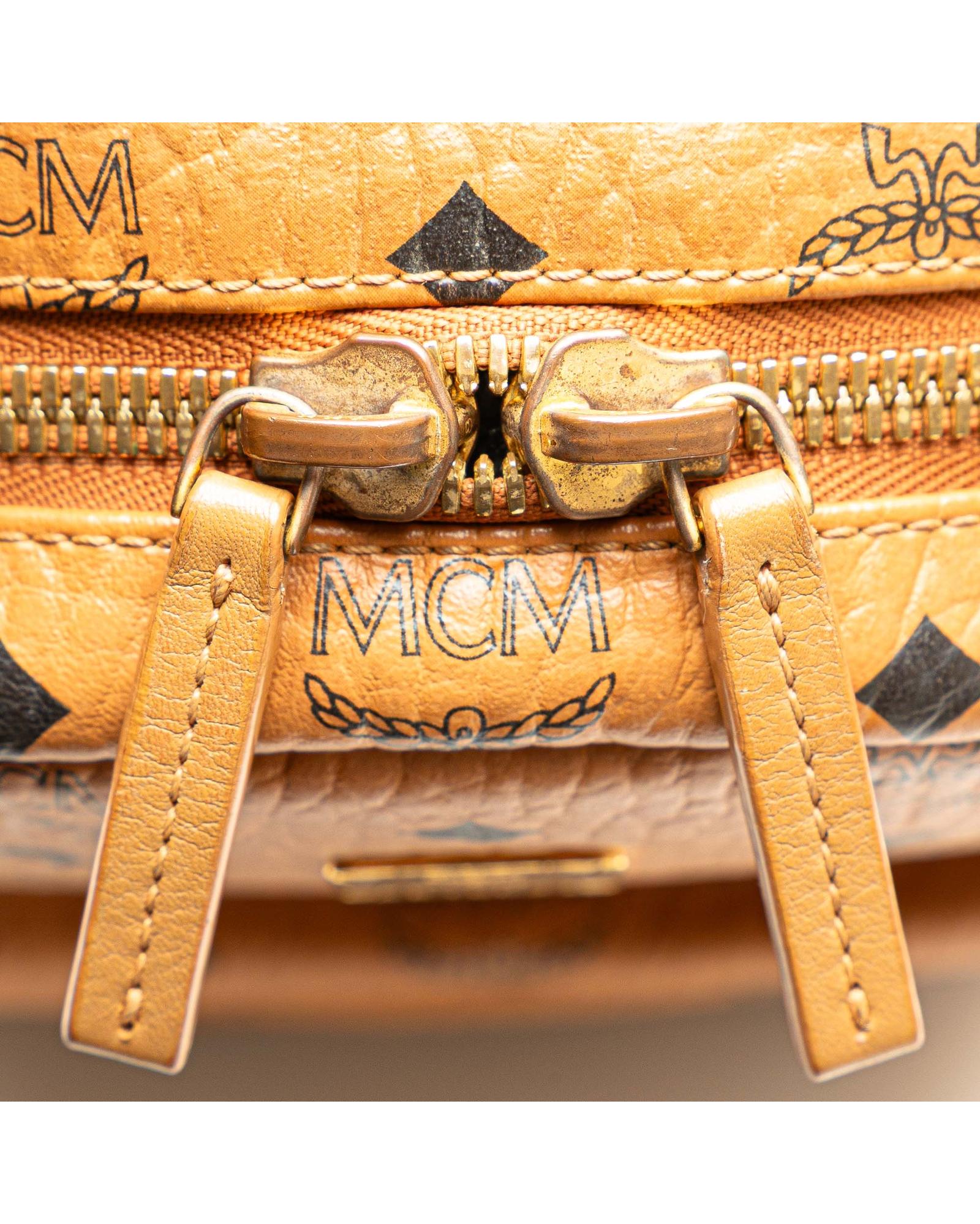 The Stark backpack features a coated canvas body a flat leather top handle adjustable flat back straps a top zip closure an exterior front zip pocket exterior side slip pockets and interior zip and slip pockets.Brand: MCM Vintage