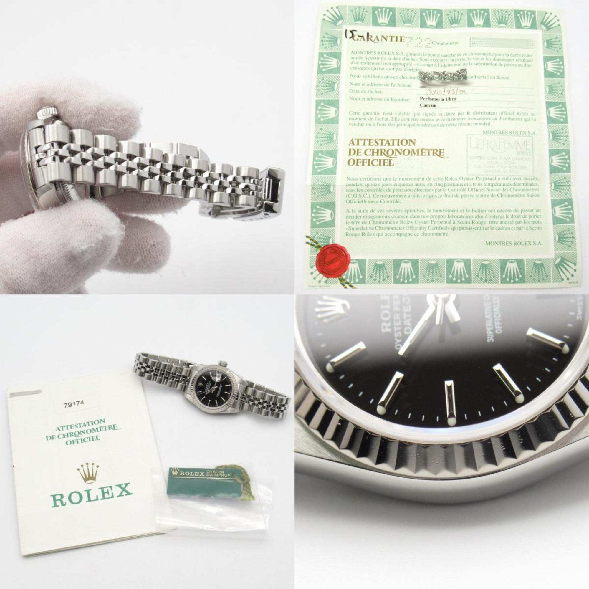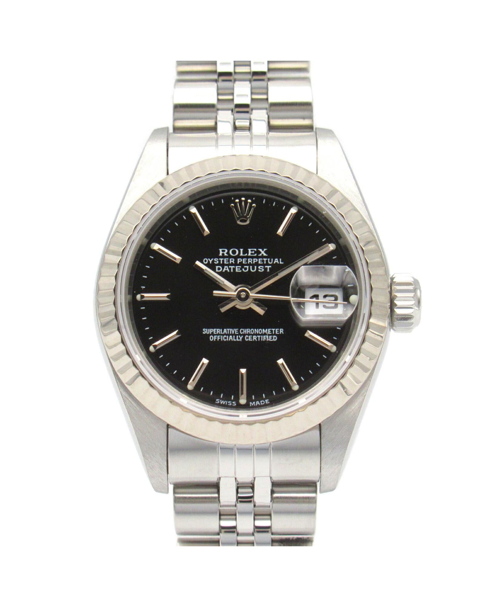 Brand: Rolex Model: Datejust Color: Black Material: Steel Inclusions: Guarantee card Dimensions: 26mm Serial number: None Country of origin: Switzerland Condition: AB - good condition. Dial condition : Scratches slightdeterioration Case condition : Scratches slight Bracelet condition : Scratches slight Clasp condition : Scratches slight Face cover condition : Scratches slight Other condition : Hand :Scratches slightdeterioration/Bezel and Crown: Scratches slight/Band: Stains/Maintenance :Polished