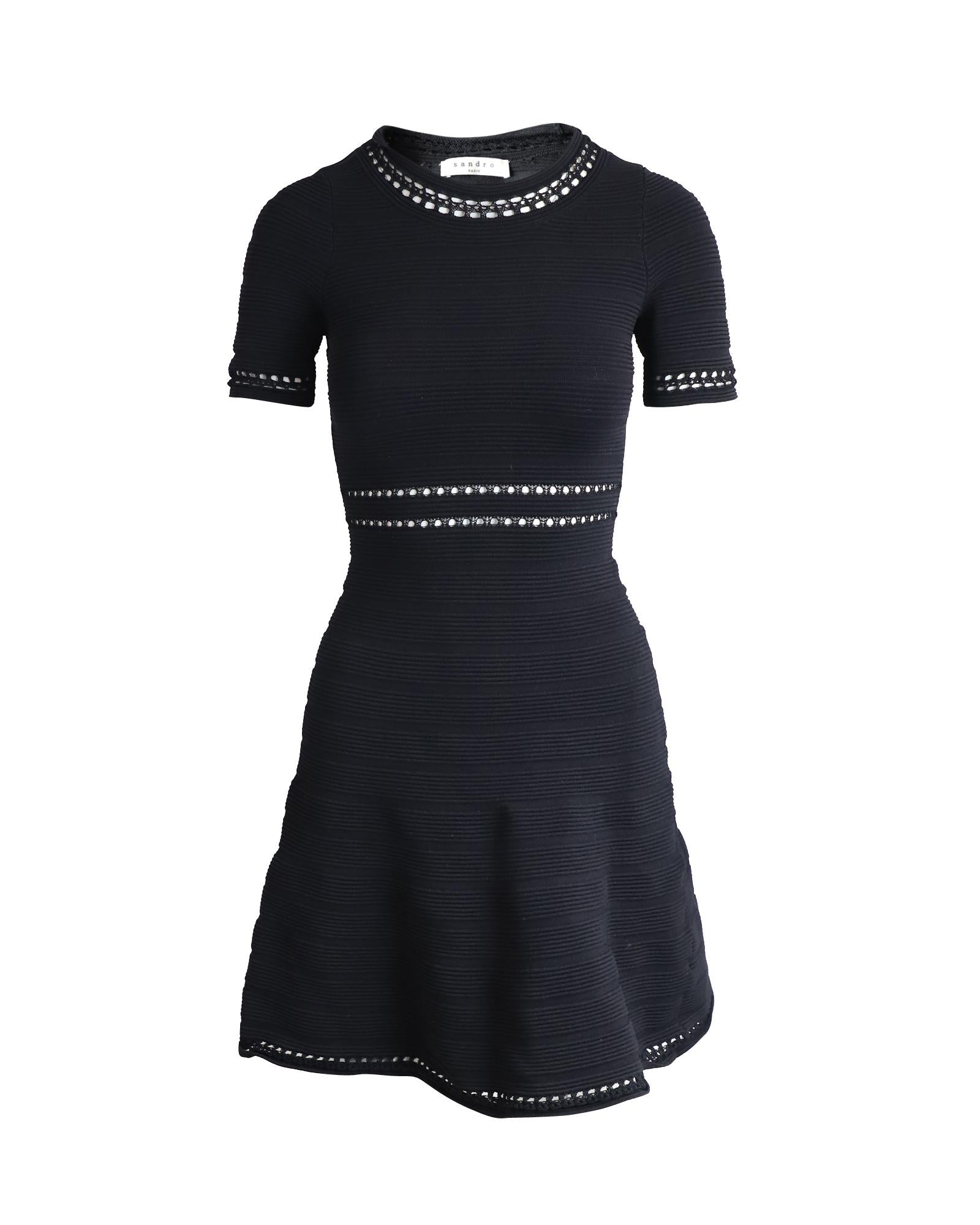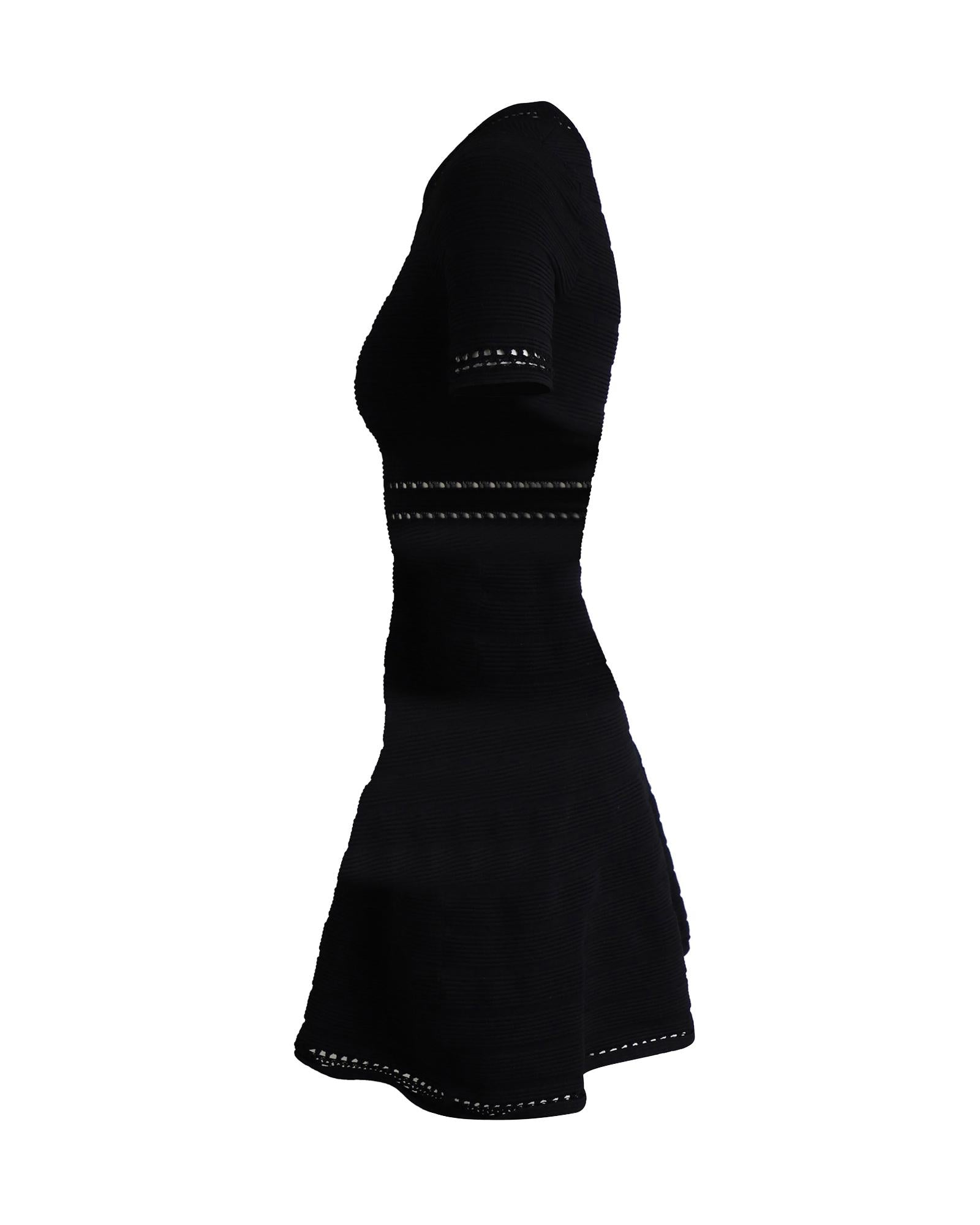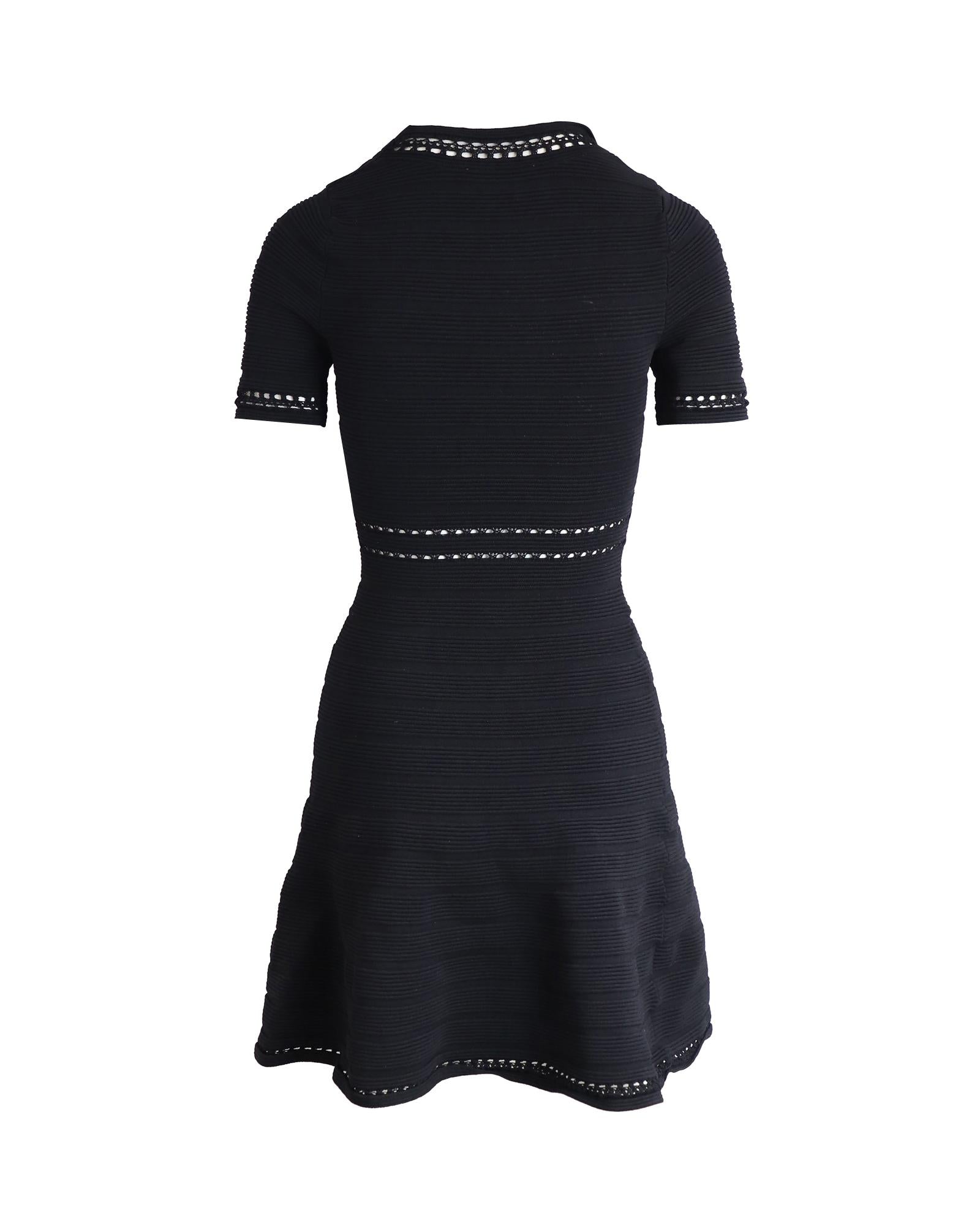 Pre-owned Ribbed Knit Mini Dress with Crochet Trim
