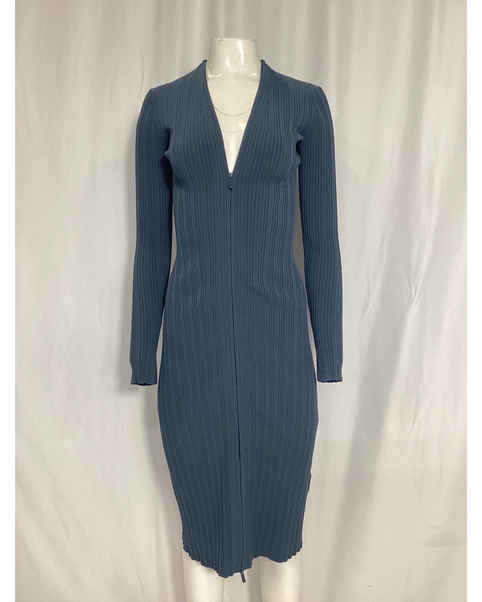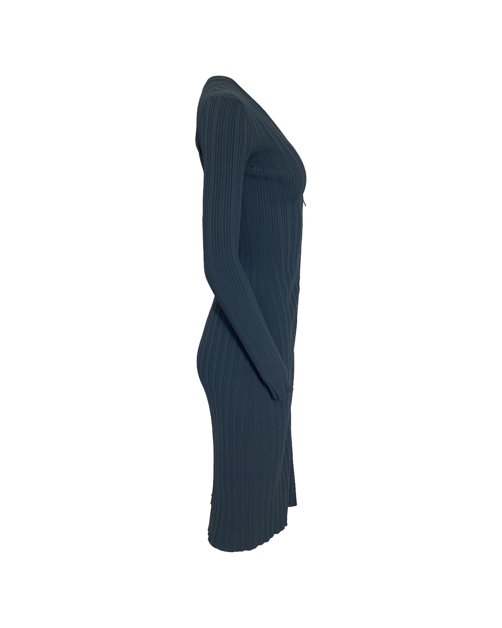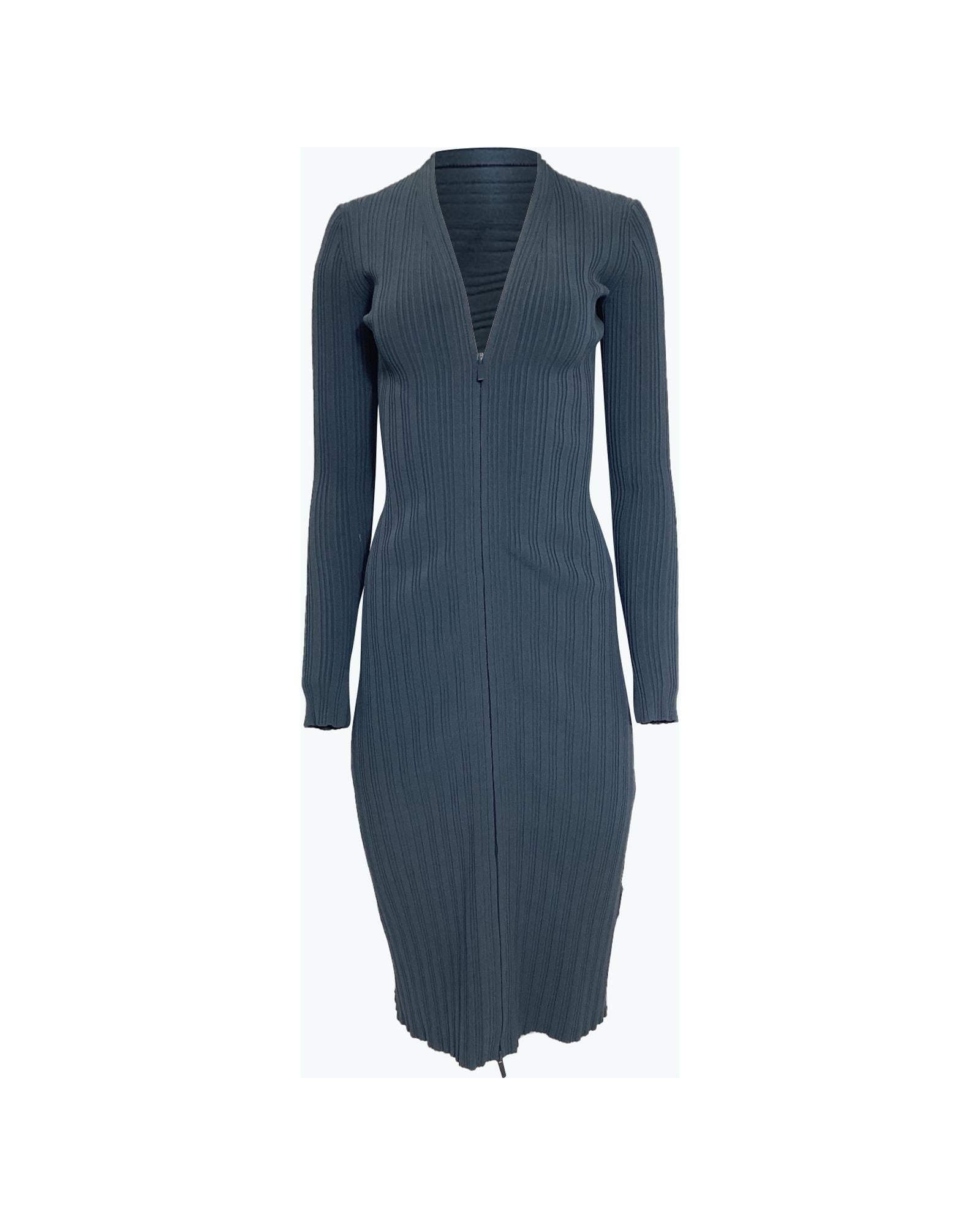 Ribbed Knit Midi Zip Dress