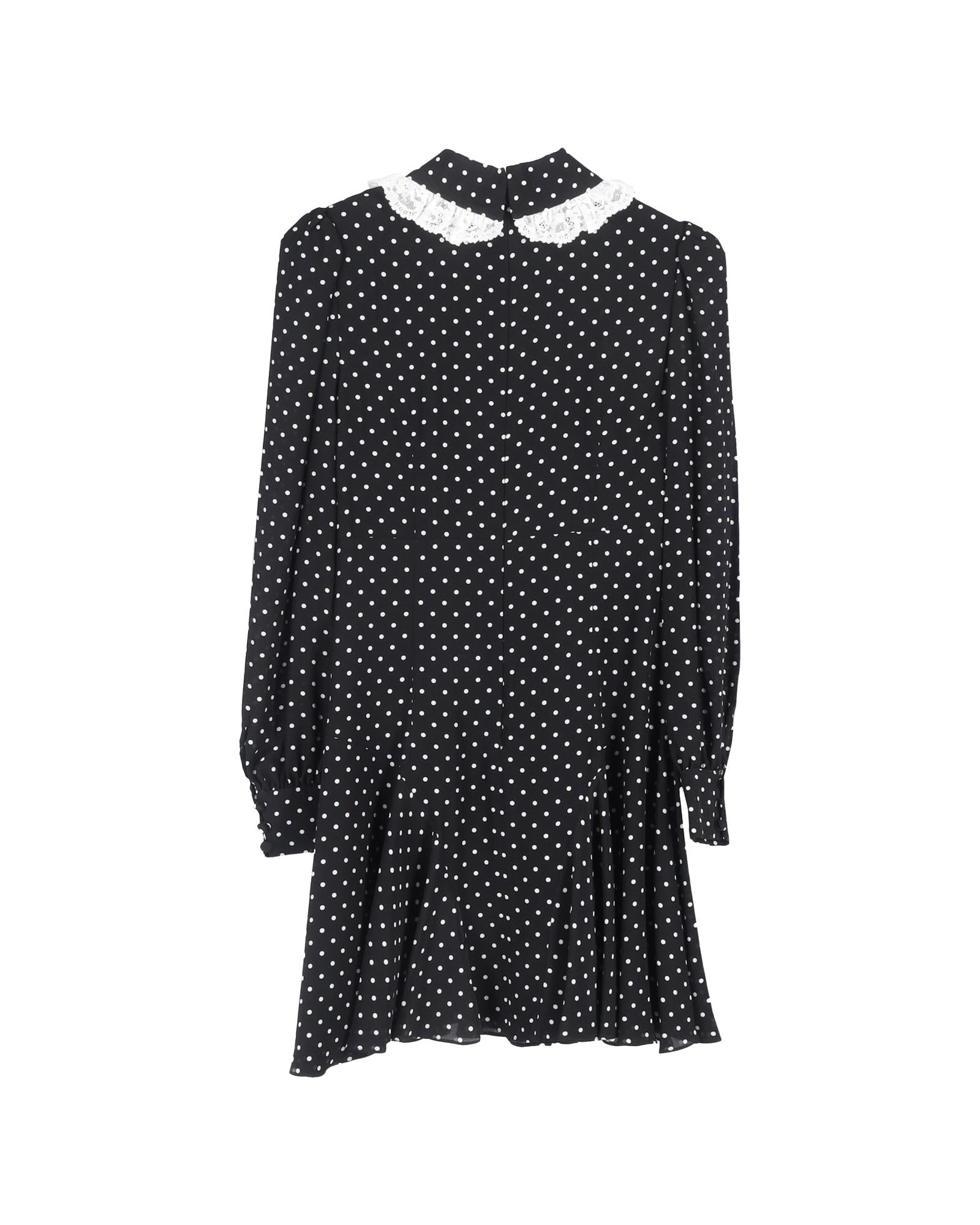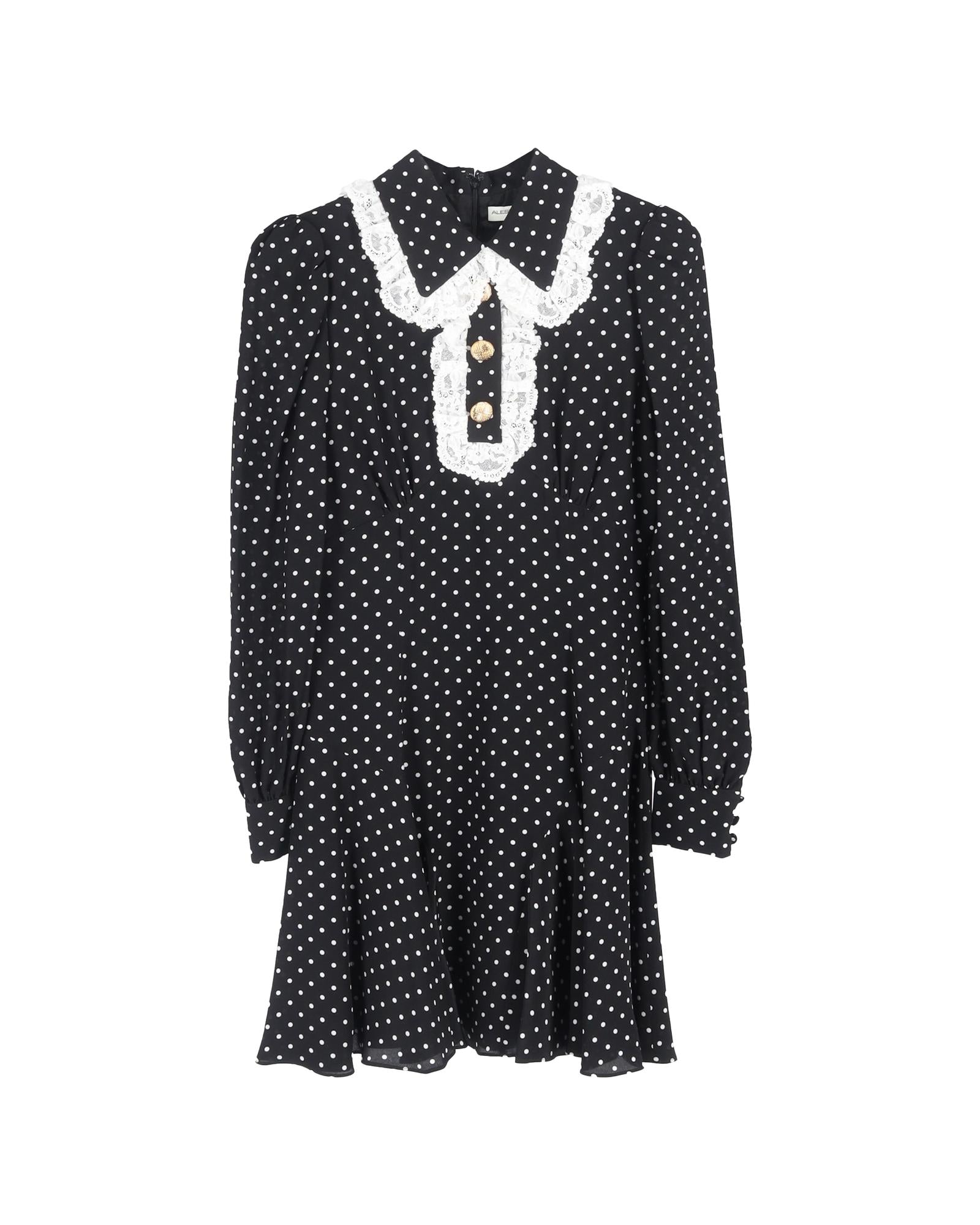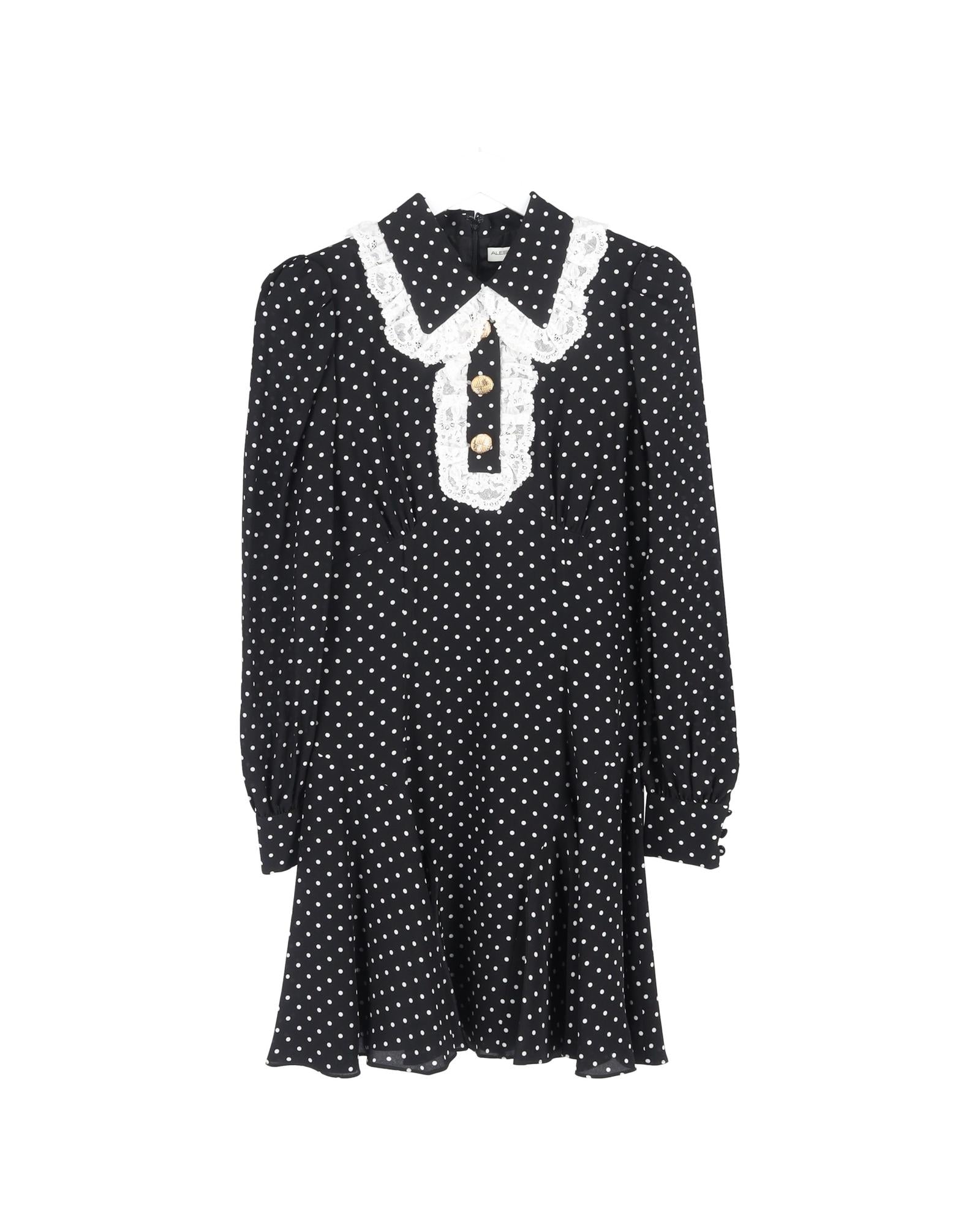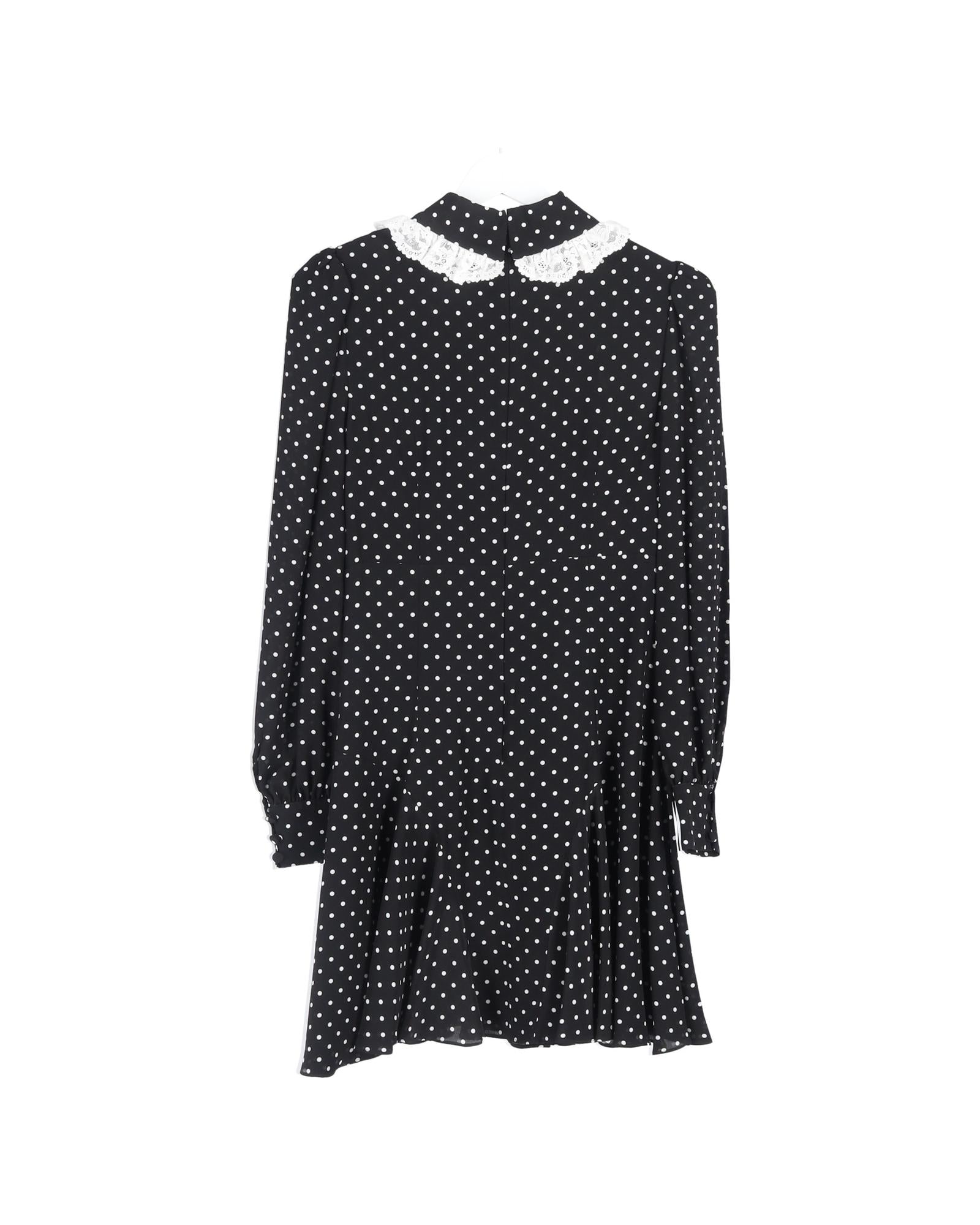 - Alessandra Rich Polka Dot Mini Long Sleeve Dress in Black Silk