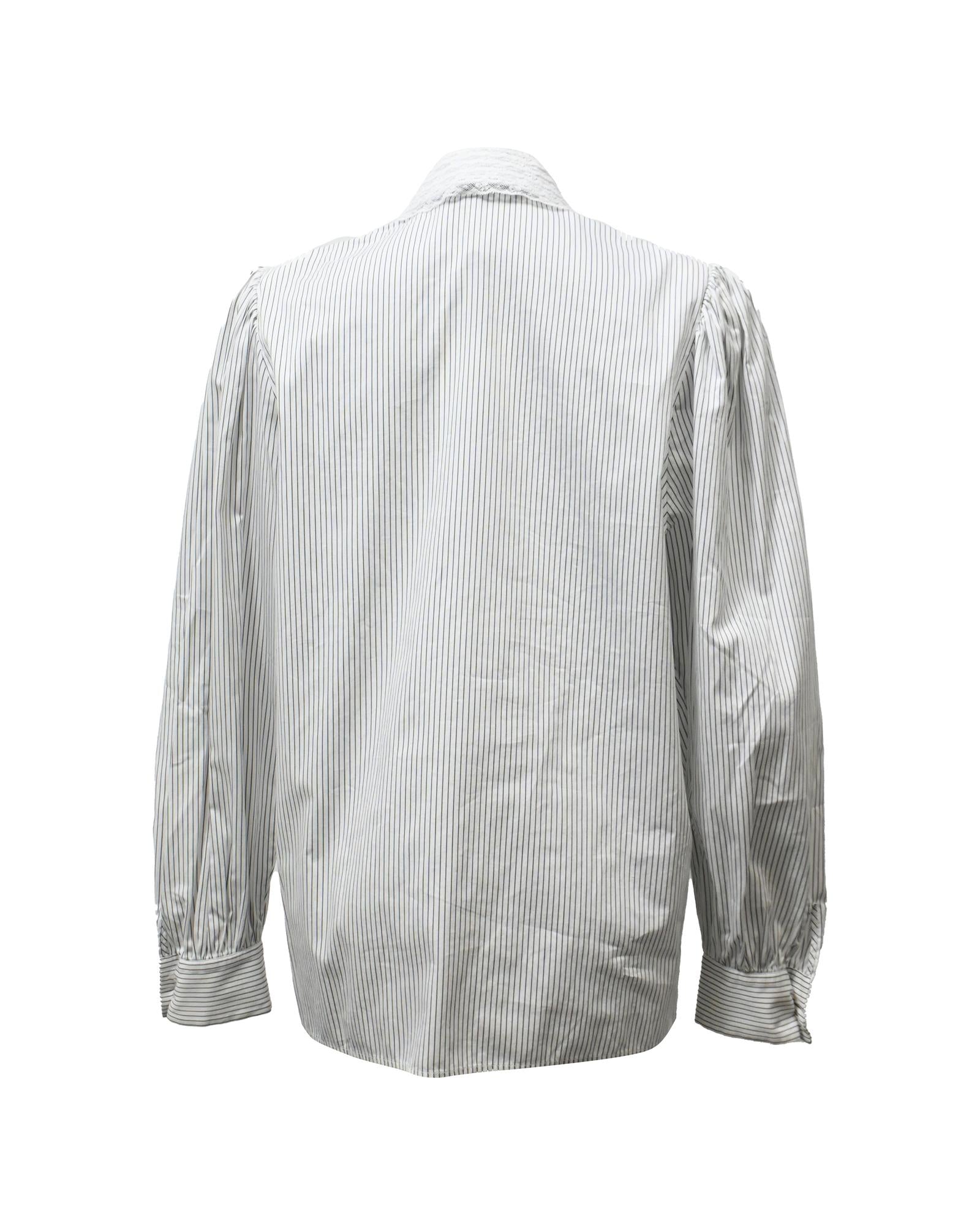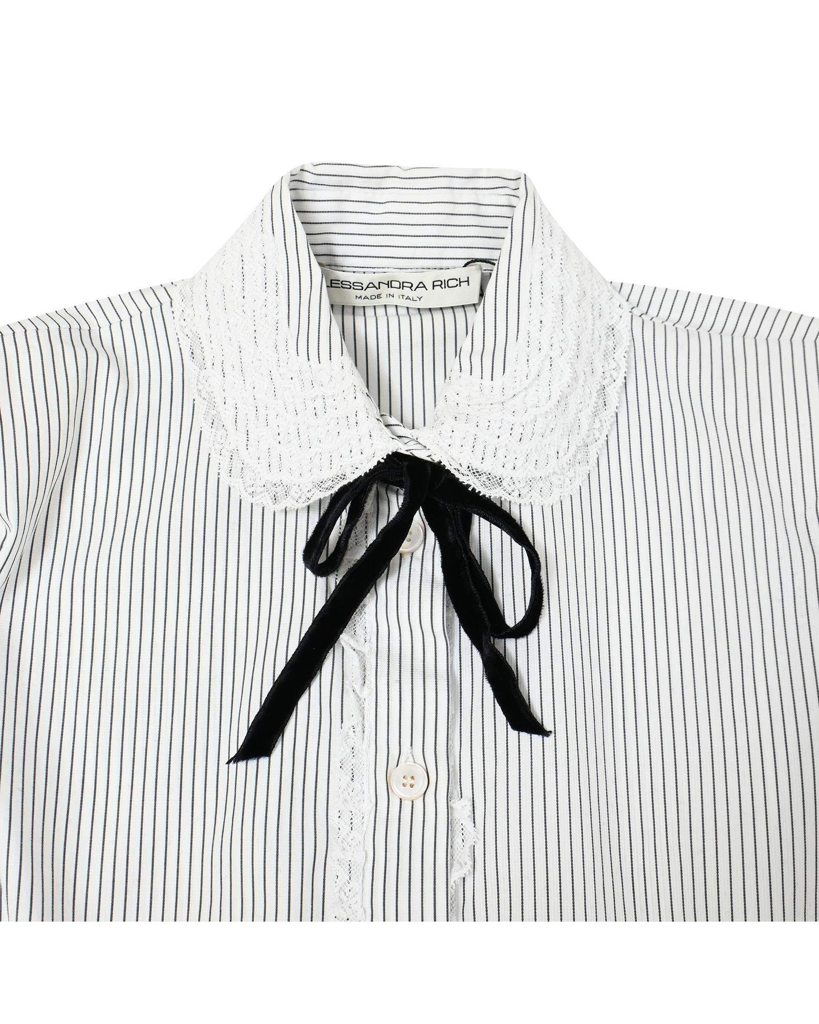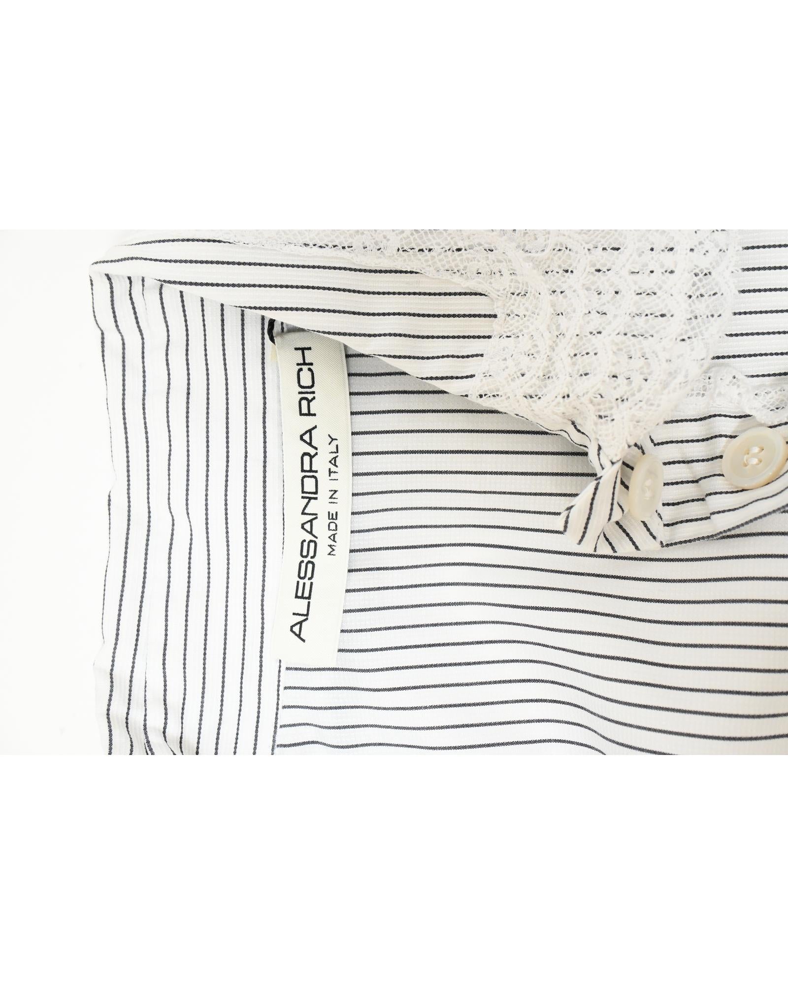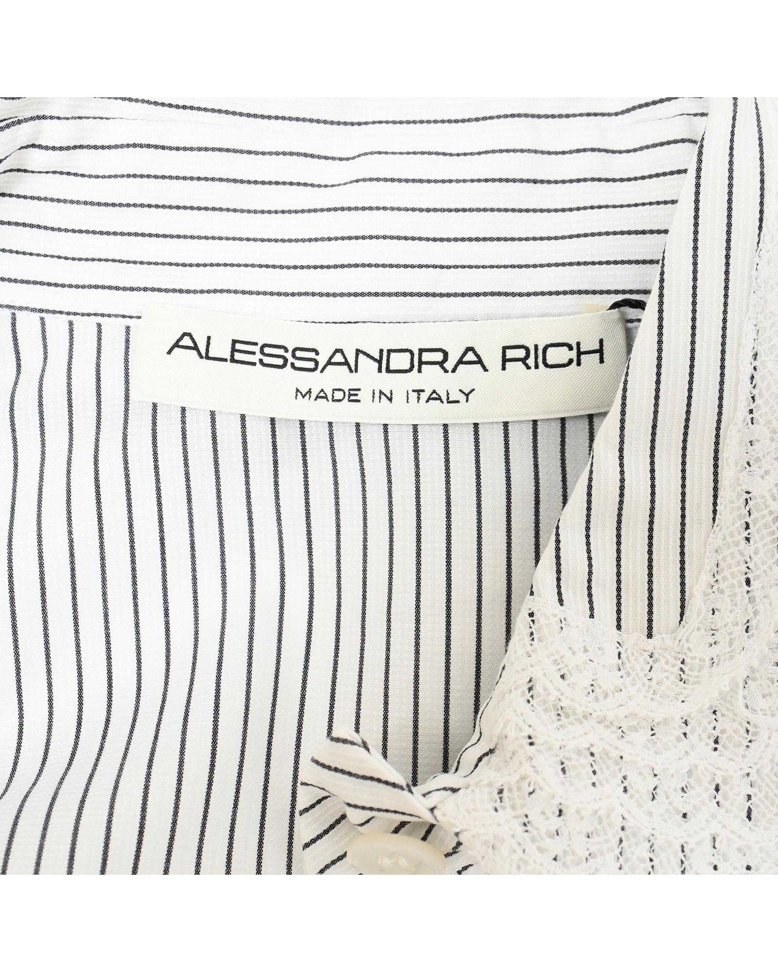 - Alessandra Rich Striped Lace Trimmed Blouse in White Cotton