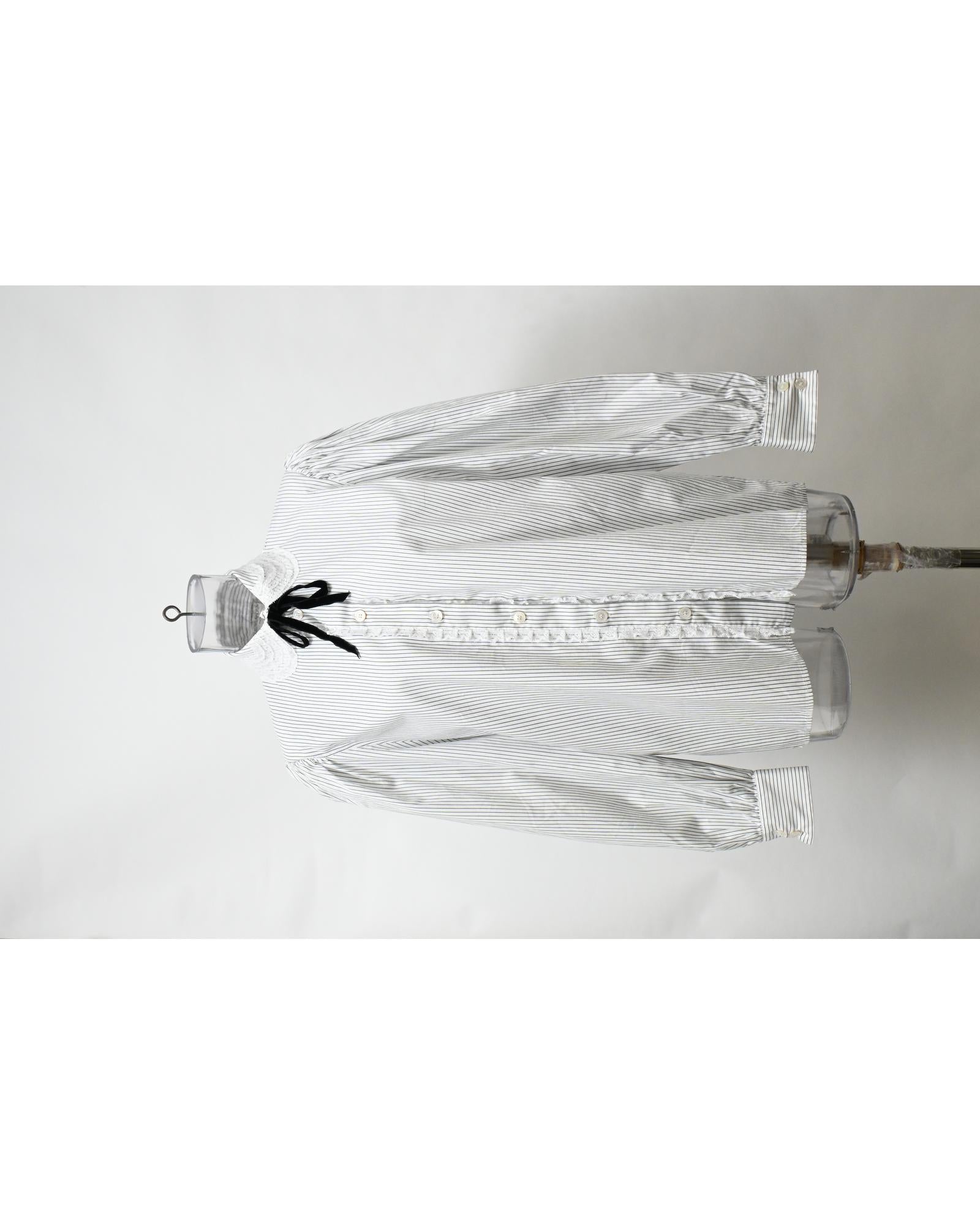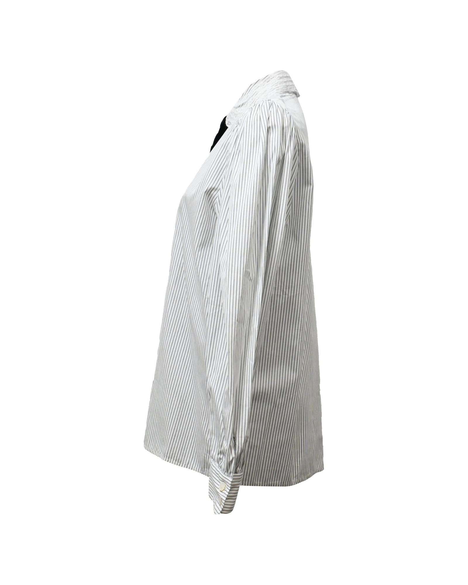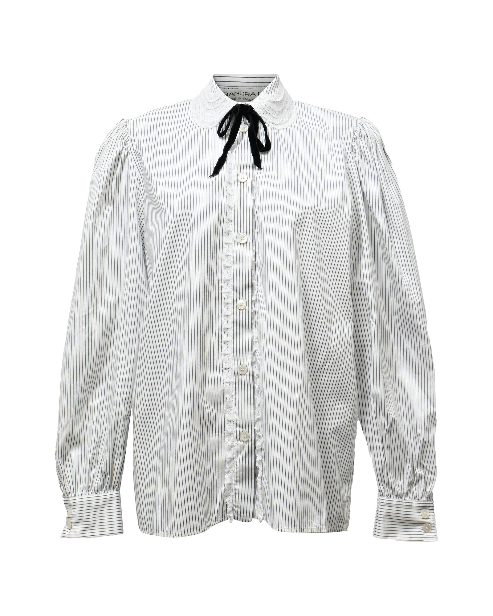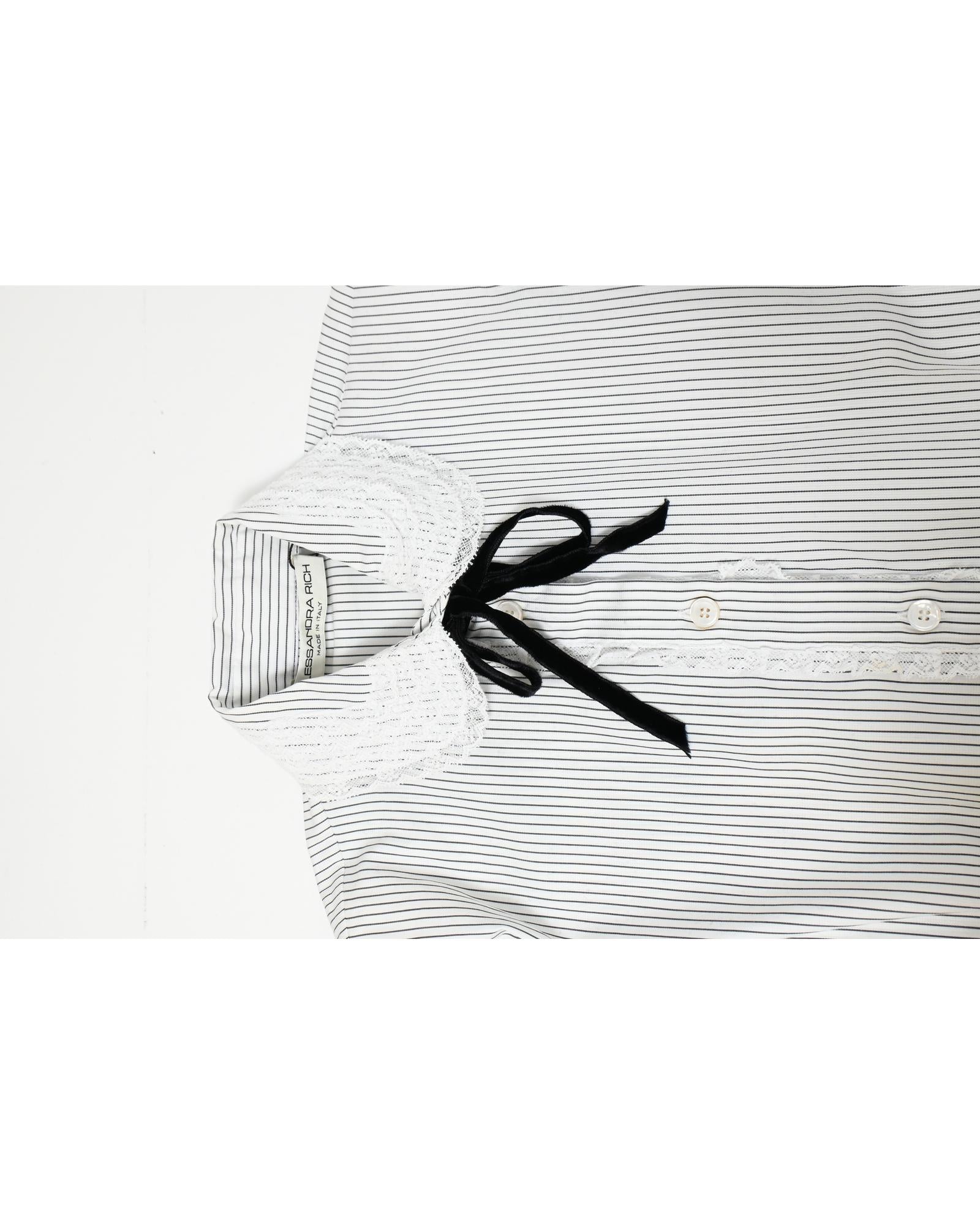 - Alessandra Rich Striped Lace Trimmed Blouse in White Cotton