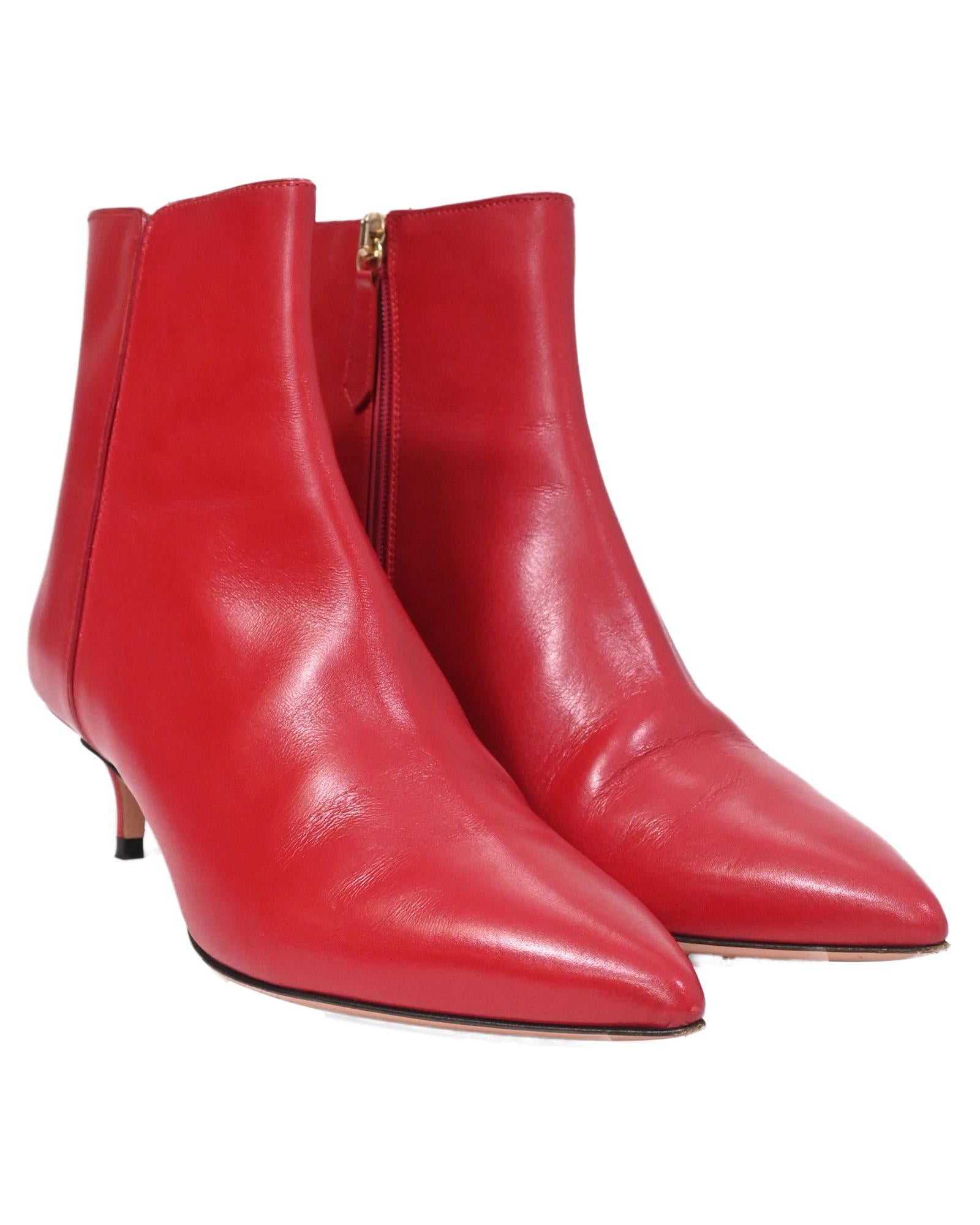 - Altuzarra Quant Kitten Heel Ankle Boots in Red Leather