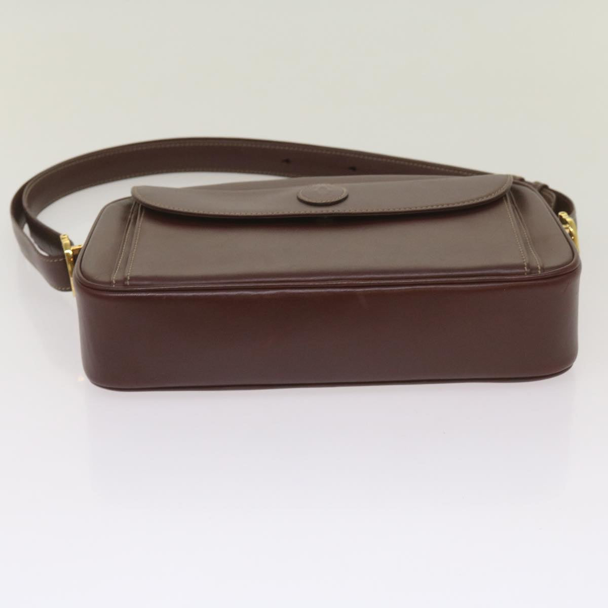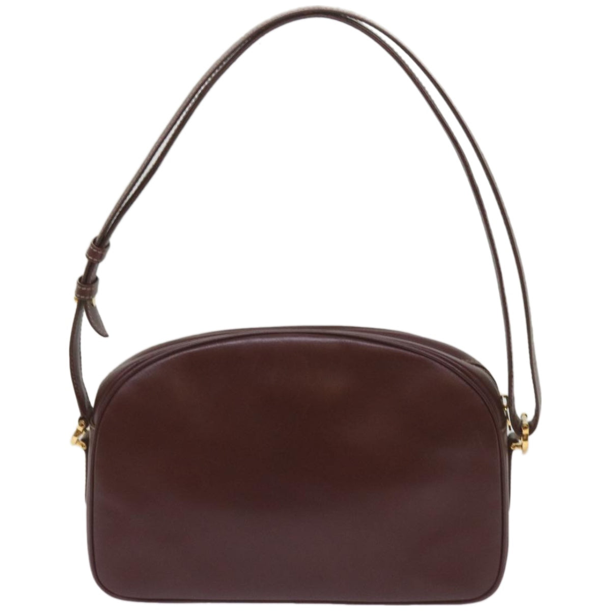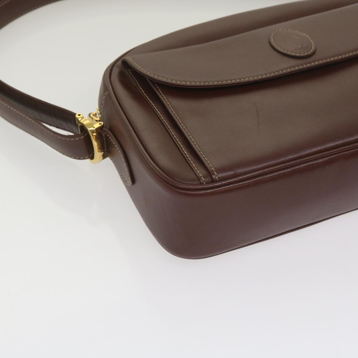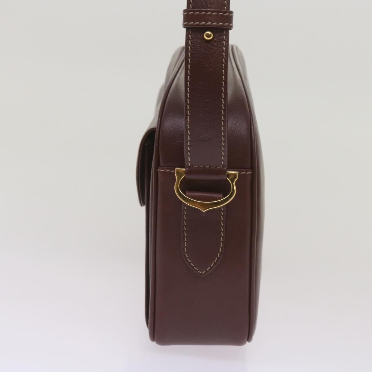 This CARTIER shoulder bag from the Must de Cartier line features a rich wine red color and is crafted from luxurious leather material. The bag exudes elegance and sophistication with its classic design and attention to detail.