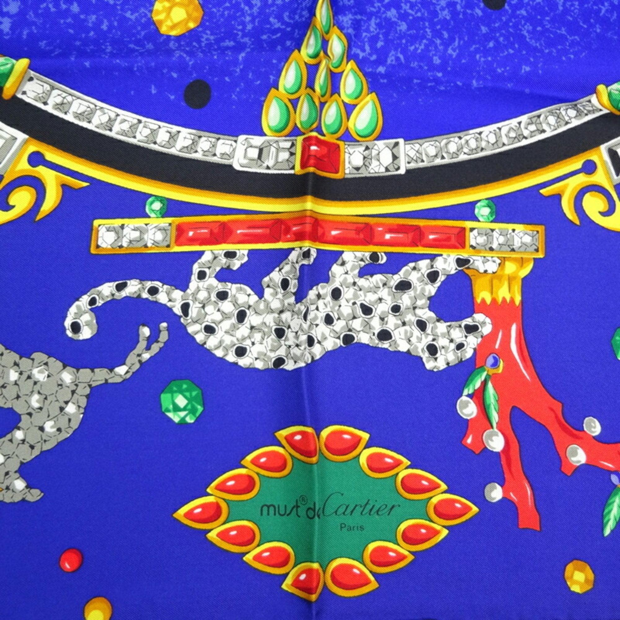 The Cartier "Must Line" scarf is a luxurious accessory designed to elevate any woman's attire. Crafted from 100% silk in a timeless blue hue it exudes sophistication and elegance.