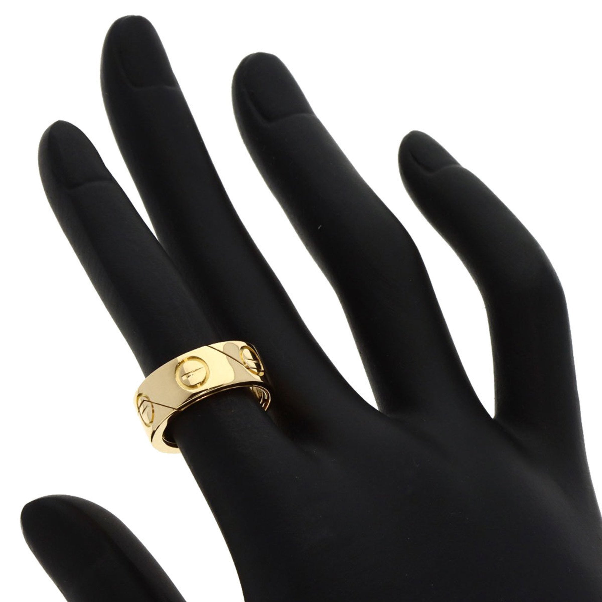 The Cartier Love band ring celebrated as an emblematic piece in the brand's repertoire exudes timeless elegance and sophistication. Crafted from luxurious 18K yellow gold this exquisite accessory is designed for women seeking both style and substance.