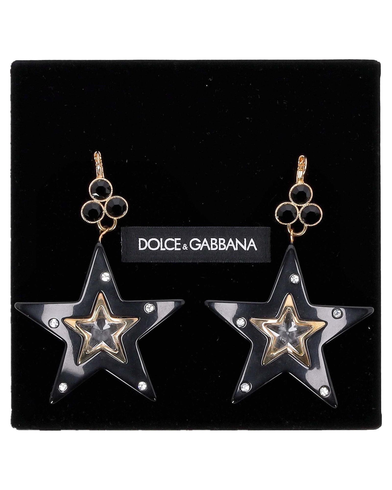 - Dolce & Gabbana Stelle Drop Earrings in Black and Gold Resin