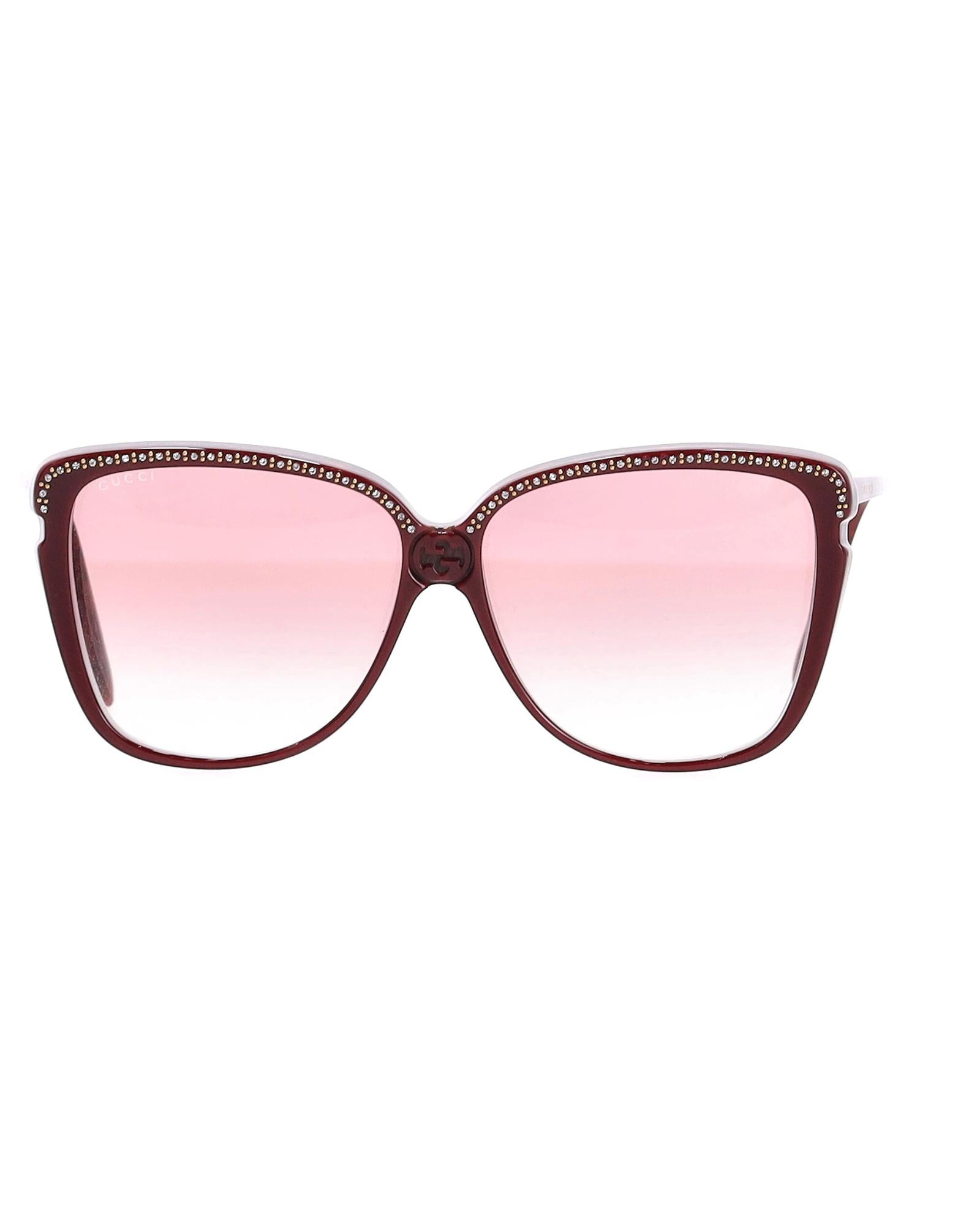 - Gucci Embellished Oversized Sunglasses in Burgundy Acetate