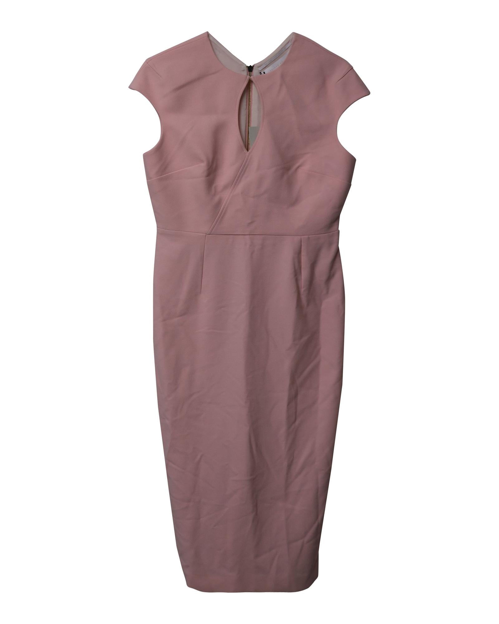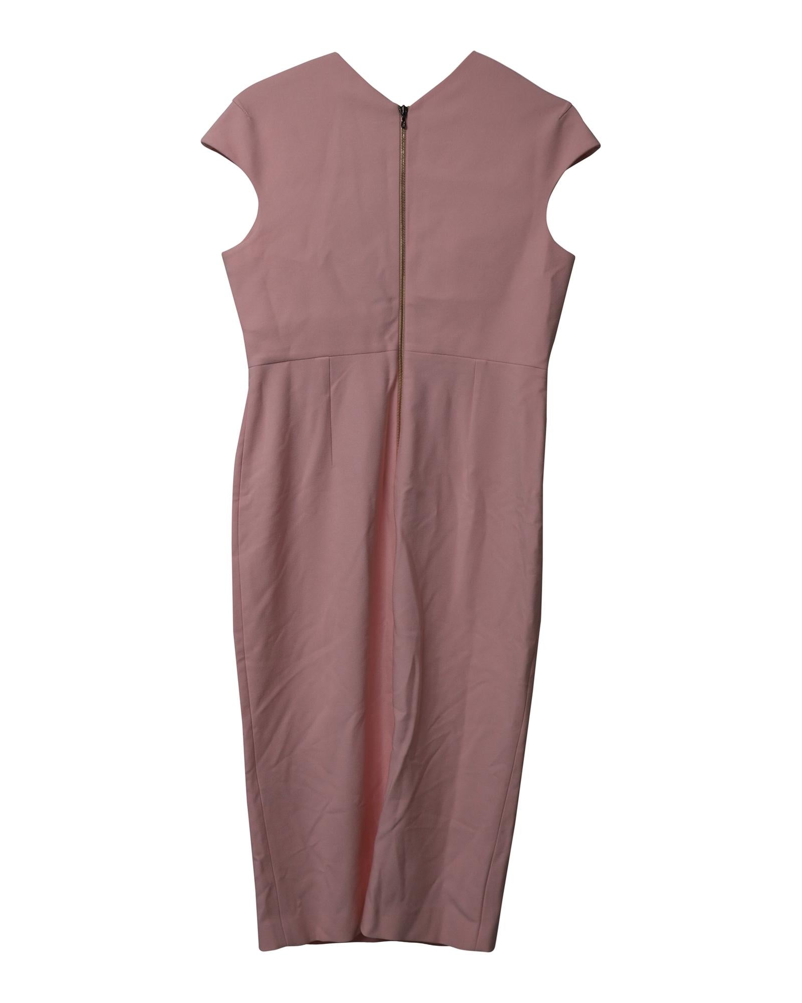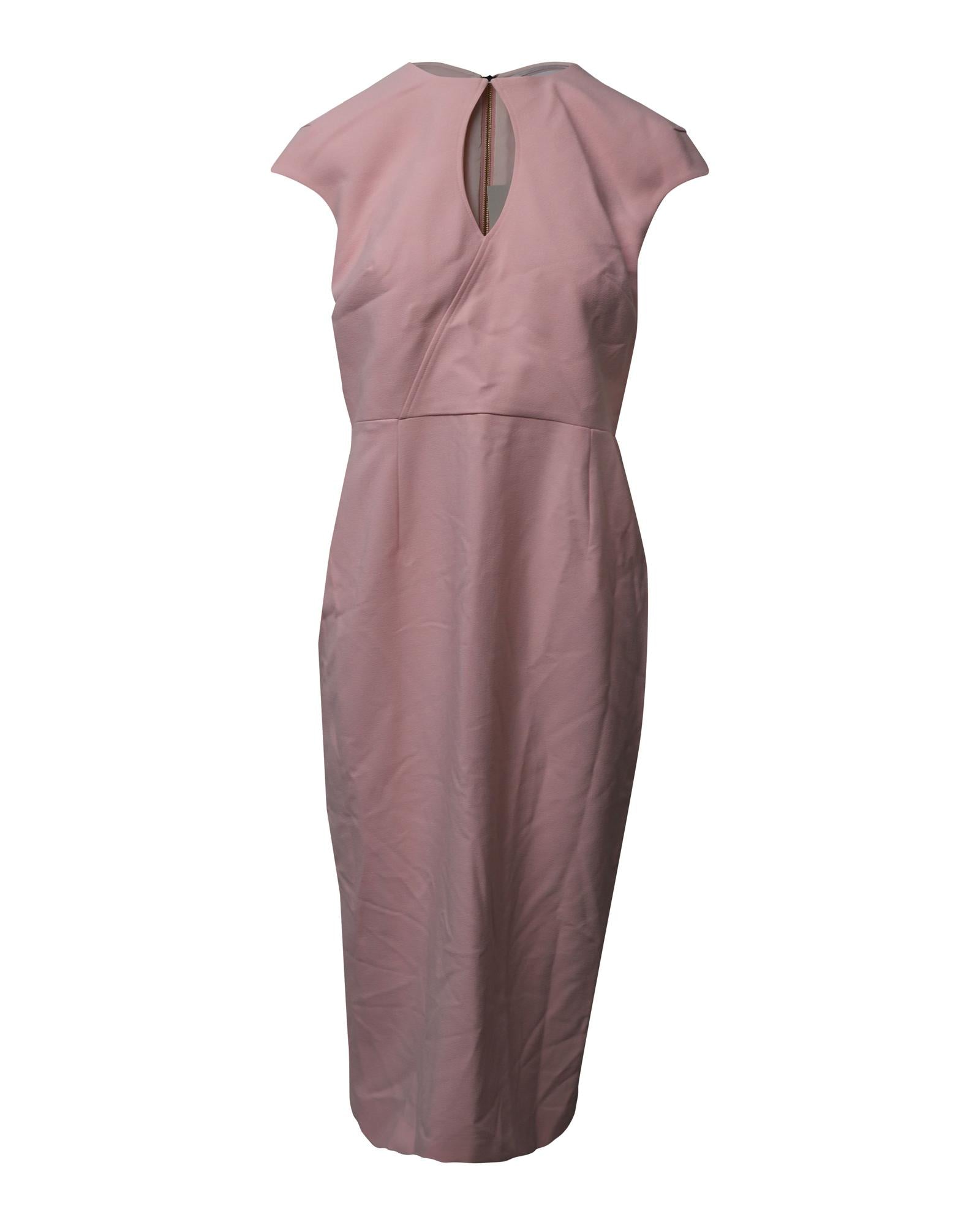 - Powder pink sheath dress with keyhole detail on the neckline