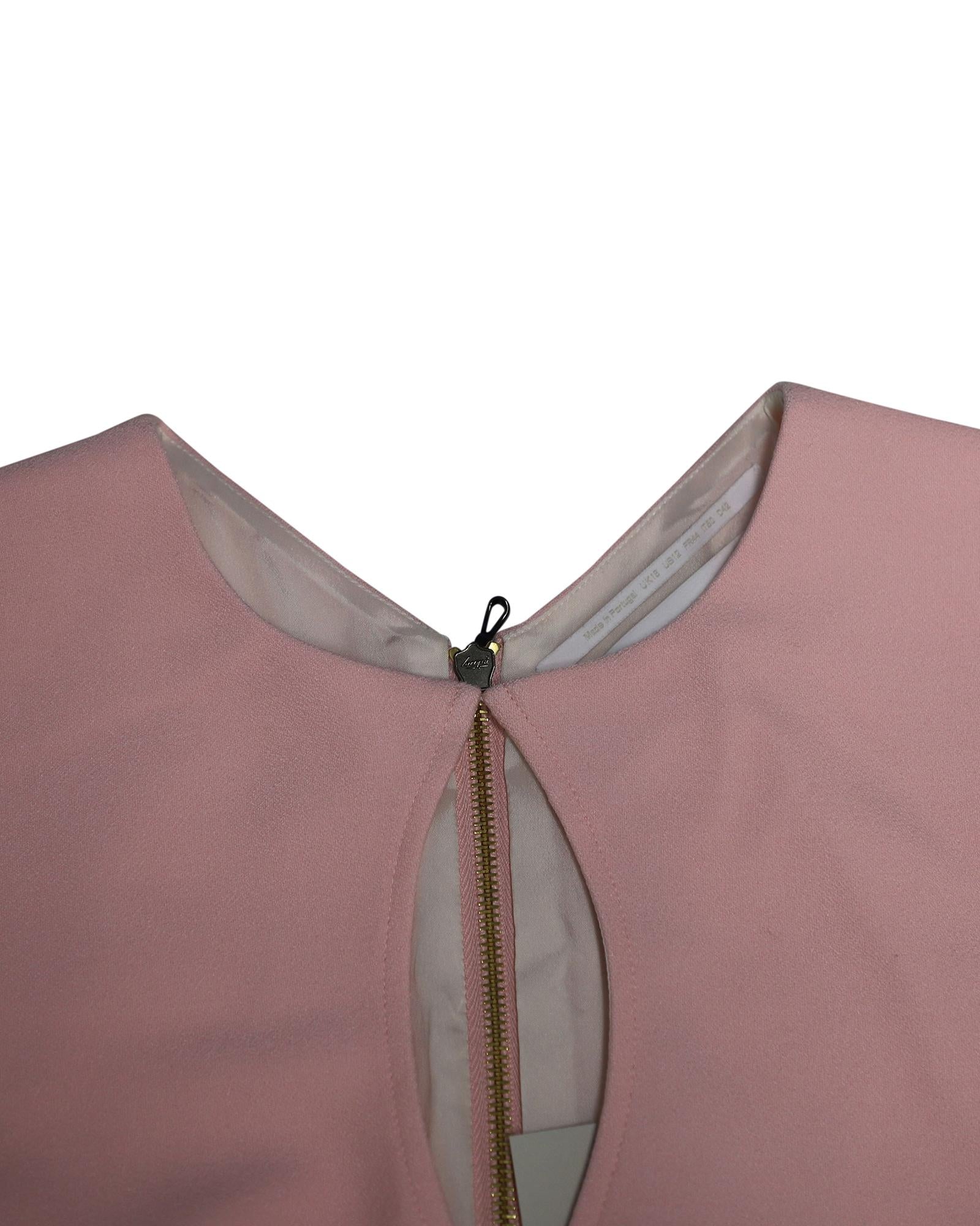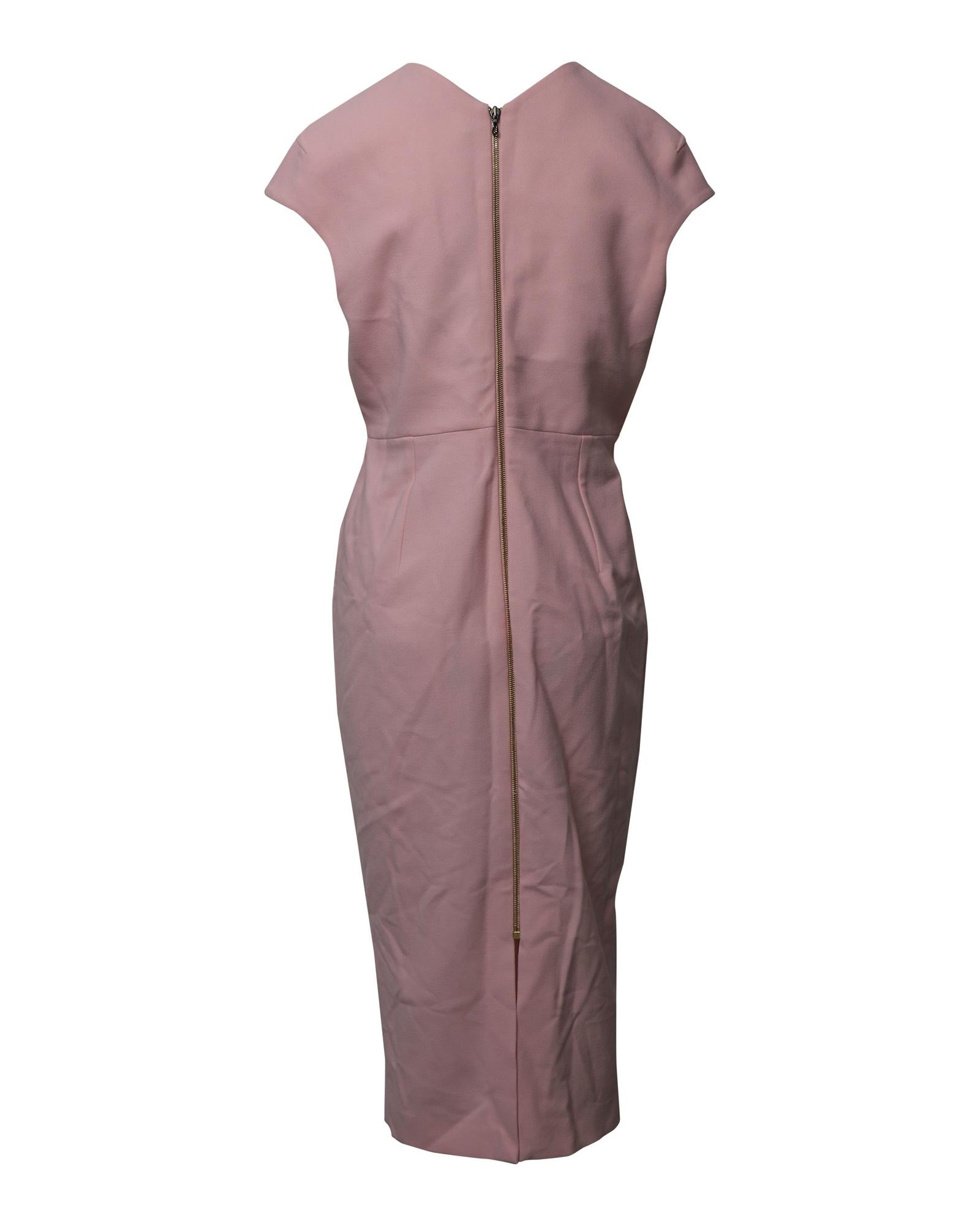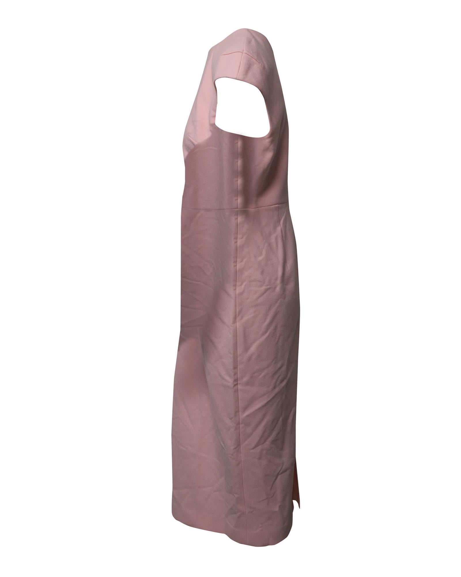 - Powder pink sheath dress with keyhole detail on the neckline