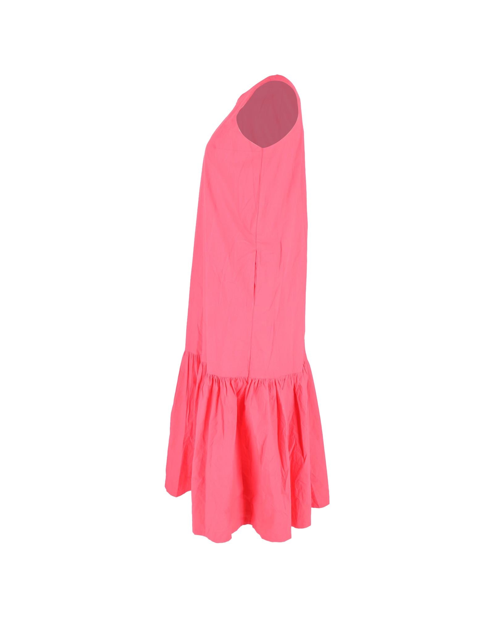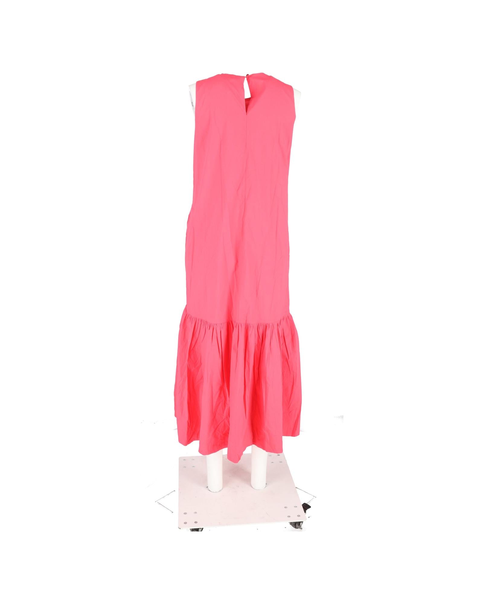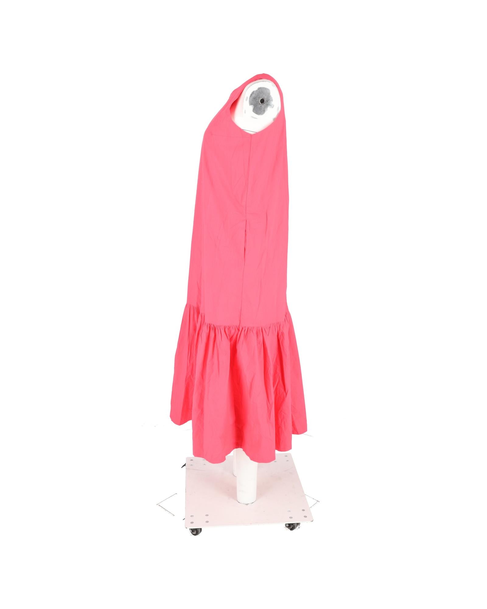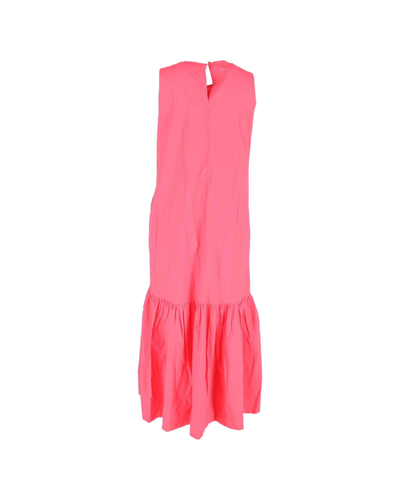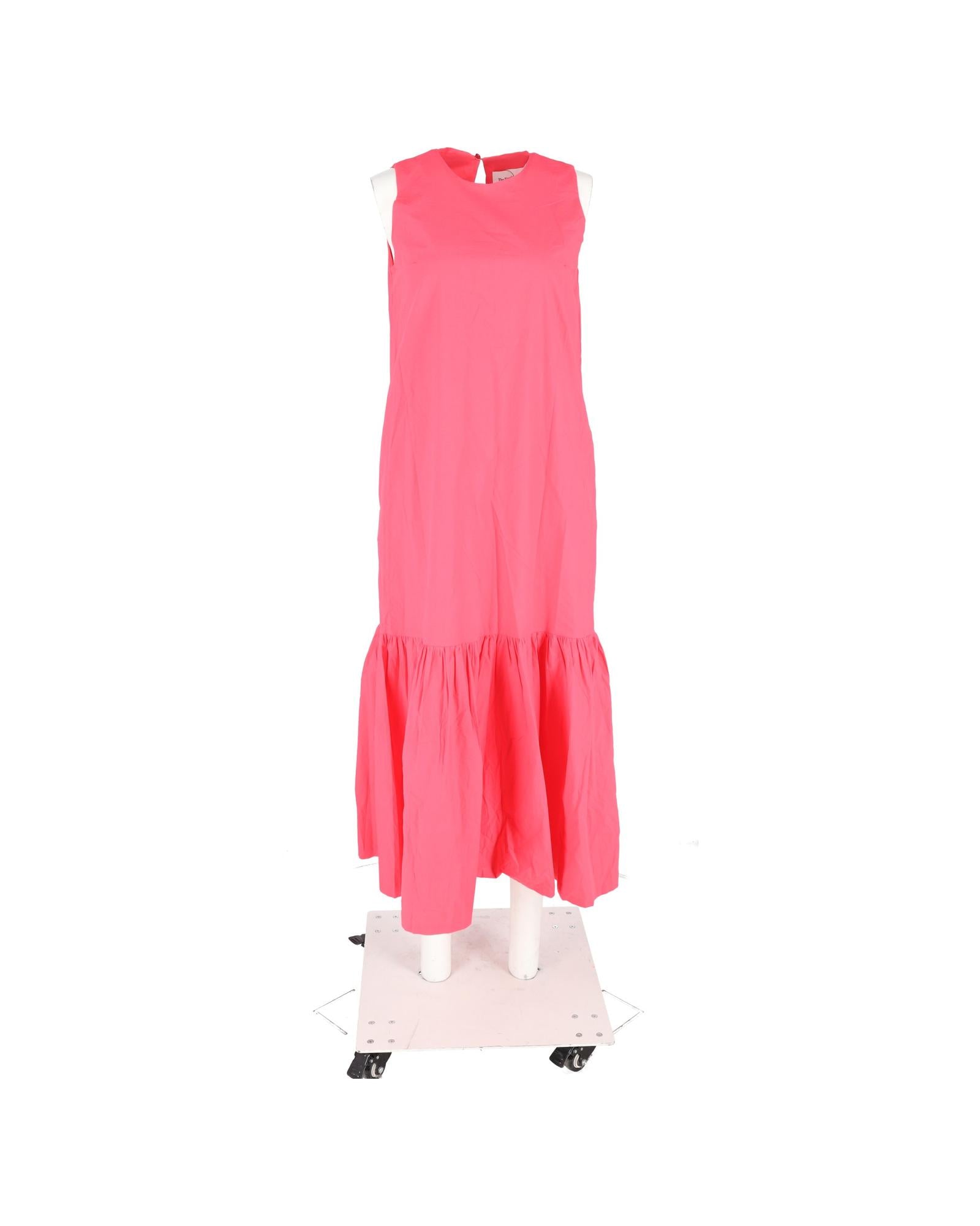 - The Frankie Shop Gathered Midi Sleeveless Dress in Pink Cotton