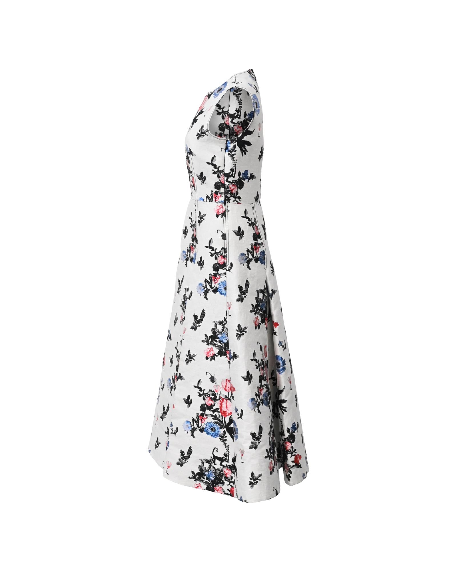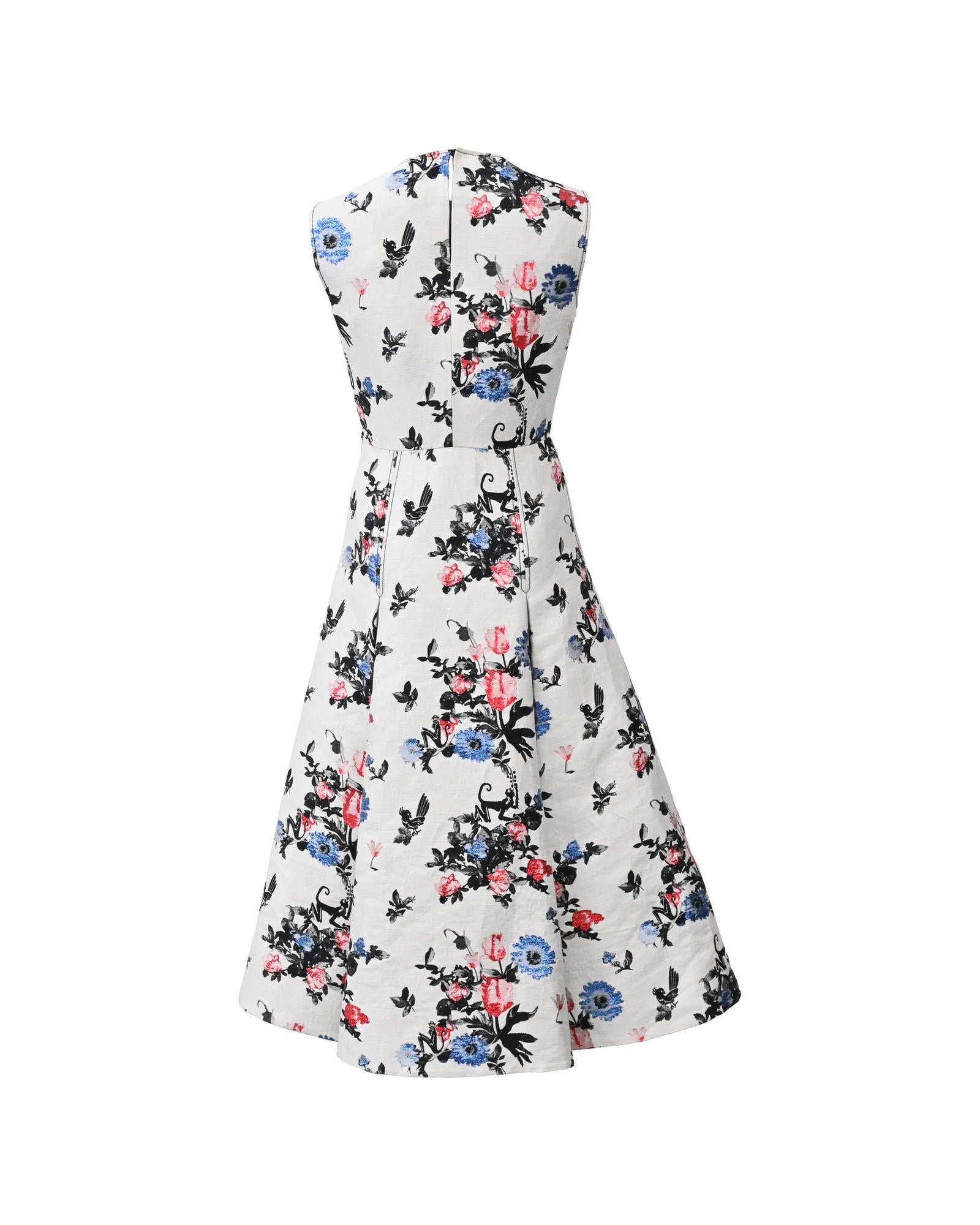 Pre-owned Floral Print Sleeveless A-Line Dress with Round Neck