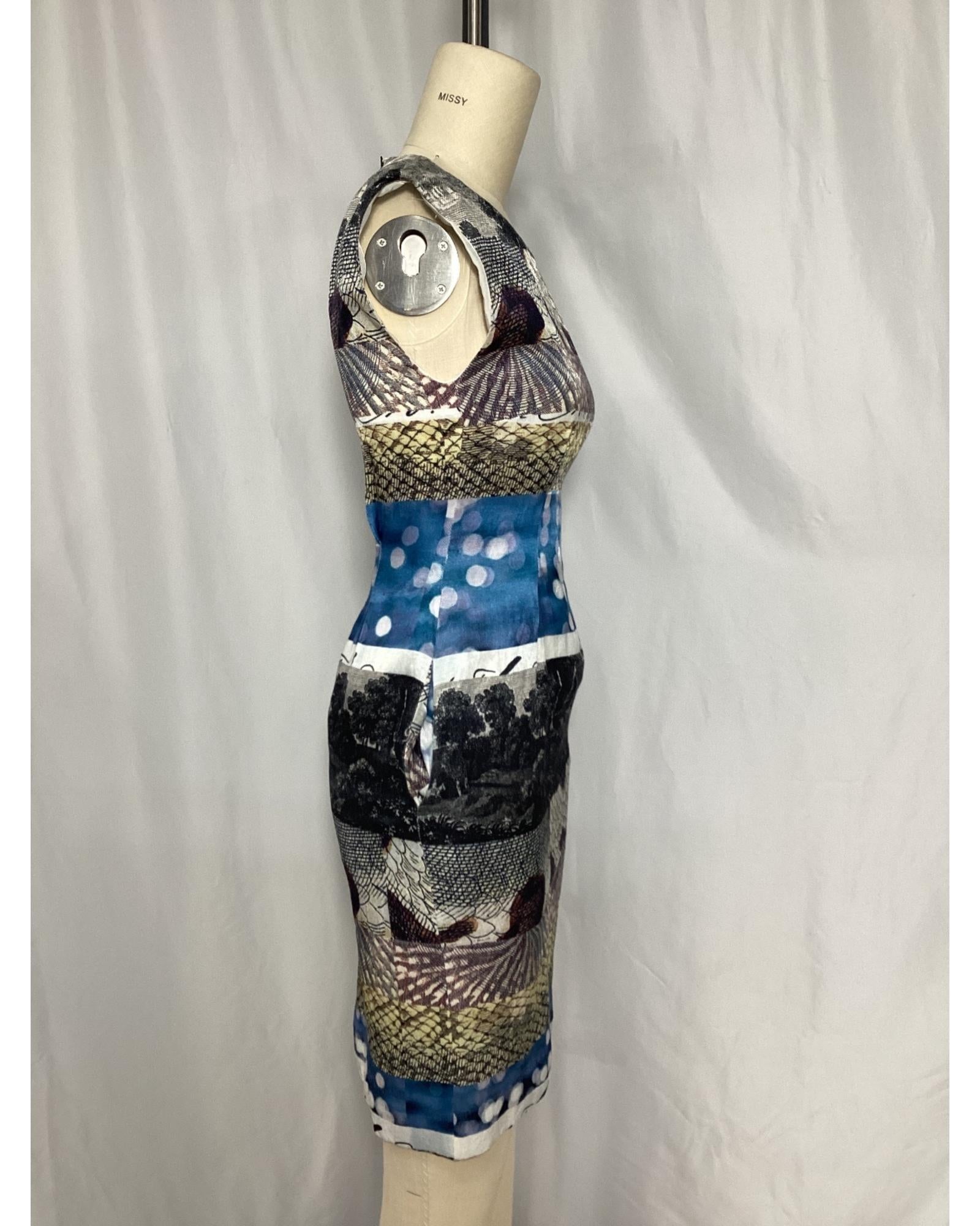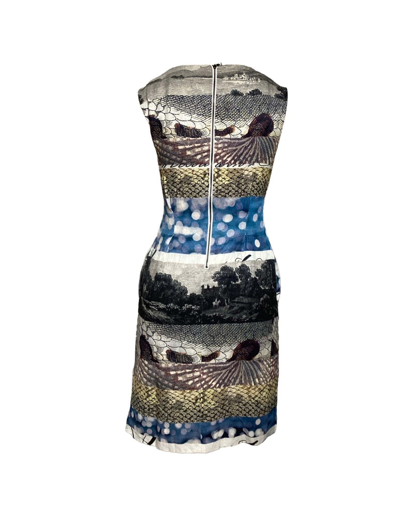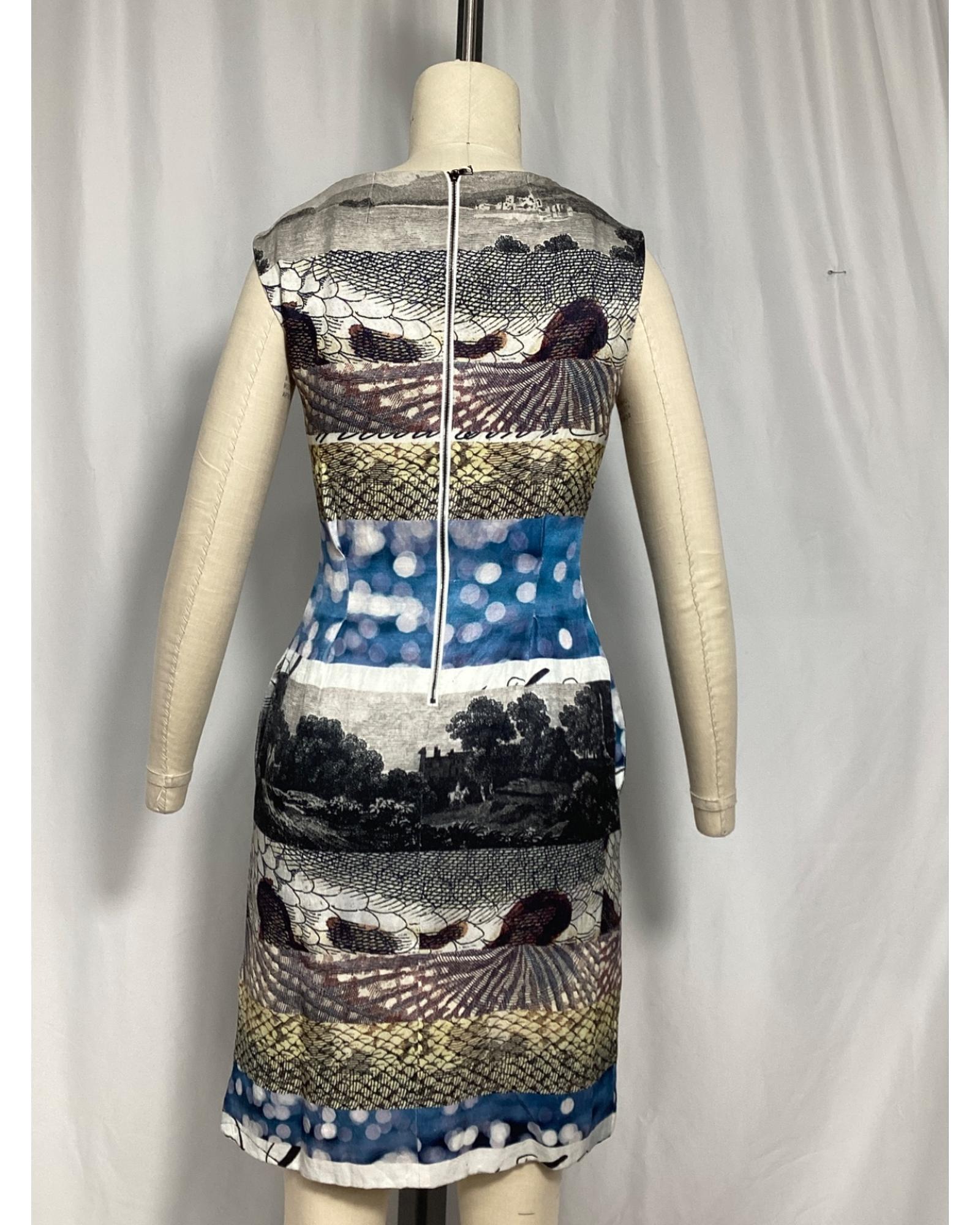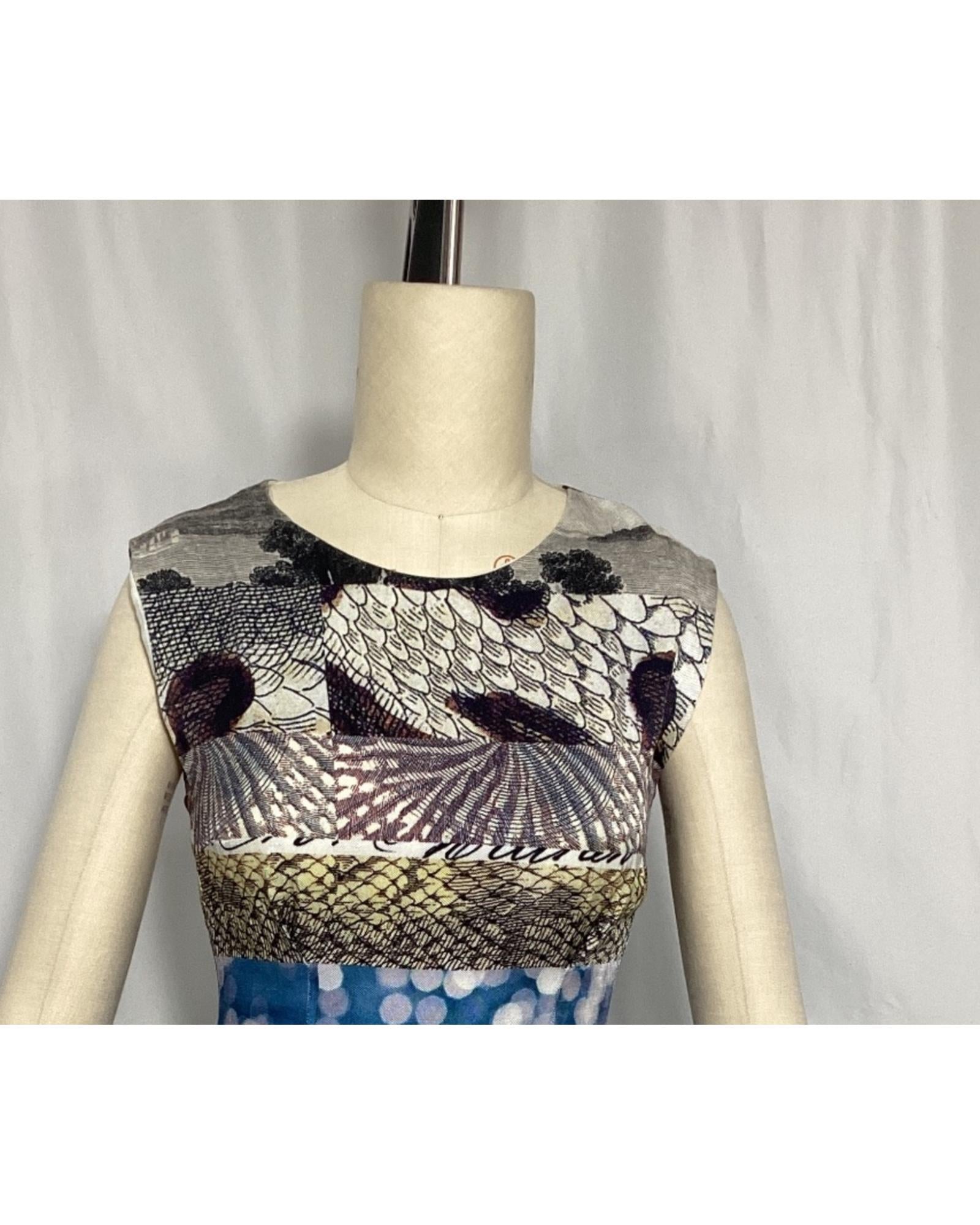 • Dries Van Noten Printed Graphic Dress in Multicolor Linen