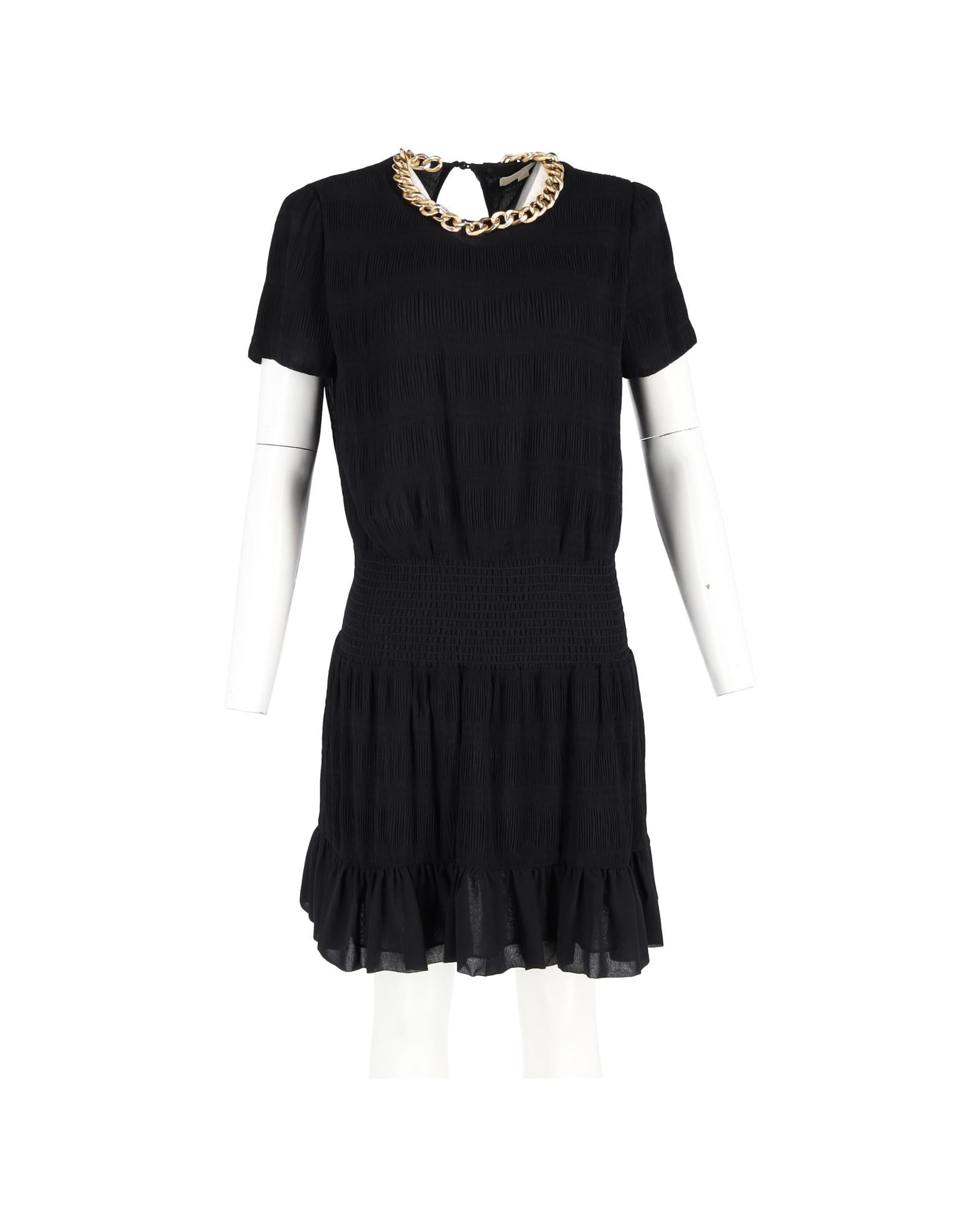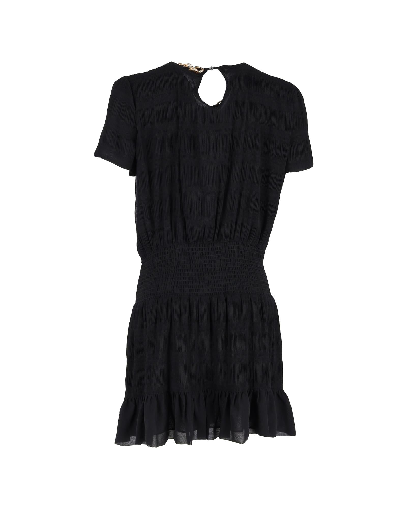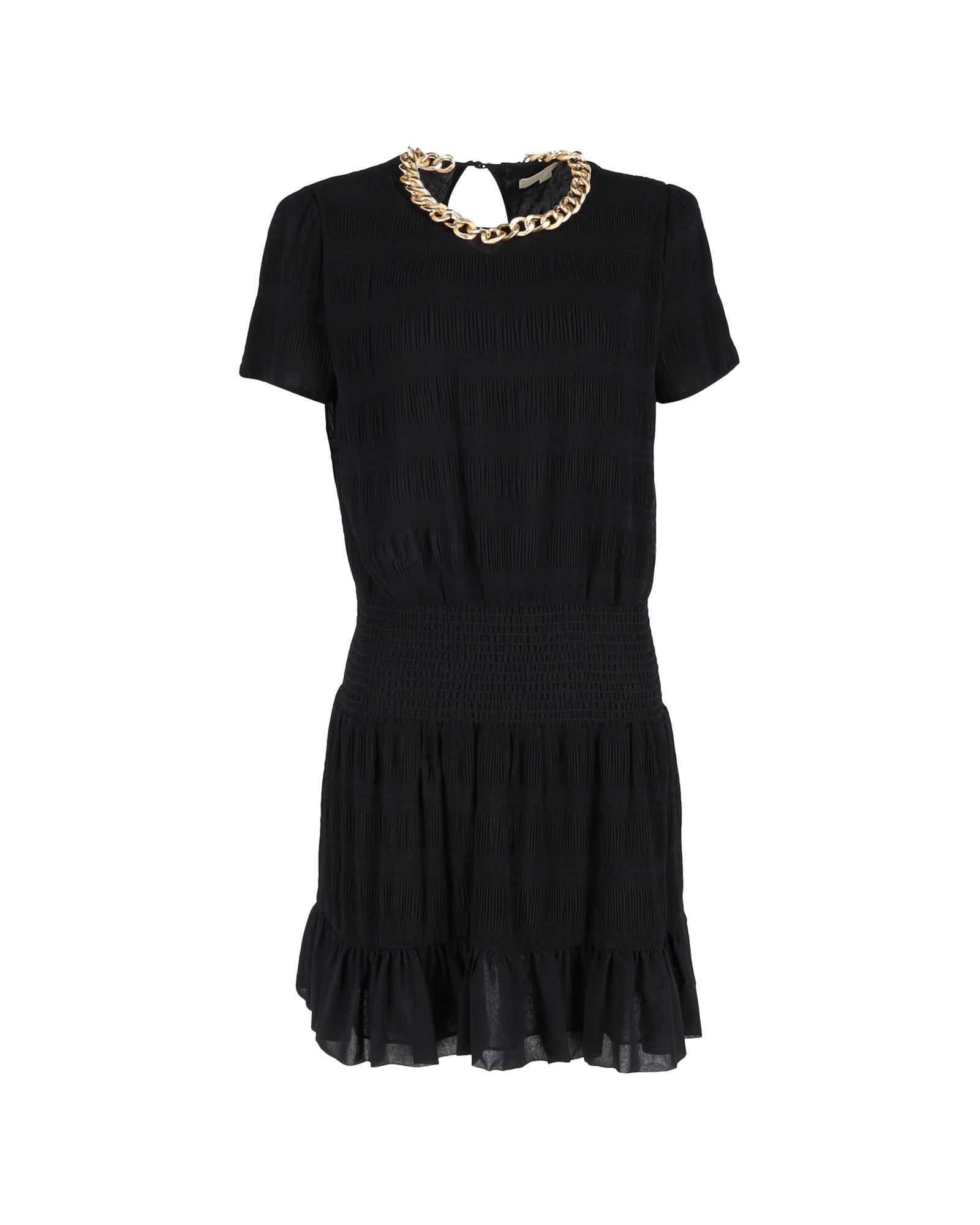 Pre-owned Textured Dress with Chain Detail and Short Sleeves