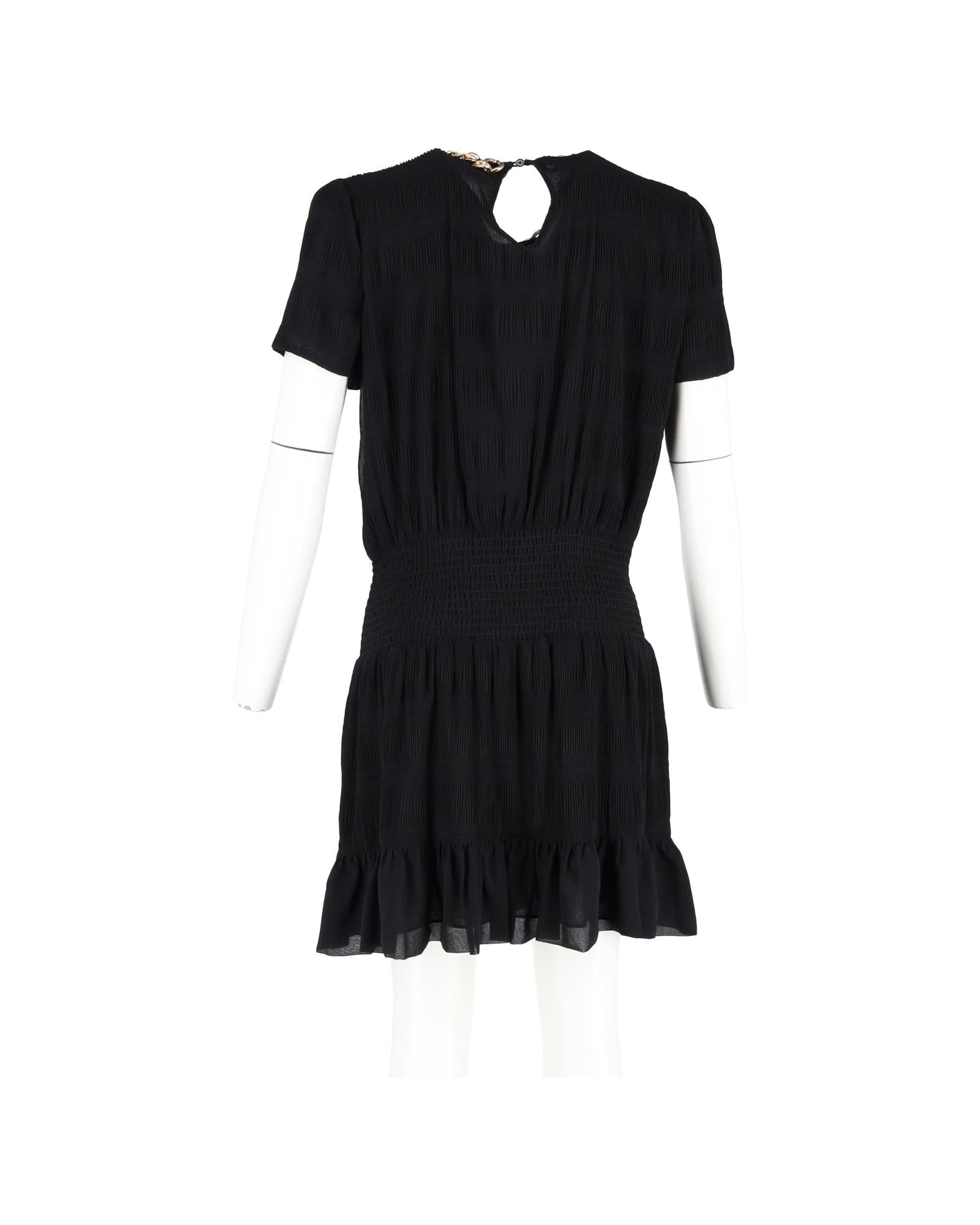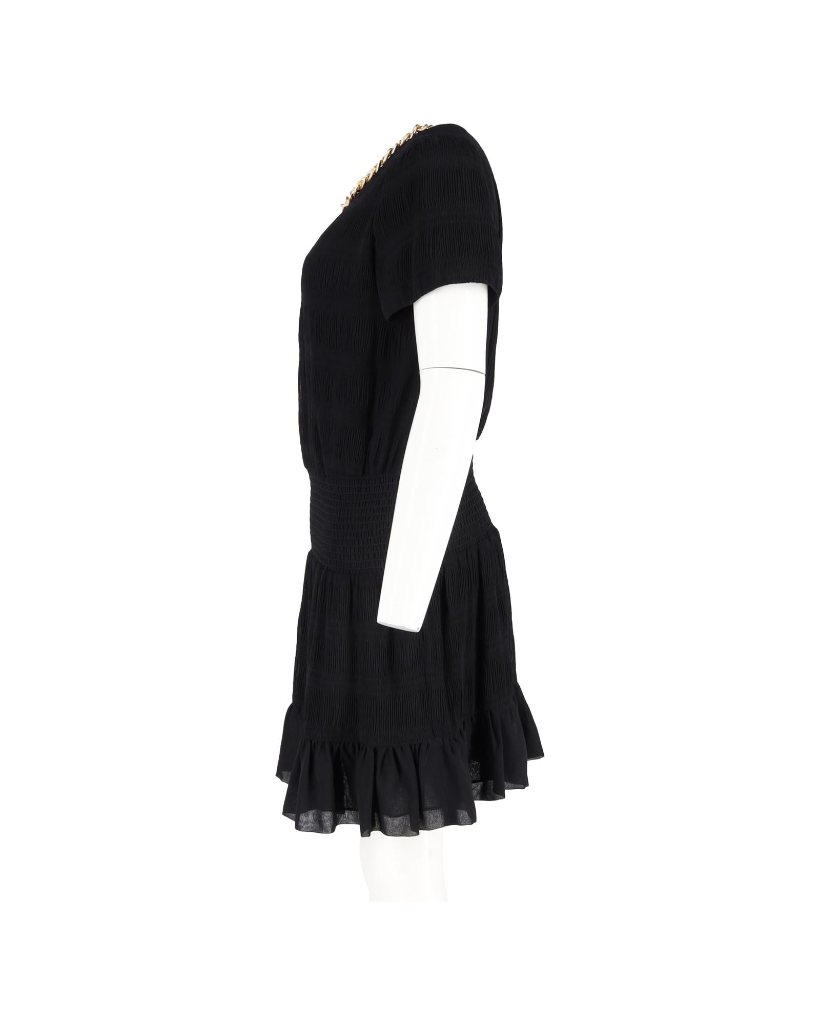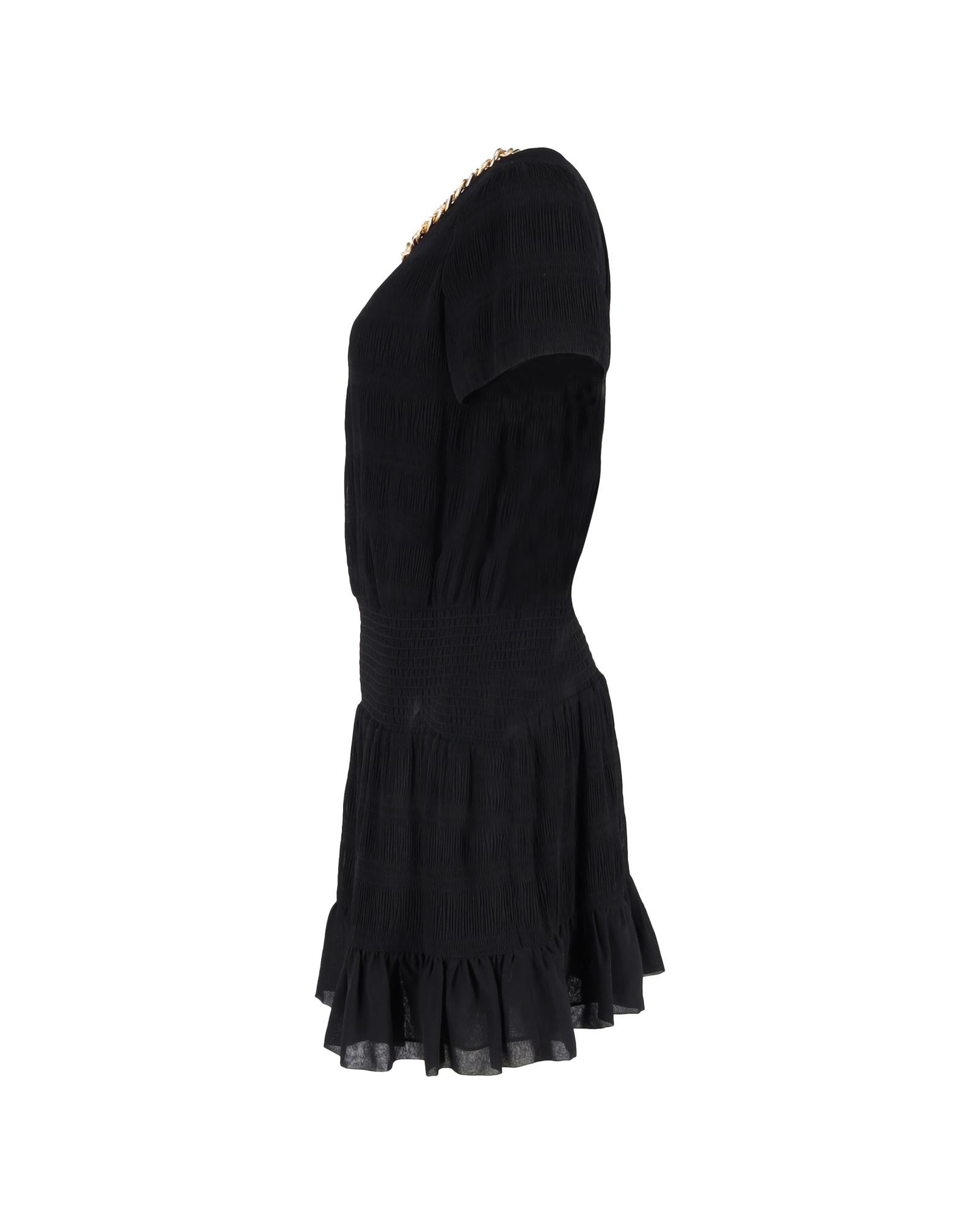 Pre-owned Textured Dress with Chain Detail and Short Sleeves