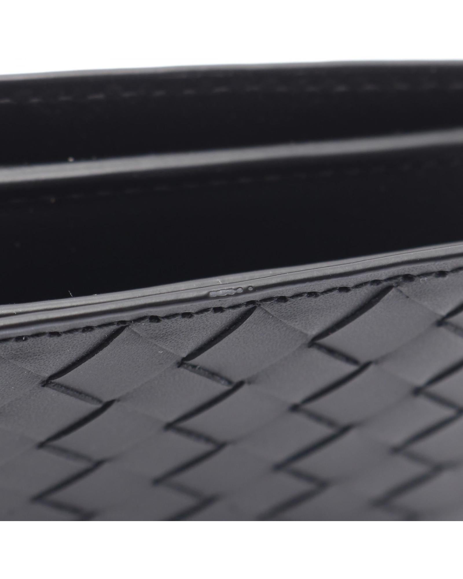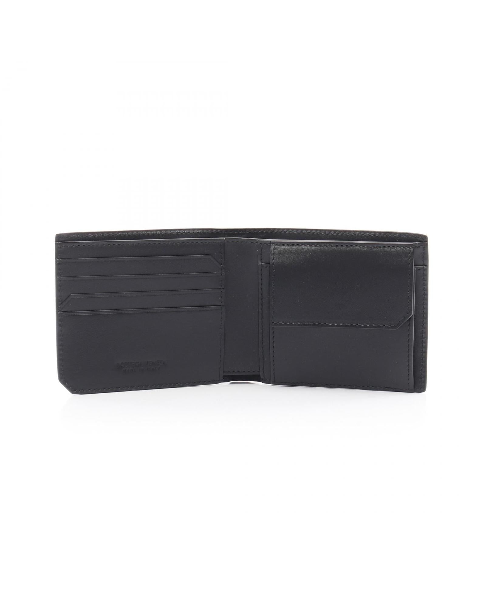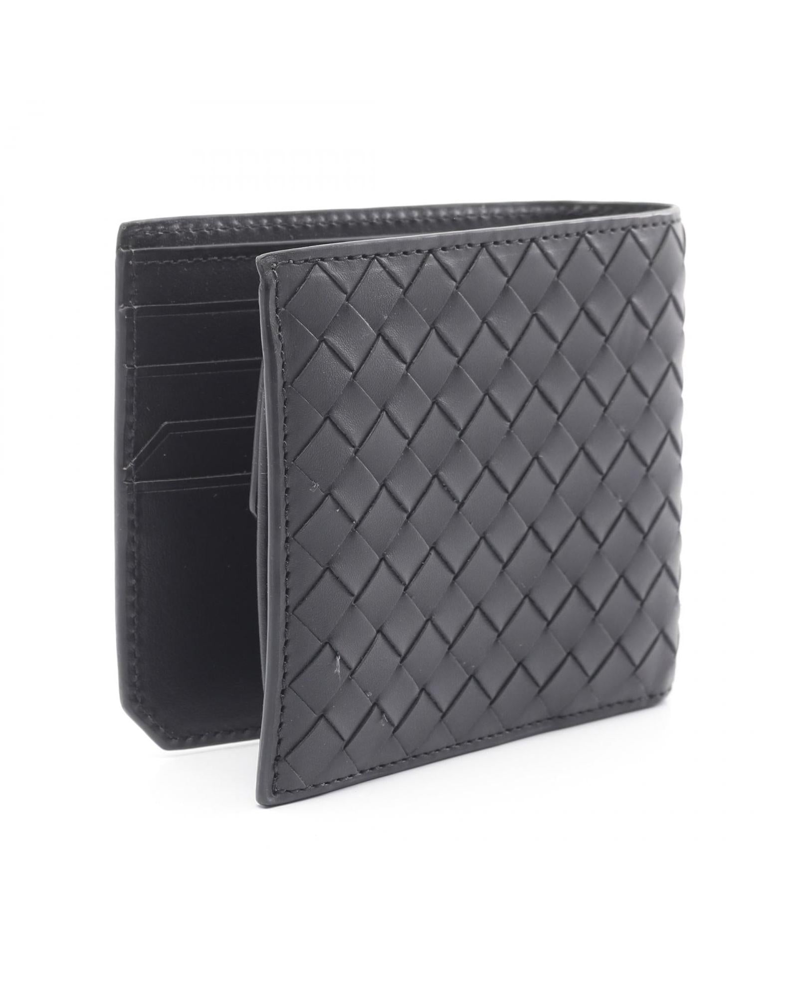 Pre-owned Leather Wallet with Woven Design and Multiple Interior Card Slots