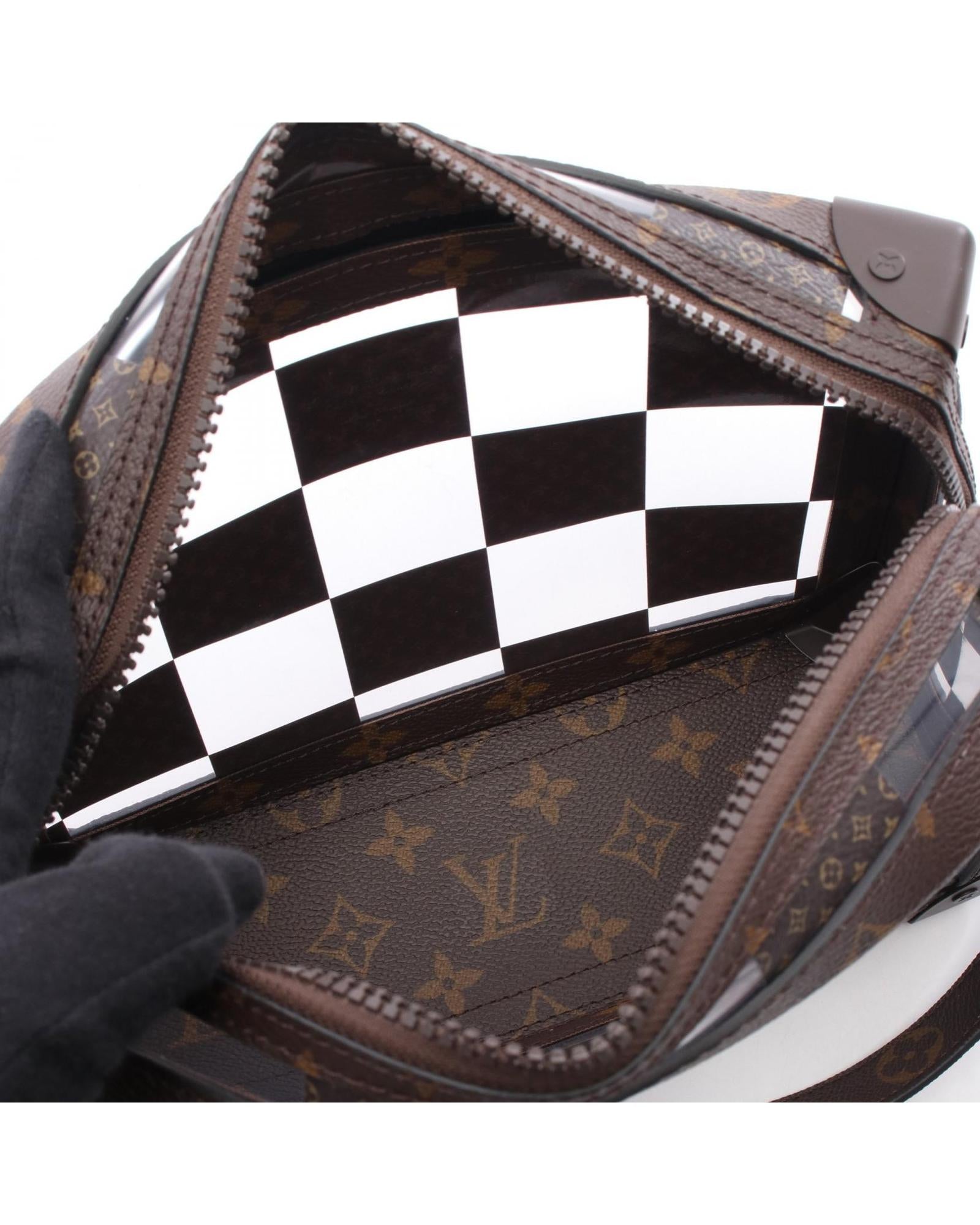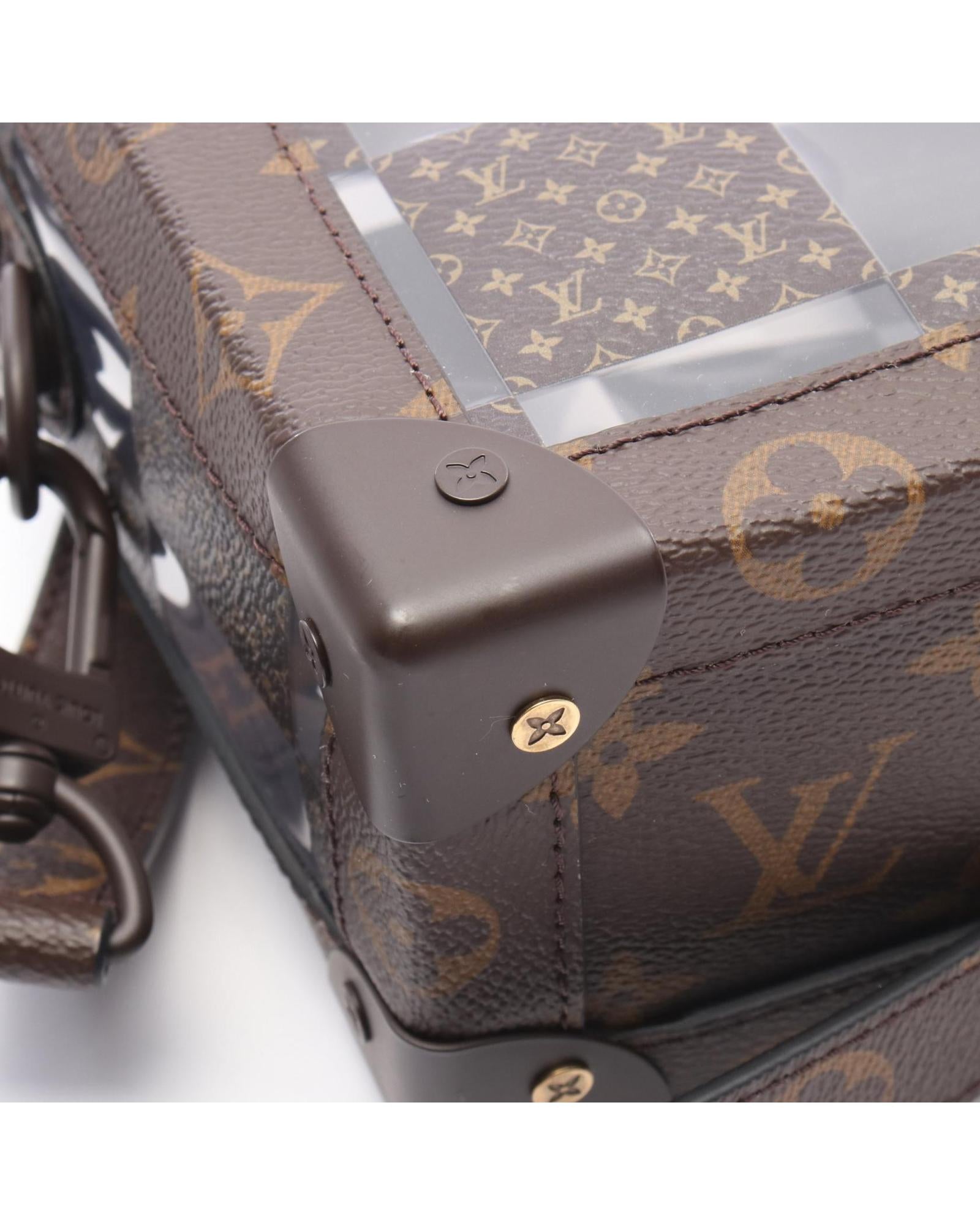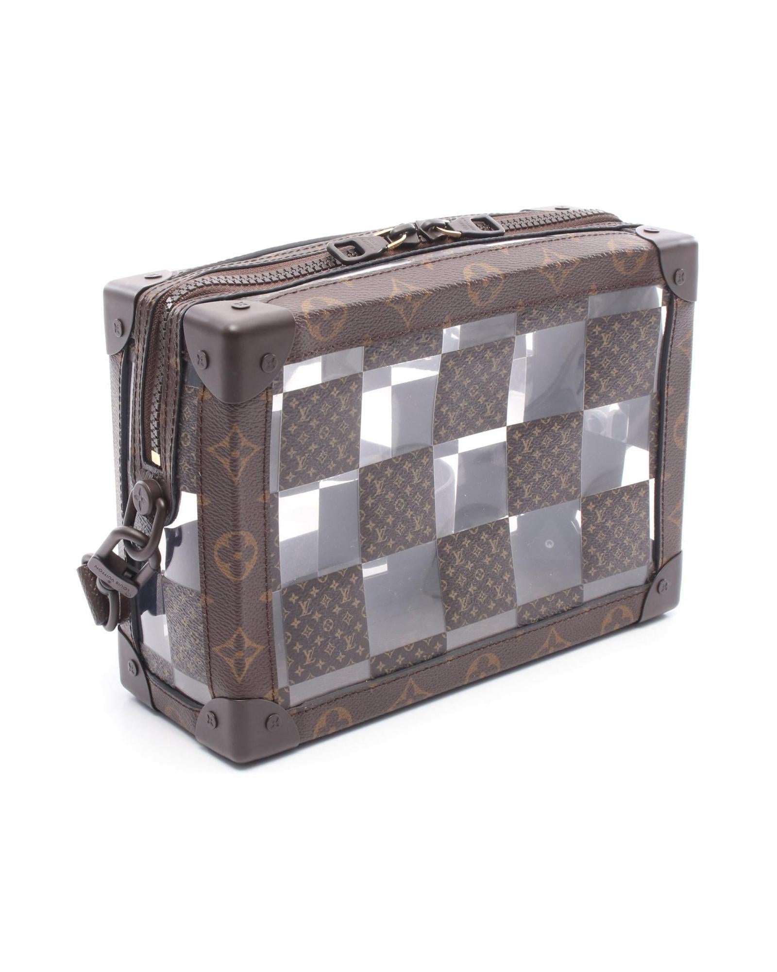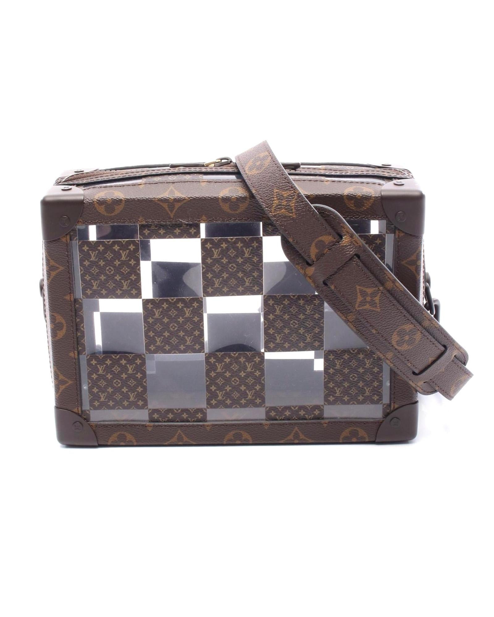 Pre-owned Compact Trunk Style Bag with Leather Trim and Adjustable Shoulder Strap